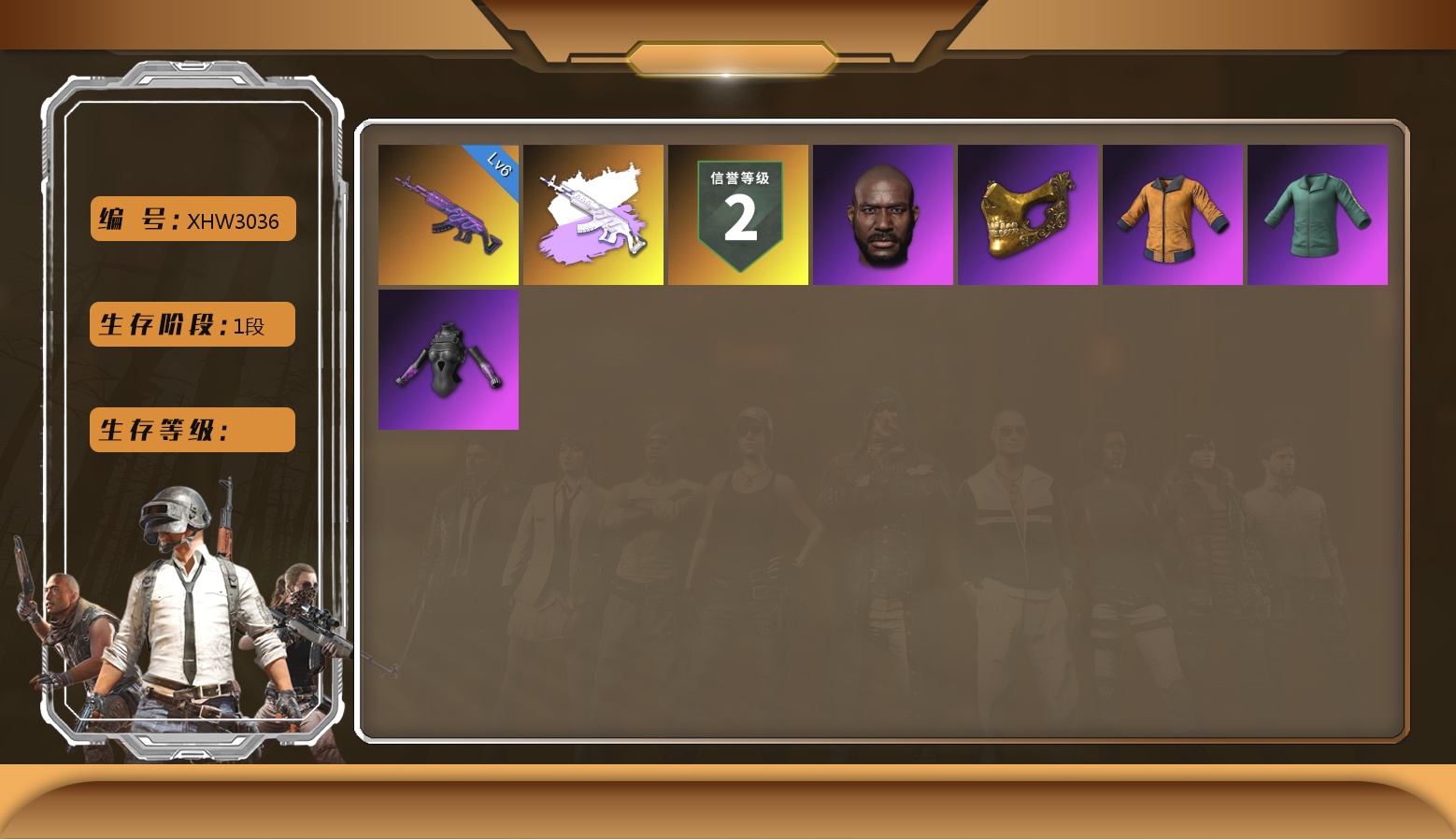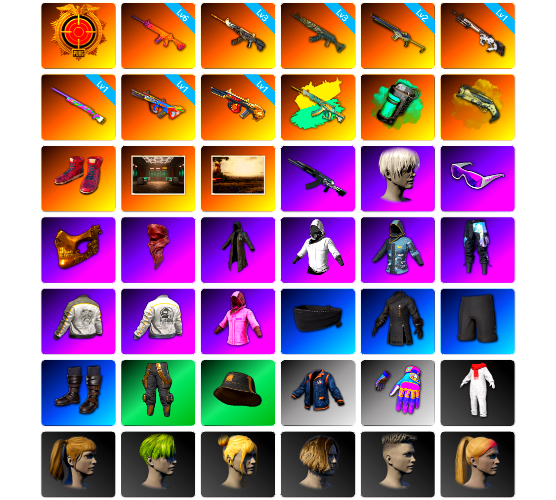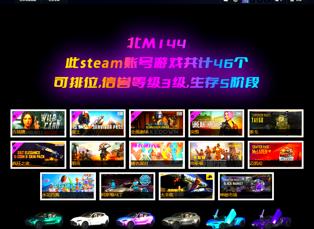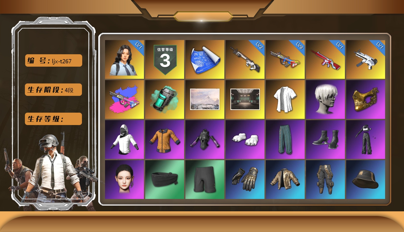 生存5阶段 2张图纸 10级爆裂AUG 2级彩虹M24 2级沙悟净MINI 1级赛博MK12 1级德拉贡 1级恶魔ACE 1级无信号M4 1级美杜莎762 1级刻耳柏洛斯M249 2级塞壬平底锅 品红色烟雾弹 黄色狂怒之雾-M79 兰博基尼跑车 兰博基尼SUV 兰博基尼奢华版 杜卡迪纯净黑 秘密陈列室 黑鬼 金面 发光手臂 白熊鞋 9s发型 拉风龙 车漆