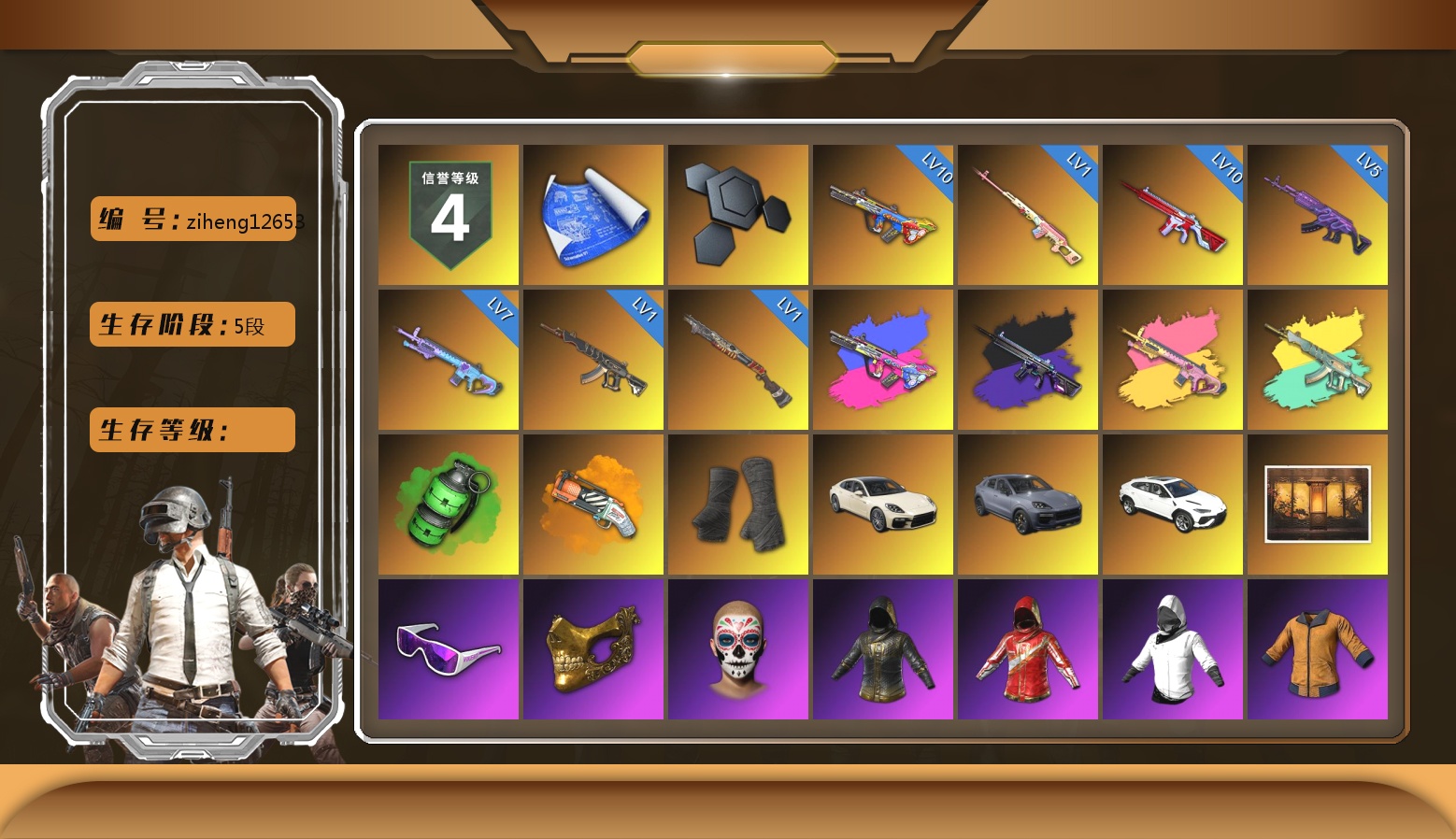 17张图纸 蜗牛币 5124聚合物 柏林面具 柏林裤 斗鱼 5级多利安 10级美杜莎762 10级孙悟空M24 10级霓虹AUG 10级无信号M4 10级弥诺陶洛斯AUG 10级妖魔之触ACE 10级玩偶炮 10级德拉贡 10级小兔MK12 6级寒蚀MP5K 6级圣诞AK 6级刻耳柏洛斯M249 6级沙悟净MINI 6级烈日灼烧-S1897 3级唐三藏平底锅 2级DBS 1级塞壬平底锅 美杜莎(异色) 霓虹AUG(异色) 弥诺陶洛斯AUG(异色) 无信号M4(异色) 孙悟空M24(异色) 德拉贡(异色) 小兔MK12(异色) 圣诞AK(异色) 沙悟净Mini(异色) 唐三藏(异色) 妖魔之触(异色) 寒蚀MP5K(异色) 紫色烟雾弹 青色烟雾弹 黄色烟雾弹 粉色烟雾弹 橙色狂怒之雾-M79 黄色狂怒之雾-M79 小白裙 柏林鞋 小黑盒 黑绷带 小丑女 小丑男 帕拉梅拉 保时捷911 保时捷卡宴 兰博基尼跑车 兰博基尼SUV 兰博基尼奢华版 马丁跑车 马丁敞篷跑车 马丁SUV 杜卡迪暮光粉 女团大厅 胜利密室 陈列室 兰博大厅 交易所接待室 武器神龛 黑鬼 MINJI 9s发型 滑雪镜 金面 渔夫帽 牛角 康萨斯 卡崔娜 丑男妆容 马东锡 红面巾 黑大衣 白战神 小战神 黄东 活动绿东 发光手臂 电磁背包 萨芬裤 白熊鞋 小叮当 粉战神 2024女团 阿狸 小黄鸭 尼尔 拉风龙 后街车库 车漆 小马尾 丸子头 西游记 脏辫 爱的主打歌 青海摇 小兔学院 街头霸王 悲喜 绷带AK PGC 2021套装 胜利之舞39 嘉米-加农钉 隆-升龙拳 哎呀!抱歉 枪炮洗礼 春丽凤翼扇