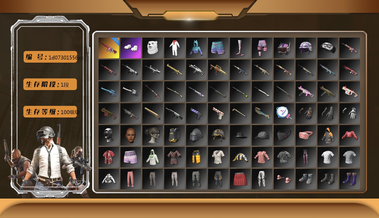 ID[262117][G7959]10级孙悟空M24 10级火麒麟 10级霓虹AUG 9级青龙762 9级彩虹M24 8级朱雀M4 6级玄武SKS 4级南瓜M4 4级圣诞mini 3级无信号M4 1级恶魔ACE 1级德拉贡 1级午夜惊魂98K 1级妖魔之触ACE 2级白虎锅 青龙762(异色) 霓虹AUG(异色) 南瓜M4(异色) 无信号M4(异色) 孙悟空M24(异色) 紫色烟雾弹 珊瑚色烟雾弹 青色烟雾弹 翡翠色烟雾弹 橙色狂怒之雾-M79 黄色狂怒之雾-M79 张图纸 聚合物 柏林鞋 黑绷带 小丑女 小丑男 兰博基尼跑车 兰博基尼SUV 马丁跑车 马丁敞篷跑车 马丁SUV 杜卡迪极速金 陈列室 交易所接待室 黑鬼 9s发型 滑雪镜 金面 渔夫帽 牛角 丑男妆容 马东锡 红面巾 电磁背包 萨芬裤 白熊鞋 阿狸 尼尔 拉风龙 车漆 小马尾 丸子头 西游记 脏辫 青海摇 小兔学院 悲喜 滑雪帽 枪炮洗礼