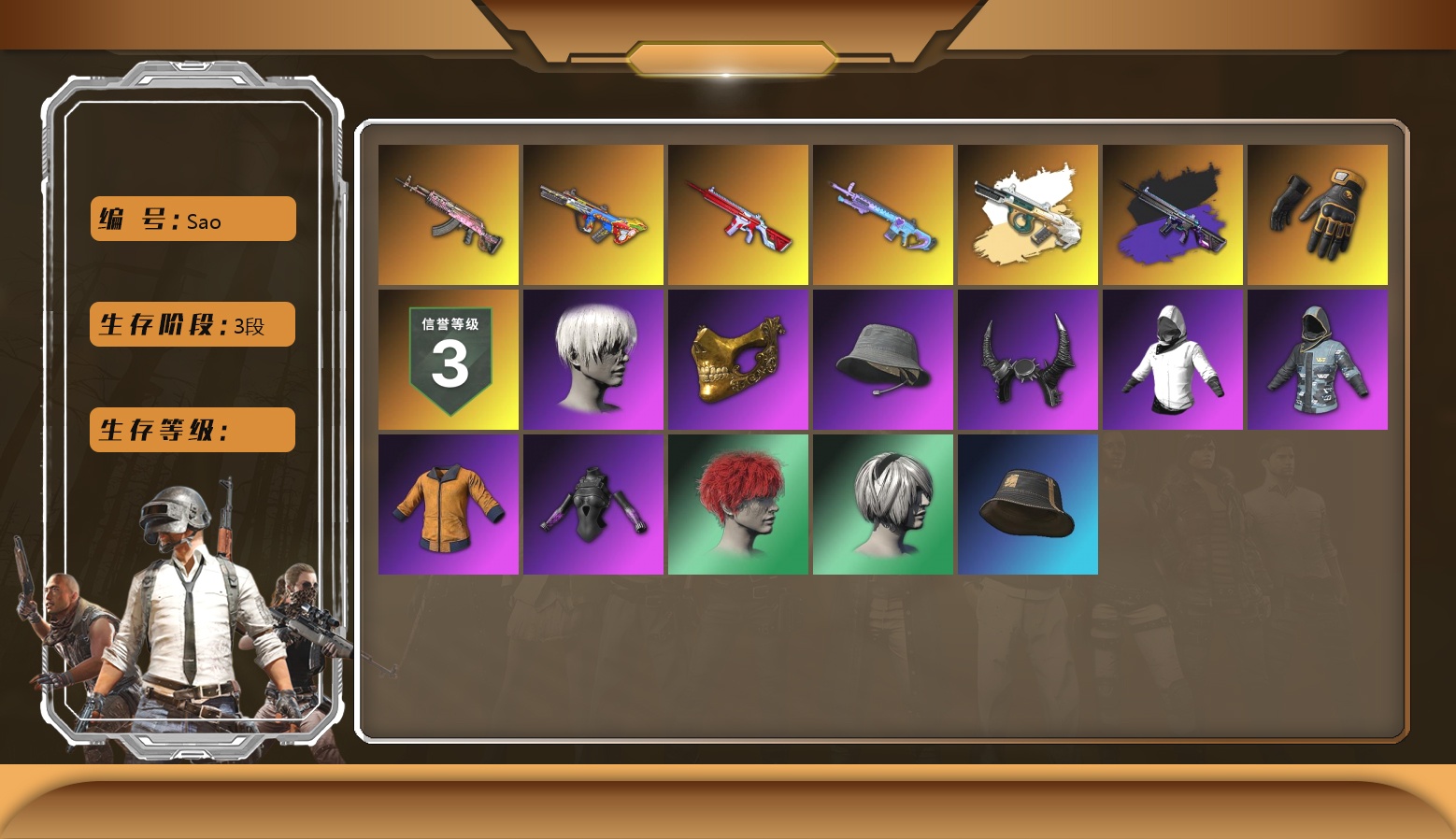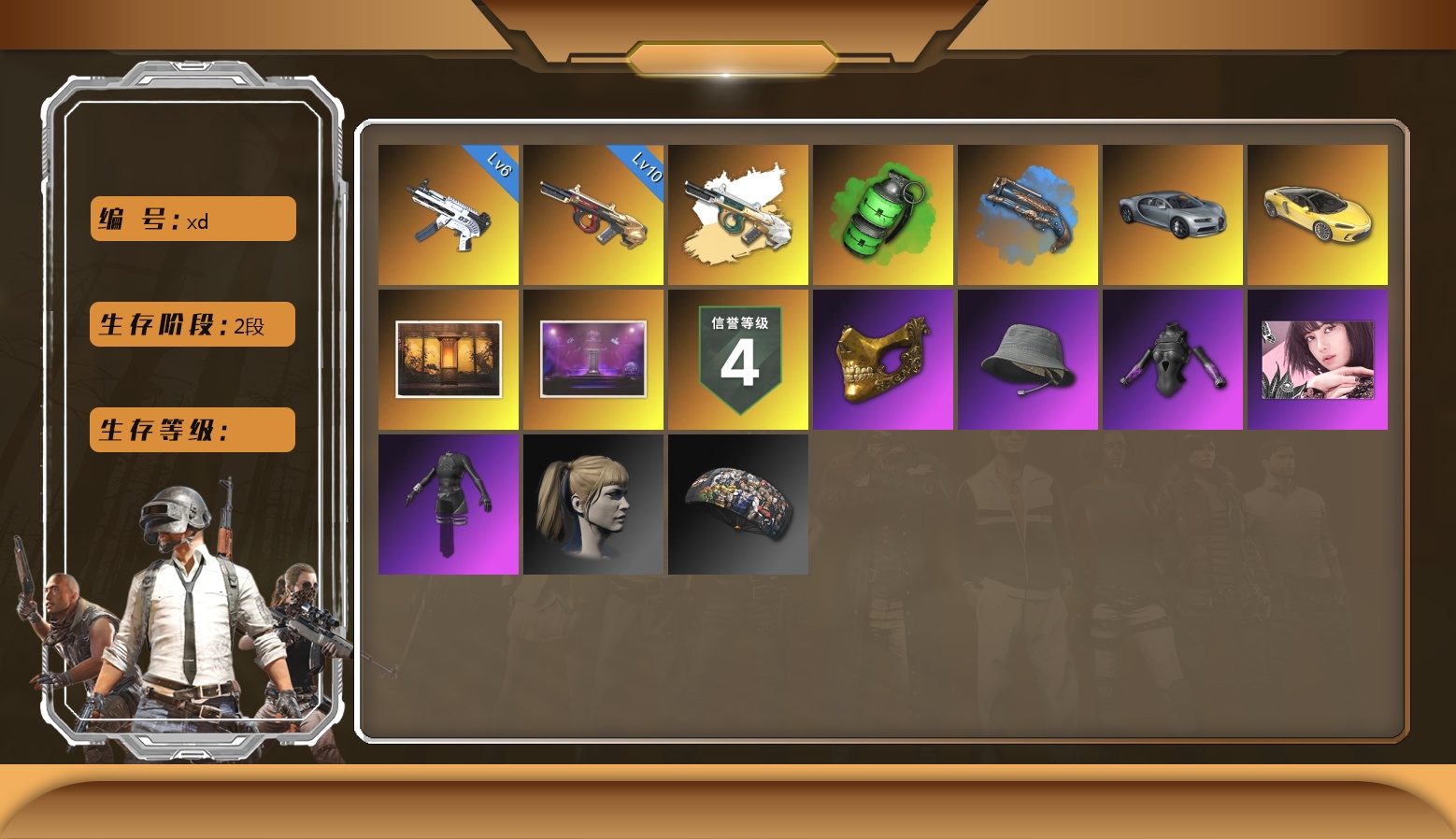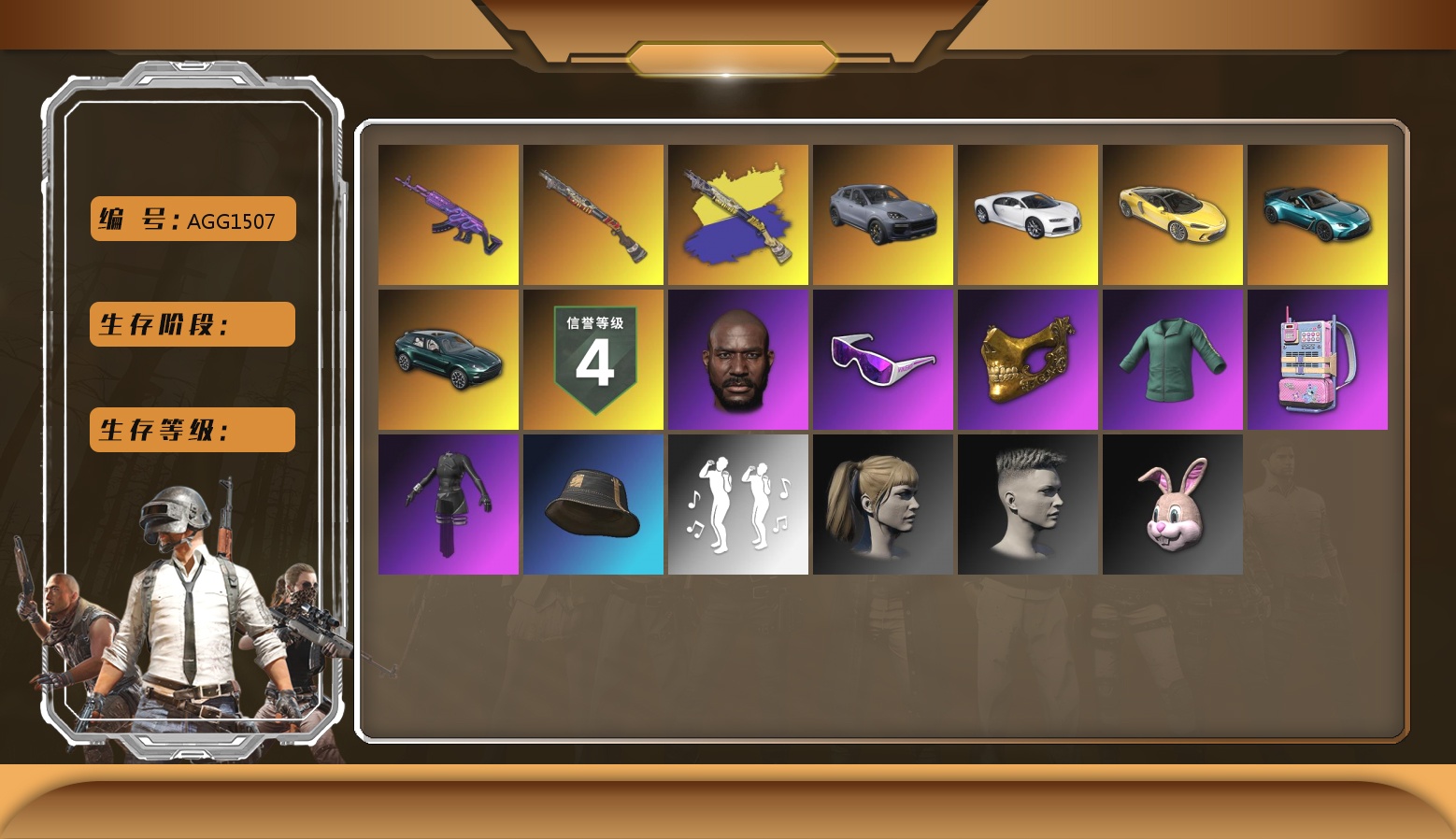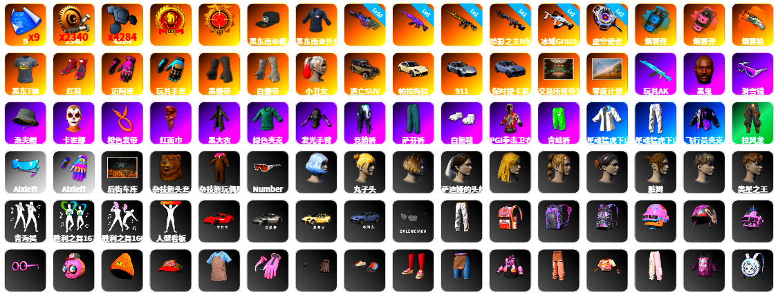 9级美杜莎762 6级妖魔之触ACE 1级玩偶炮 1级烈日灼烧-S1897 1级暗影之主Mk12 1级冰域Groza 美杜莎(异色) 蓝色魔法迷雾-M79 保时捷911 武器神龛 4张图纸 黑鬼 橙色发带 活动绿东 发光手臂 脏辫 青海摇 胜利之舞39