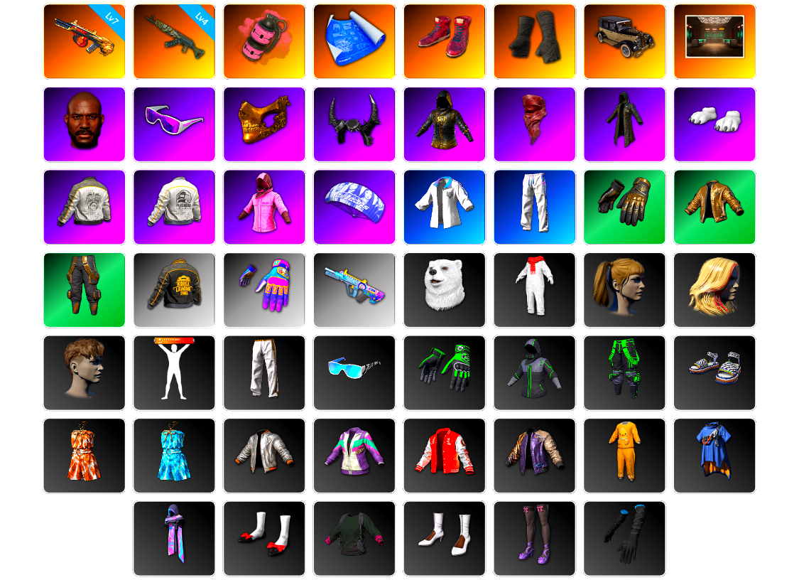ID[273002][PZ3837]7级弥诺陶洛斯AUG 4级青龙762 粉色烟雾弹 张图纸 柏林鞋 黑绷带 交易所接待室 黑鬼 滑雪镜 金面 牛角 红面巾 黑大衣 白熊鞋 粉战神 拉风龙 小马尾 小兔学院 悲喜 绷带AK 胜利之舞39 枪炮洗礼