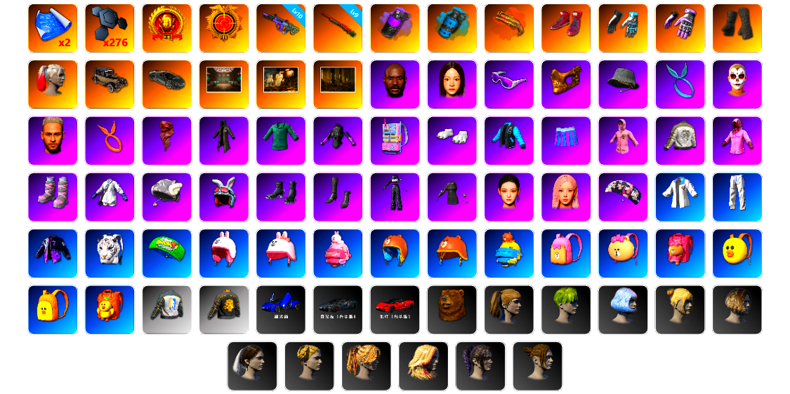 二阶段 小丑女小丑男8-4-2-1 8级糖果4级火麒麟2级AUG1级M24紫色烟雾弹金面发带尼尔套