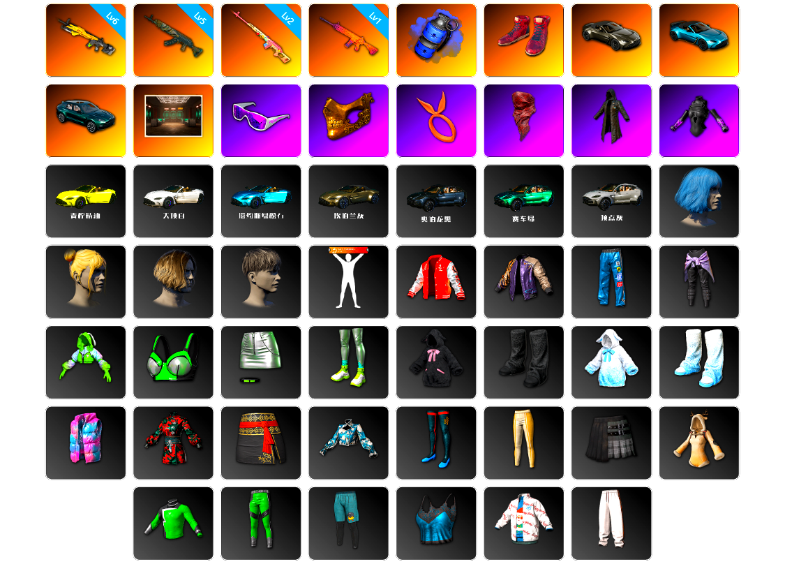 显卡套 金手指 K手套 玩具手套 10级霓虹AUG 10级南瓜M4 4级火麒麟 2级沙悟净MINI 2级白虎锅 1级齿轮炮 1级烈日灼烧-S1897 1级虚空使者 橘色烟雾弹 珊瑚色烟雾弹 翡翠色烟雾弹 2张图纸 14404聚合物 柏林鞋 黑绷带 白绷带 小丑女 小丑男 跑车 迈凯伦玛瑙黑版 马丁跑车 马丁敞篷跑车 马丁SUV 陈列室 交易所接待室 粉猪M4 甜饼762 黑鬼 滑雪镜 金面 渔夫帽 牛角 康萨斯 丑男妆容 橙色发带 红面巾 黑大衣 小战神 活动绿东 发光手臂 竞猜裤 萨芬裤 白熊鞋 橙运动 监狱服 渐变装 粉战神 女团 阿狸 拉风龙 车漆 小马尾 小绿头 丸子头 脏辫 青海摇 小兔学院 悲喜 绷带AK 滑雪帽 西游记