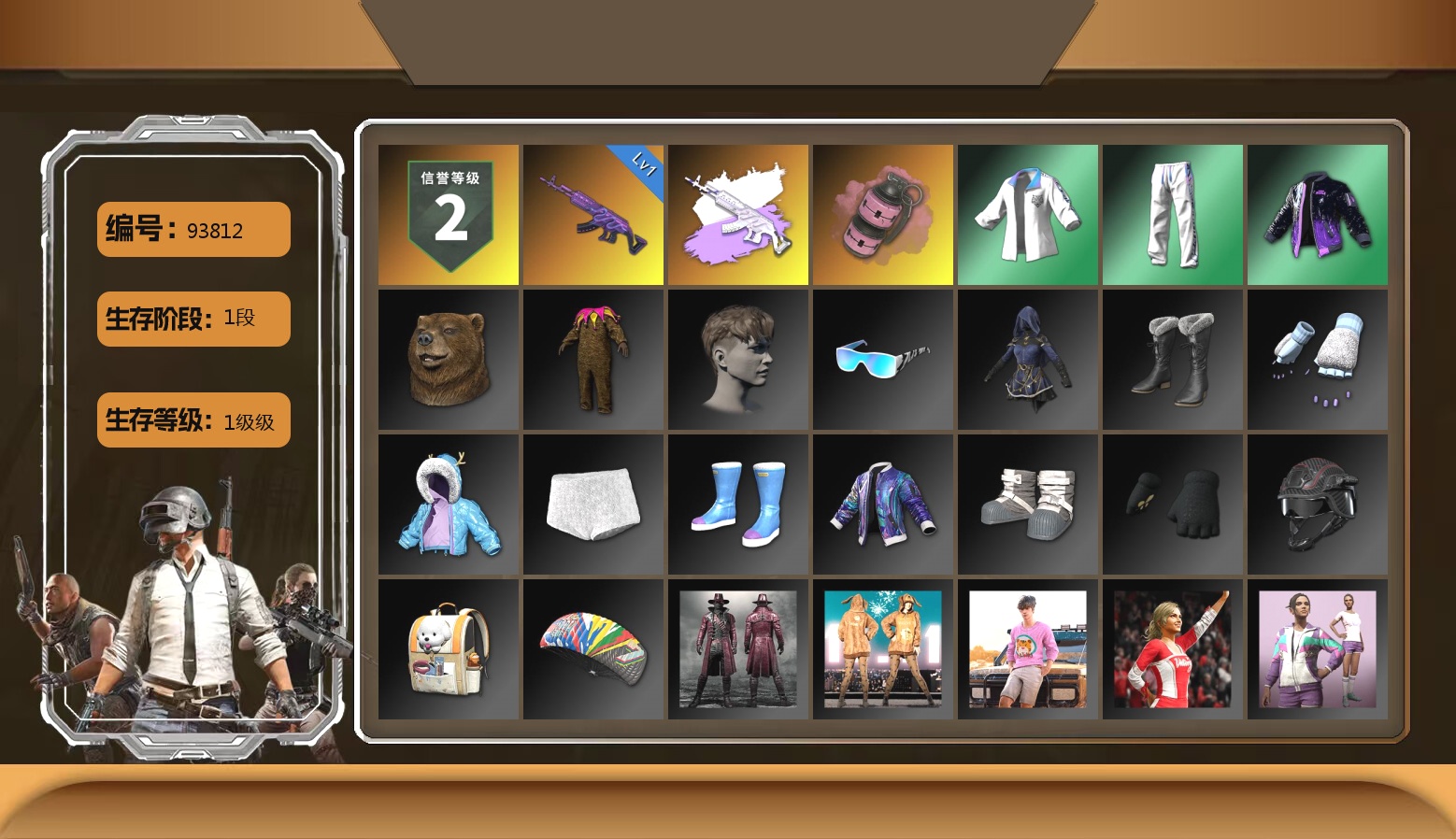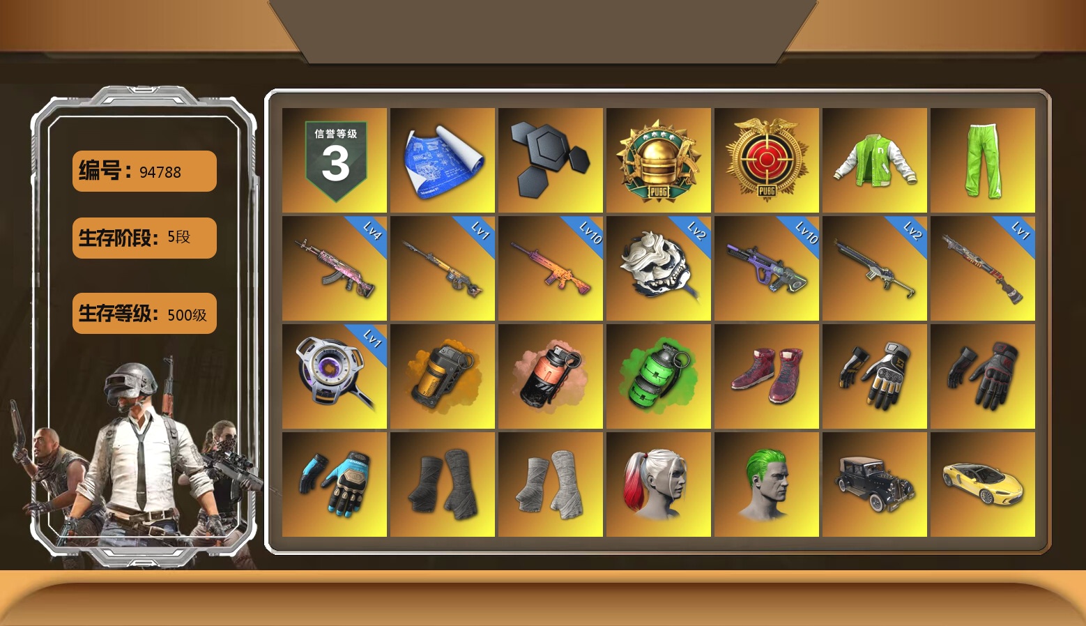 ID[249770][PZ2762]6级小兔MK12 5级青龙762 2级德拉贡 1级南瓜M4 蓝色烟雾弹 柏林鞋 马丁跑车 马丁敞篷跑车 马丁SUV 交易所接待室 滑雪镜 金面 橙色发带 红面巾 黑大衣 发光手臂 车漆 丸子头 小兔学院 悲喜 绷带AK 滑雪帽