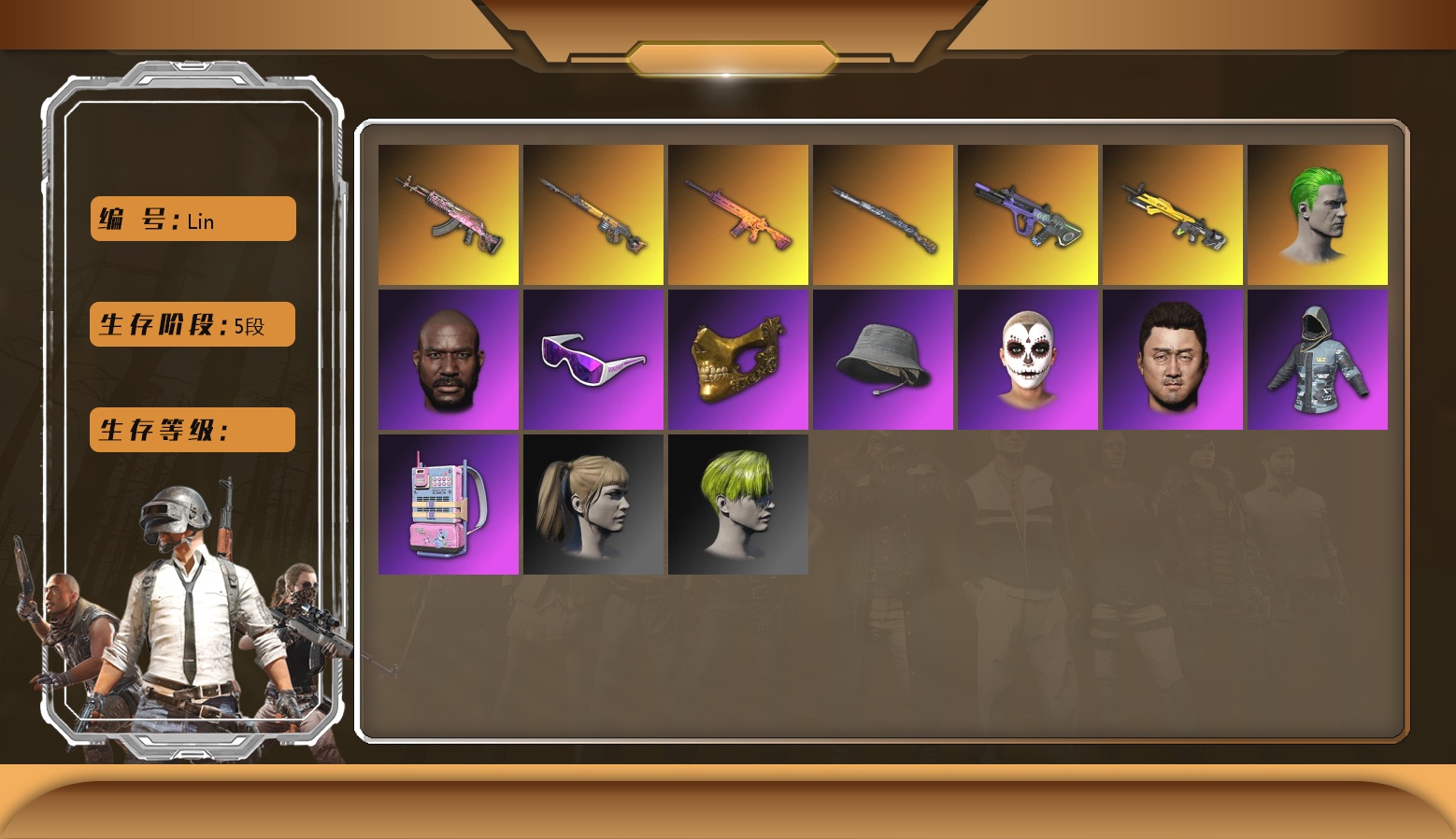 五阶段生存 10.10.8.5.2.1 绿头 金面 渔夫帽 内马尔 悲喜 烟雾弹 滑雪 小兔学院
