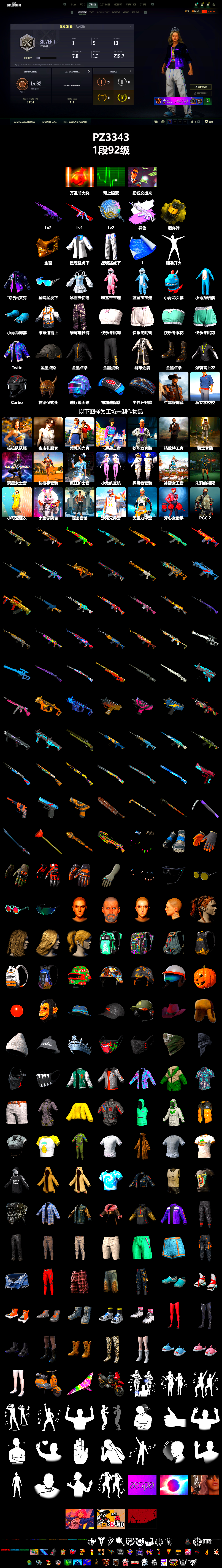 编号PZ3343皮肤:2级美杜莎762 1级无信号M4 2级塞壬平底锅 美杜莎(异色) 黄色烟雾弹 张图纸 金面 星魂猛虎下山运动夹克 星魂猛虎下山运动裤 飞行员夹克 星魂猛虎下山滑雪镜 冰雪天使连衣裙 粉鲨宝宝连身睡衣 蓝鲨宝宝连身睡衣 小青龙头套 小青龙玩偶服 小青龙脚套 维寒迪雪上运动夹克 维寒迪长裤 快乐冬眠蝴蝶结上衣 快乐冬眠蝴蝶结短裤 快乐冬眠花边上衣 快乐冬眠花边短裤 Twitch Rivals 复古飞行员夹克 金墨点染 金墨点染 金墨点染 群雄逐鹿 金墨点染 强袭者上衣 万圣节大奖 肾上腺素 把钱交出来 Carbon Fiber Commando - Helmet (Level 2) 林德仪式头盔(1级) 迪厅镜面球 - 头盔(3级) 布加迪降落伞 生性狂野降落伞 瞄准开火 私立学校校服套装 牛年服饰套装 3 拉拉队队服套装 夜店礼服套装 禁忌闪光套装 卡通袭击者套装 钞能力套装 精致特工套装 骑士套装 聚星女士套装 快枪手套装 疯狂护士套装 小兔航空航天局套装(粉) 探月者套装 冰雪女王套装 朱莉的褐湾套装 小可爱睡衣套装 小兔学院吉祥物套装 暖冬套装 沙滩兄弟套装 无重力中型套装 芳心女猎手套装 PGC 2024 套装 1 无慈悲 - M416 梅花同花 - Beryl M762 渗透与破坏 - AKM 灵魂枷锁 - AKM [战场痕迹] 孙悟空 - AKM 金色落叶 - AKM 银河卫士 - SCAR-L 圆点猎手 - M16A4 甜蜜外衣 - M16A4 不朽游行 - Mk47 Mutant 金色落叶 - Mk47 Mutant 水手 - G36C 钴蓝呼号 - G36C 镀金 - Groza 圆点猎手 - K2 无慈悲 - K2 [战场痕迹] 漫彩四溢 - SLR 水手 - SLR [战场痕迹] 猛虎猎手 - SLR 灾厄使徒 - SLR 银色芳华- SKS 礼品店 - SKS 银河武装 - SKS 金色落叶 - SKS 镀金 - SKS 甜蜜外衣 - Mini14 分形碎片 - VSS 海洋哑光(蓝色) - VSS 无慈悲 - Kar98k 镀金 - AWM 劫掠者 - M24 幽灵之握 - M24 双色 - MP5K 水手 - 汤姆逊冲锋枪 灵魂枷锁 - Vector 锁链帮 - Micro UZI 水手 - Micro UZI 钴蓝呼号 - Micro UZI 加纳多印花 - M249 灾厄使徒 - DBS 双色 - DBS 都市猎手 - 锯短型霰弹枪 圆点猎手 - S12K 锁链帮 - S12K 波涛荡漾 - S12K 无尽迷宫 - S12K 钴蓝呼号 - S1897 水手 - S1897 灵长类 - S1897 礼品店 - S686 双色 - S686 波涛荡漾 - S686 恶战 - P92 水手 - R1895 钴蓝呼号 - P18C 水手 - P18C 链锯 PUBG信条钢管 陶土质感撬棍 双色镰刀 暗黑断罪之剑 马桶塞 甜蜜外衣 - 十字弩 沙滩宝贝美甲配手环 小兔学院水手服手套 工人手套(黑色) 队长的迷彩手套 准备就绪手套 维寒迪雪上运动手套 林影潜行戒指 牛仔响尾蛇美甲 沙滩宝贝智能眼镜 老式太阳镜 快乐冬眠墨镜 PNC 2024 生存者护目镜 夏日之星妆容 男性面容16 林影潜行妆容 牛仔响尾蛇纹身 发型31 发型45 发型78 发型72 海泡背包(3级) 恐龙地带背包(3级) 牛仔侠客背包(2级) 勇往直前背包(1级) 维寒迪雪上运动背包(1级) 破碎硬壳背包(1级) 复古花头盔(3级) 生性狂野 - 头盔(2级) PUBG信条 - 头盔(2级) 维寒迪雪上运动 - 头盔(1级) 南瓜头 驯鹿的红鼻子 黑猩猩头套 夏日渔夫帽(蓝绿色) 准备就绪鸭舌帽 队长的迷彩鸭舌帽 随性牛仔帽子 林影潜行帽子 怪笑针织帽 露鳍鲨鱼渔夫帽 冰雪天使王冠 恶魔的微笑口罩 准备就绪口罩 队长的迷彩面巾 沙暴伪装丝巾 Carbon Fiber Commando Face Mask 蟒蛇花园夹克 准备就绪夹克 破裂棱镜夹克 圣诞毛皮大衣 花衬衫(蓝绿色) 夏日短裤(灰色) 朱莉的褐湾制服 小小鸡仔外套 PNC 2022 连战连捷夹克 海泡无袖连帽卫衣 生存练习生连帽卫衣 PUBG信条马甲 沙滩宝贝操作员上衣 小小鸡仔T恤 彩色标记连身衣 T 恤 (白色) 棕熊猎人外套 T 恤 (灰色) 恐龙乐园 LOGO T恤 快乐冬眠连帽卫衣(米色) 快乐冬眠连帽卫衣(流沙色) 扎染T恤 金色守护者皮夹克 随性牛仔上衣与短裤 林影潜行上衣 牛仔响尾蛇上衣 随性牛仔夹克 林影潜行外套 牛仔响尾蛇夹克 PGC 2025 Windbreaker PNC 2025 夹克 准备就绪长裤 皮革长裤(黑色) 战斗裤 (棕色) 战斗裤 (卡其色) 高尔夫短裤 (白色) 海泡短裤 小小鸡仔短裤 小兔快递配送员长裤 沙滩宝贝短裤 深红女郎的长裤 林影潜行短裤 牛仔响尾蛇短裤 金色守护者战斗长裤 沙滩鞋(蓝绿色) 圣诞风丝带运动鞋 维寒迪雪上运动短靴 准备就绪运动鞋 高帮运动鞋 沙滩宝贝凉鞋 海泡运动鞋 红桃皇后丝袜配高跟鞋 劫掠者长靴 PGC 2022 斑斓危机便鞋 随性牛仔短靴 林影潜行短靴 牛仔响尾蛇长靴 冰雪天使长靴 蓝鲨宝宝睡拖 粉鲨宝宝睡拖 快乐冬眠皮鞋 “小兔快递配送员” 小型摩托车 “飞得更高” 动力滑翔机 “生性狂野”摩托车 Dark Arts(第1部分) 胜利之舞61 胜利之舞142 Victory Dance - 8th Anniversary 胜利之舞100 #1 特殊问候 嫉妒 棒棒哒 投降 不耐烦 谢谢 停止! 抖缩 庆祝 同意 你好 大厅姿势1 你完蛋了 耸肩 胜利之舞165 银河热潮 双枪 都市牛仔 滑板巡查员 猩红天幕 生存等级:1段
