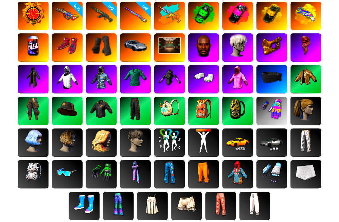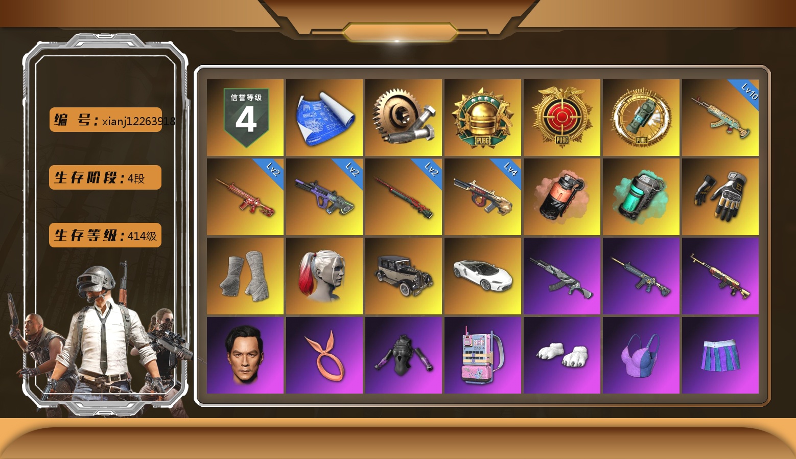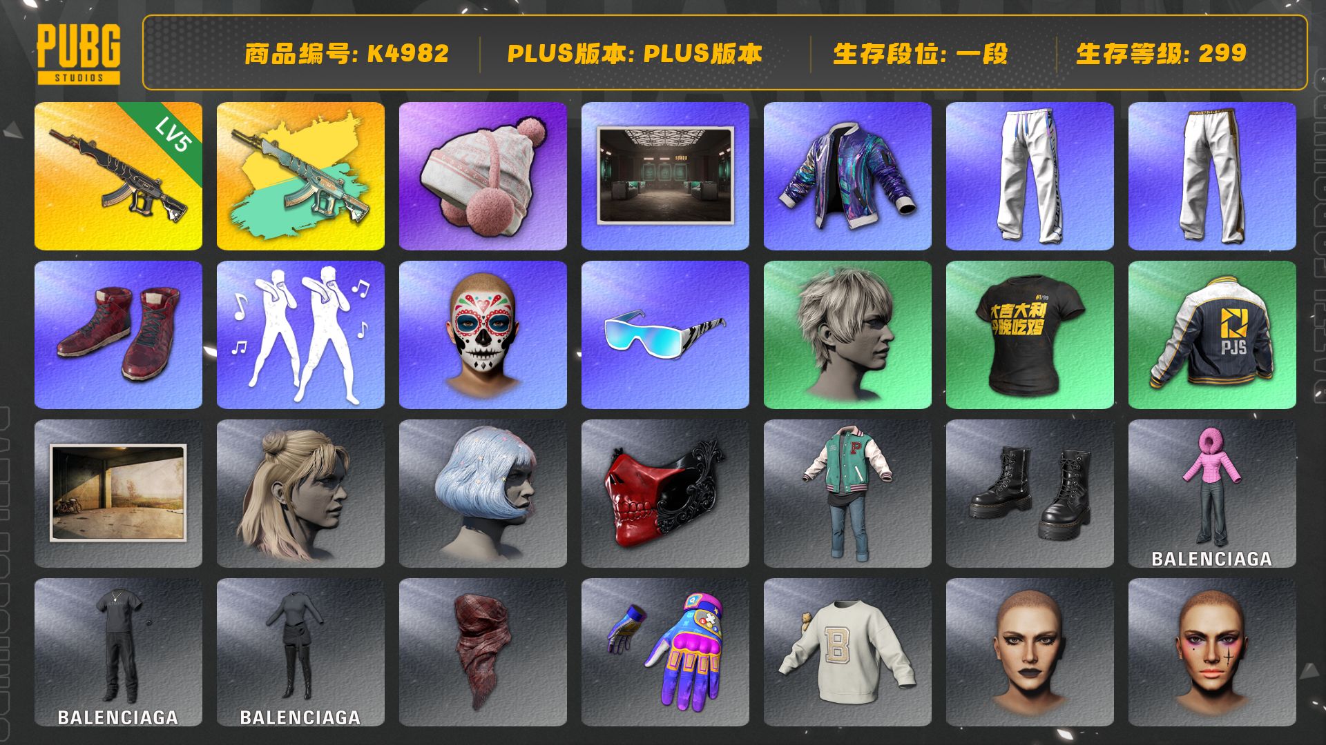 金手指 10级水麒麟 4级弥诺陶洛斯AUG 2级霓虹AUG 2级朱雀M4 2级孙悟空M24 珊瑚色烟雾弹 青色烟雾弹 2张图纸 蜗牛币 白绷带 小丑女 迈凯伦硅质白版 橙色发带 发光手臂 电磁背包 白熊鞋 小马尾 西游记 脏辫 小兔学院 悲喜 绷带AK