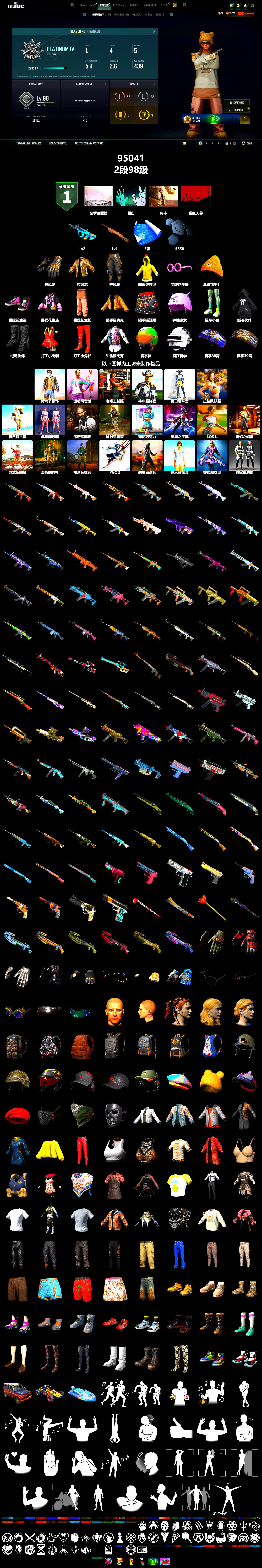 ❤找回包赔❤编号95041皮肤:信誉等级一 2级GD-AUG 1级夜曲M24 5张图纸 5550聚合物 冬季藏匿处 拉风龙 非鸡连帽卫衣 暴躁花生墨镜 暴躁花生针织帽 暴躁花生运动鞋 暴躁花生连帽卫衣 暴躁花生长裤 猎手猫夹克 猎手猫短裙 钟楼魔女 星际小兔 绒毛伙伴 绒毛伙伴 打工小兔制服 打工小兔长靴 小兔学院 回归 寰宇侠 - 头盔(1级) 疯狂科学 - 头盔(3级) 赛季39竞技降落伞 赛季38竞技降落伞 烤鸡节服饰套装 3 运动风套装 咖啡王制服套装 牛年服饰套装 1 夏日趣味套装 拉拉队队服套装 夏日复古套装 年末问候套装 吊带裤配蝴蝶结套装 神射手套装 薄荷巧克力套装 类星之王套装 LOS LEONES 客场队服套装 蟒蛇之帽套装 恐龙乐园员工套装 邓肯的衬衫套装 褐湾狂徒套装 PGC 2019套装 恶贯满盈套装 迷人鲜花套装 钟楼魔女贝拉套装 管家布利格斯套装 地狱火 - M416 雪国风光 - M416 彩糖蛋糕 - M416 梅花同花 - Beryl M762 花呢控 - Beryl M762 山花烂漫 - Beryl M762 [战场痕迹] 危险玩偶屋 - Beryl M762 灵魂枷锁 - AKM 竞速之道 - AKM 大理石宝藏 - AKM 奥丁的先锋 - AKM 标准猎手 - AKM 彩糖蛋糕 - AUG 多彩科技猫 - AUG 钟楼魔女贝拉 - ACE32 大理石宝藏 - ACE32 疯狂收割者 - SCAR-L 蔚蓝挑战者 - SCAR-L 粗糙 (橙色) - SCAR-L 游猎之旅 - M16A4 华夫饼 - M16A4 绿地迷彩 - QBZ 灵魂枷锁 - Mk47 Mutant 灰色系 - Mk47 Mutant 无尽迷宫 - Mk47 Mutant 金色落叶 - Mk47 Mutant 钴蓝呼号 - G36C 标准猎手 - G36C 水手 - G36C 山花烂漫 - Groza 标准猎手 - Groza 镀金 - Groza 无拘来世 - K2 钴蓝呼号 - SLR 水手 - SLR 金色落叶 - SKS [战场痕迹] 剧变熔岩 - SKS 幸运骑士 - SKS 数码丛林迷彩 - SKS 镀金电纹 - Mini14 数码沙漠迷彩 - Mini14 红桃同花 - Mk12 斑点狗 - VSS 标准猎手 - VSS 致命快递 - 德拉贡诺夫 余音环绕 - 十字弩 余音环绕 - UMP 数码沙漠迷彩 - Win94 镀金 - Win94 鲜花之力 - AWM 珍珠王朝 - AWM 疯狂收割者 - M24 劫掠者 - M24 幸运骑士 - M24 马桶人 - MP5K 灰色系 - MP5K 赛季39竞技黄金 - FAMAS 赛季38竞技黄金 - P90 竞速之道 - P90 镀金 - UMP 熔岩灯 - JS9 标准猎手 - UMP 镀银 - UMP 水手 - 汤姆逊冲锋枪 雪国风光 - 汤姆逊冲锋枪 拼图 - 汤姆逊冲锋枪 镀银 - 汤姆逊冲锋枪 心跳掠夺者 - MP9 海狼鱼 - Vector 淡雅之力 - Micro UZI 三重彩 - Micro UZI 花呢控 - M249 加纳多印花 - M249 回收再利用 - DP-28 无拘来世 - DP-28 双色 - DBS 都市猎手 - 锯短型霰弹枪 丛林潜行者 - 锯短型霰弹枪 标准猎手 - 锯短型霰弹枪 数码沙漠迷彩 - 锯短型霰弹枪 锁链帮 - S12K 游猎之旅 - S12K 无尽迷宫 - S12K 波涛荡漾 - S12K 标准猎手 - S12K 淡雅之力 - S1897 水手 - S1897 抽象派 - S1897 波涛荡漾 - S686 华夫饼 - S686 双色 - S686 恶战 - P92 标准猎手 - P92 三重彩 - P92 沙漠烈阳 - 沙漠之鹰 淡雅之力 - R1895 华夫饼 - R1895 水手 - R1895 数码沙漠迷彩 - R45 愉悦的绿松色 - P1911 指绘撬棍 陶土质感大砍刀 马桶塞 不朽游行 - 铁拳火箭筒 回收再利用 - 十字弩 甜蜜外衣 - 十字弩 都市猎手 - 十字弩 恶战 - 十字弩 标准猎手 - 十字弩 紫色雨滴 - 十字弩 队长的迷彩手套 准备就绪手套 骷髅脸特技手套 诅咒狼人橡胶手套 沙暴哨兵手套 牛仔响尾蛇美甲 暖暖熊仔手套 网格手套 女明星眼镜(黑色) 雪片墨镜 沙漠骗徒护目镜 PGC 2019 眼镜 PNC 2024 生存者护目镜 男性面容9 牛仔响尾蛇纹身 发型31 发型90 迷彩军事背包(3级) 火山灰烬背包(2级) 皮革背包(2级) 陈旧皮革背包(2级) 末日烙印背包(2级) 战术奢华背包(2级) 马戏棚背包(1级) 军用防弹头盔(2级) 零度机能风车手 - 头盔(2级) 暗黑烈焰 - 头盔(1级) PNC 2022 连战连捷鸭舌帽 准备就绪鸭舌帽 队长的迷彩鸭舌帽 甜蜜梦境贝雷帽 小熊觉醒针织帽 彩虹漫游者遮阳帽配护目镜 芳心女猎手贝雷帽 准备就绪口罩 队长的迷彩面巾 劫掠者面具 白龙骑士夹克 花卉印花轰炸机夹克 准备就绪夹克 巨蟒王后长款夹克 巨龙之母服饰 小小鸡仔外套 狂热爱恋长裤 迷雾追踪者上衣 沙漠骗徒上衣 无双国士上衣 沙漠骗徒风衣 西部警官紧身上衣 VTR 活跃者上衣 马戏团之星演出服 水手披巾 诅咒狼人围裙 劫掠者洋裙 小小鸡仔T恤 幸运怪盗服饰 沙暴哨兵上衣 T 恤 (白色) 曼提柯尔越野摩托赛车服(白色) T 恤 (灰色) 奶牛印花夹克(棕色) 无重力中型上衣 牛仔响尾蛇上衣 小熊觉醒毛衣 牛仔响尾蛇夹克 沙漠骗徒长裤 准备就绪长裤 沙暴哨兵长裤 无双国士长裤 VTR 活跃者七分裤 清风徐来喇叭裤 战斗裤 (棕色) 战斗裤 (卡其色) 诅咒狼人运动短裤 小小鸡仔短裤 圣诞短裤(红色) 花卉印花裙 牛仔响尾蛇短裤 午餐肉的运动鞋 远足者皮鞋 沙暴哨兵短靴 字节意志运动鞋 准备就绪运动鞋 高帮运动鞋 El Pozo 狂鸡队球鞋 沙滩宝贝凉鞋 诅咒狼人橡胶短靴 法老守护者短靴 足球靴配长袜(蓝绿色) 平底便鞋配袜子(棕色) 巨蟒王后丝袜配高跟鞋 劫掠者长靴 疯狂患者短靴 沙漠骗徒短靴 牛仔响尾蛇长靴 彩虹漫游者运动鞋 PNC 2024 短靴 “暗夜捕食者” 乌阿斯吉普车 “弹球机” 双人越野车 “海洋幻想” 摩托艇 胜利之舞159 酷炫摇摆 想尝一口吗? 节日氛围四溢 优雅鞠躬 胜利之舞11 胜利之舞29 #1 瑜伽头倒立式 嫉妒 棒棒哒 投降 不耐烦 谢谢 停止! 抖缩 庆祝 同意 大厅姿势5 大厅姿势6 大厅姿势3 你好 大厅姿势2 大厅姿势1 你完蛋了 耸肩 大厅姿势4 瞄准开火 决斗 猩红天幕