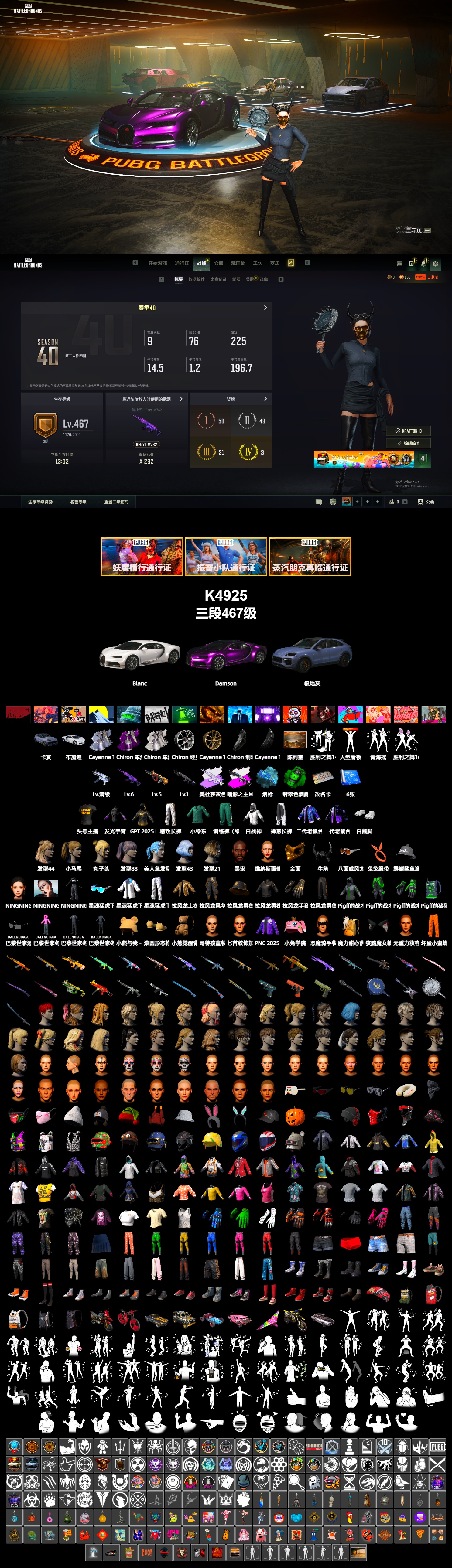 [K4925]3段467级 信誉4 6级无重力 6级美杜莎+白异色 5级牛头 1级暗影+异色 烟弹烟枪 改名卡 6图纸 保时捷卡宴 布加迪 金面 牛角 绿东