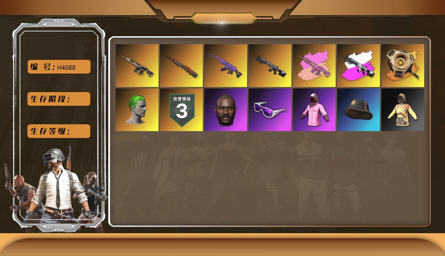 6级弥诺陶洛斯AUG 3级夜曲M24 3级午夜惊魂98K 2级恶魔ACE 2级刻耳柏洛斯M249 粉色烟雾弹 金面 白熊鞋 小兔学院 绷带AK
