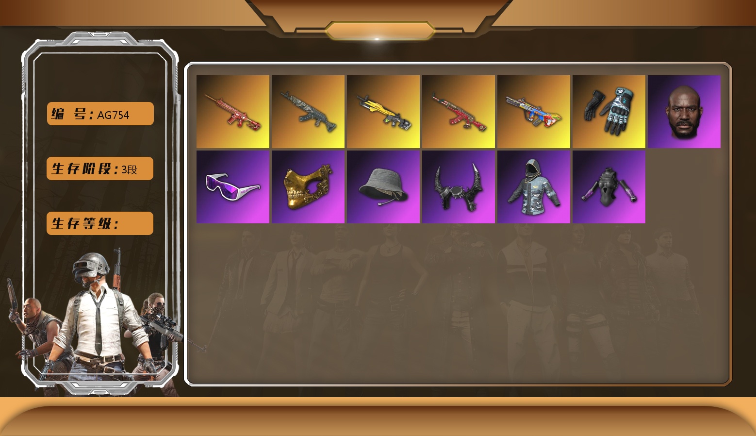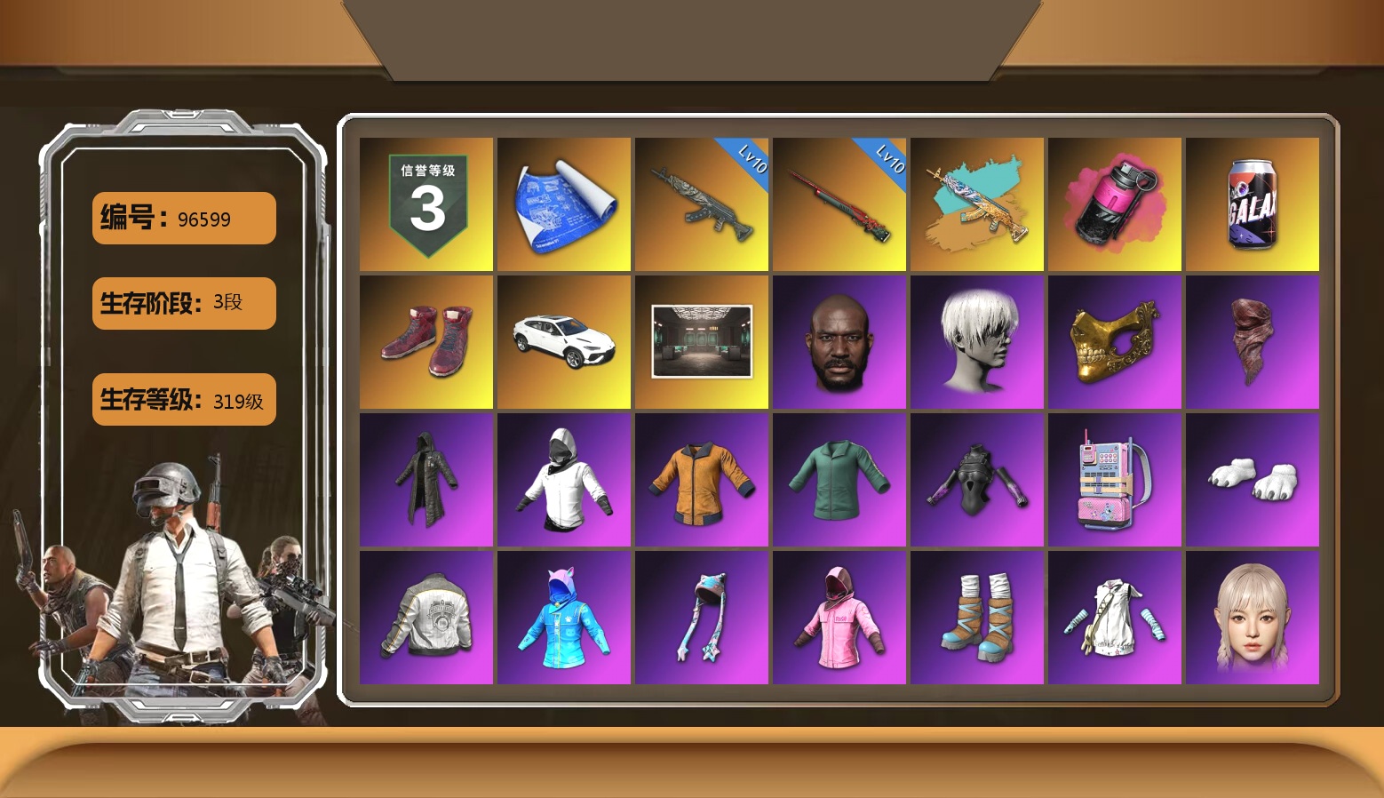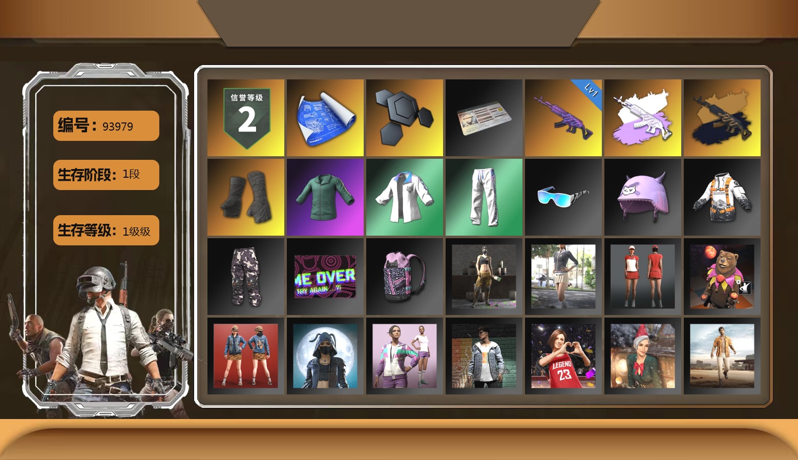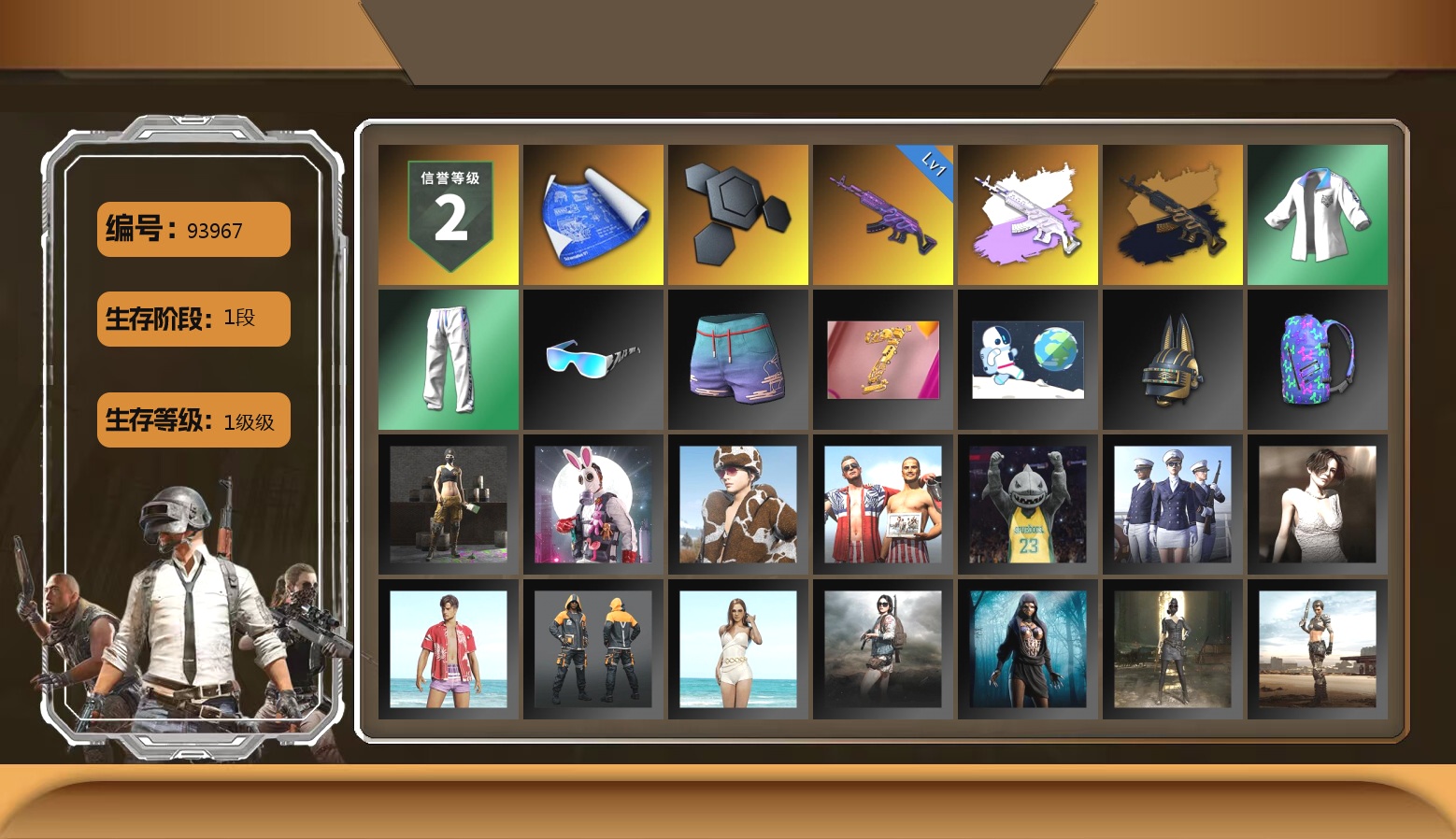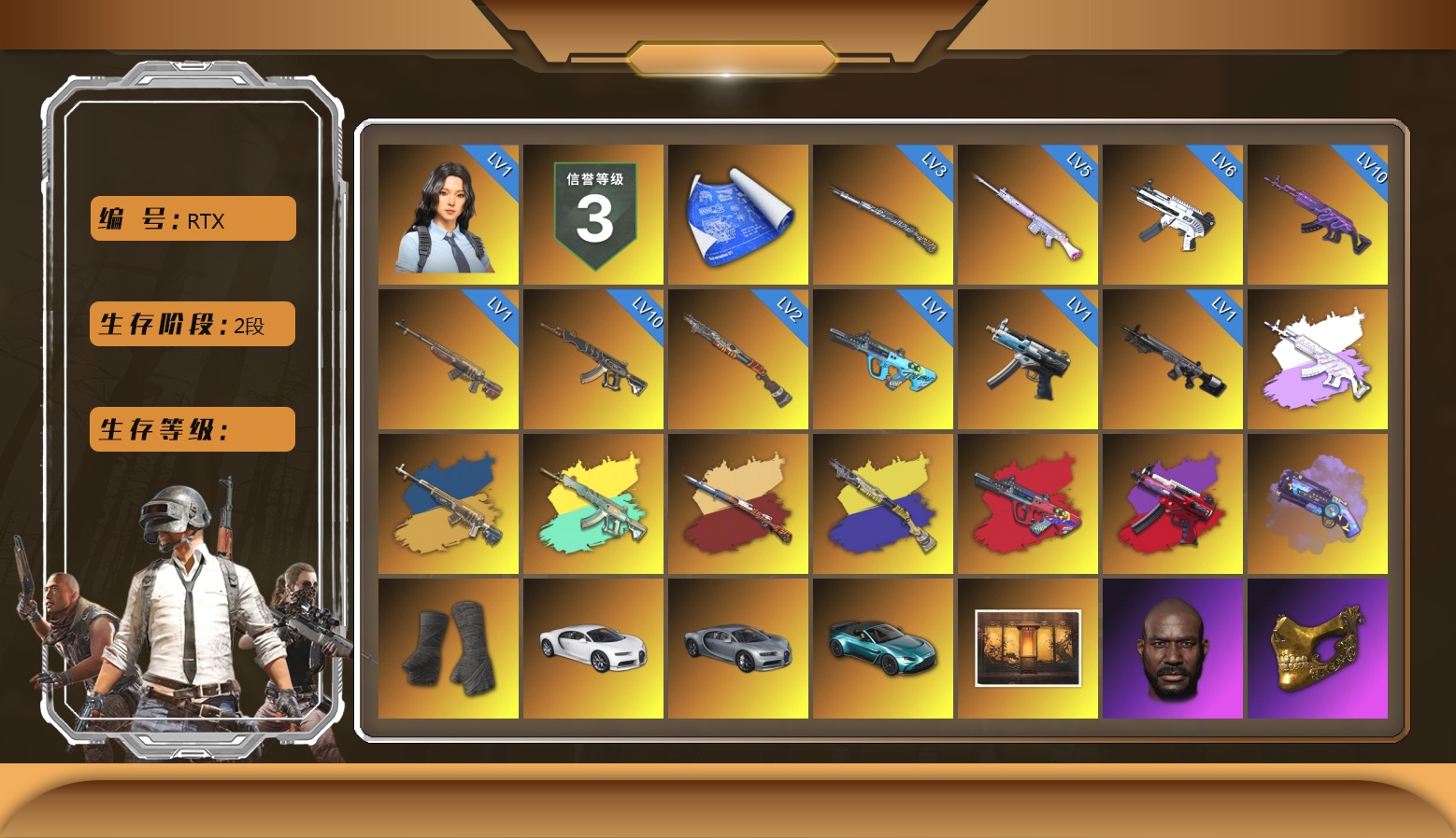 5级猪八戒M4 2级美杜莎762 1级冰域Groza 1级寒蚀MP5K 1级暗影之主Mk12 黄色烟雾弹 14张图纸 黄东 活动绿东 发光手臂 白熊鞋 阿狸 拉风龙 小兔学院