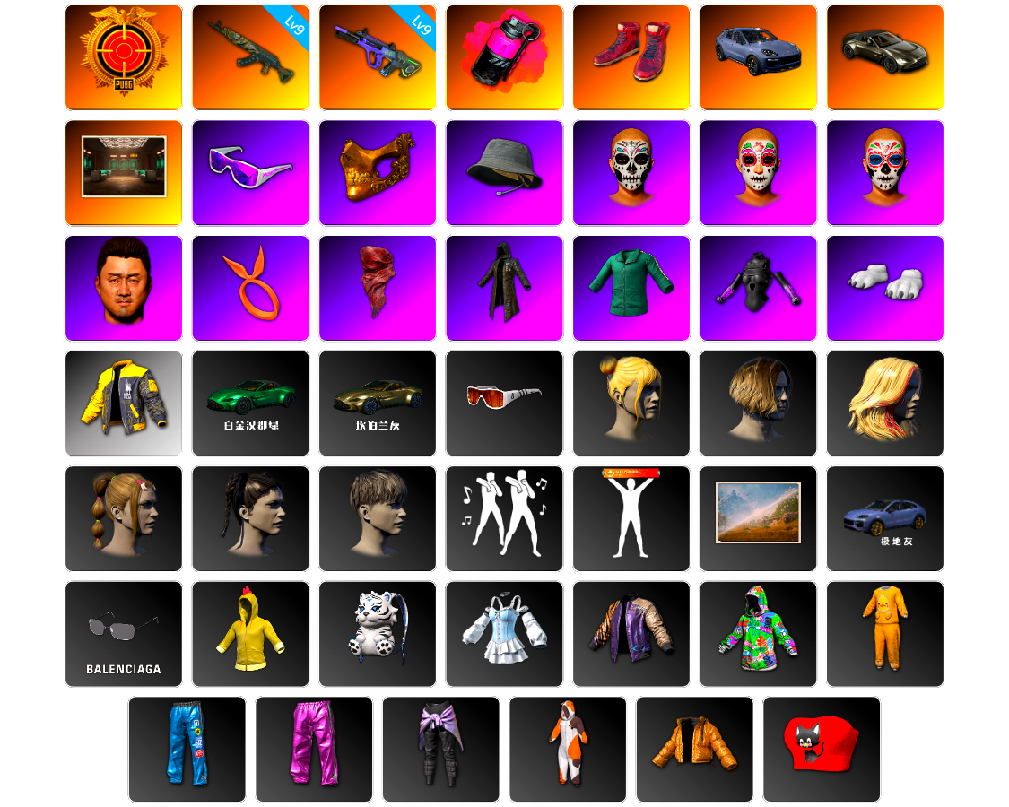 ID[251628][JHJ185]9级青龙762 9级霓虹AUG 品红色烟雾弹 柏林鞋 保时捷卡宴 马丁跑车 交易所接待室 滑雪镜 金面 渔夫帽 马东锡 橙色发带 红面巾 黑大衣 活动绿东 发光手臂 白熊鞋 鸡斯卡夹克 车漆 丸子头 青海摇 小兔学院 悲喜 绷带AK PGC 2021套装