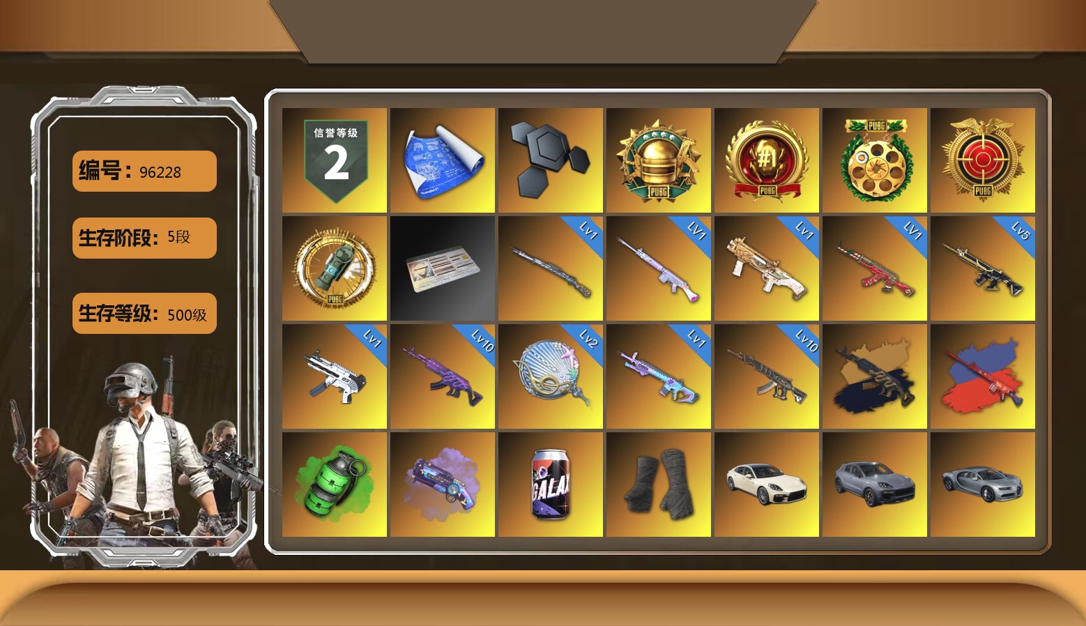 10级彩虹M24 10级朱雀M4 7级妖魔之触ACE 3级白虎锅 1级多利安 1级午夜惊魂98K 1级弥诺陶洛斯AUG 1级GD-AUG GD-AUG(异色) 天蓝色烟雾弹 橘色烟雾弹 青色烟雾弹 橙色狂怒之雾-M79 柏林鞋 黑绷带 帕拉梅拉 保时捷卡宴 布加迪奢华版跑车 兰博基尼跑车 兰博基尼SUV 陈列室 交易所接待室 2张图纸 5350聚合物 黑鬼 9s发型 滑雪镜 金面 牛角 康萨斯 卡崔娜 内马尔 红面巾 黑大衣 白战神 黄东 活动绿东 发光手臂 萨芬裤 白熊鞋 aespa女团 滑雪帽 阿狸 尼尔 拉风龙 小马尾 小绿头 丸子头 西游记 脏辫 爱的主打歌 青海摇 小兔学院 绷带AK