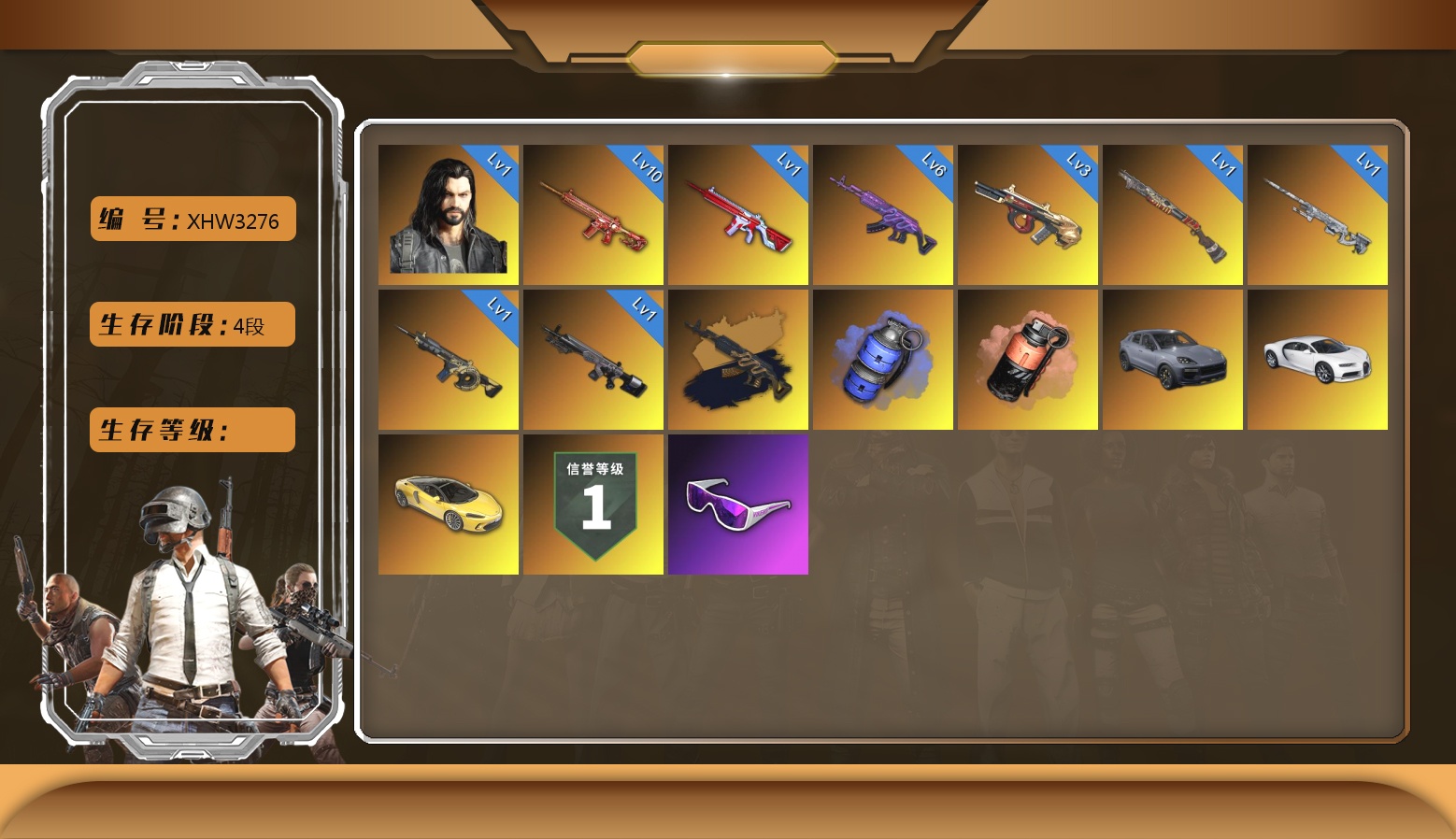 XHW3276 四阶段 信誉一级 【布加迪 保时捷卡宴】 10-6-3-1-1-1-1-1-1 10级朱雀 6级美杜莎带黑金异色 3级弥诺陶洛斯 1级s1897 1级时空 1级无信号 1级暗影 1级幽影 1级多利安 滑雪镜 黄烟 橙烟 蓝烟 7张图纸 改名卡 白熊脚
