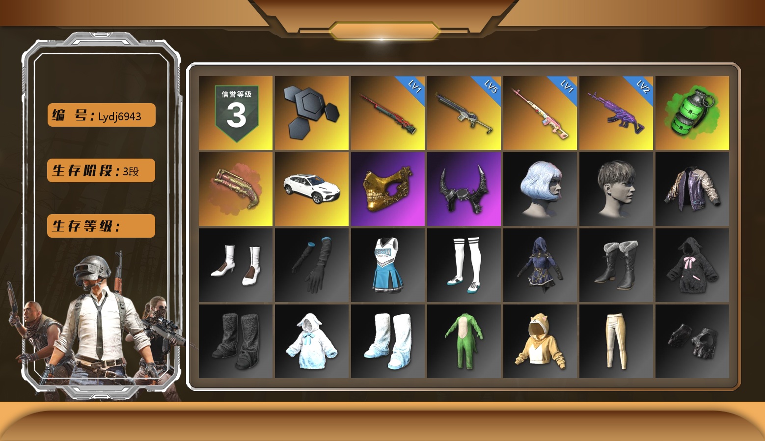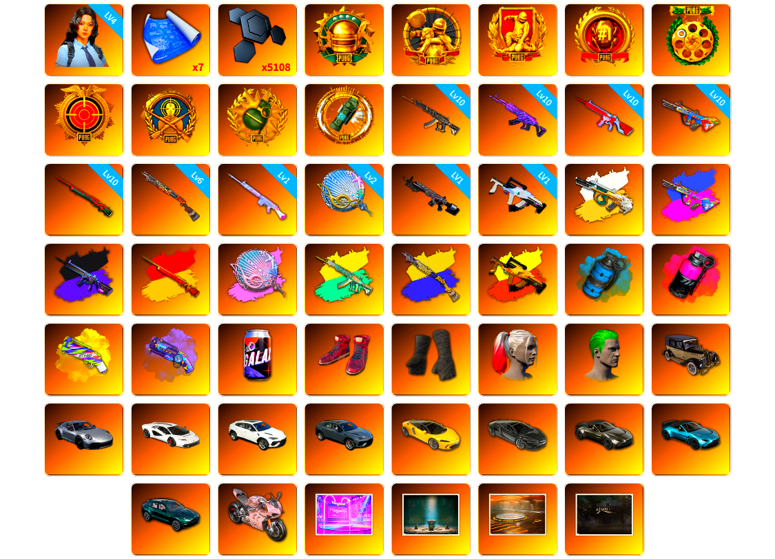 4级瀚娜 7张图纸 5108聚合物 10级妖魔之触ACE 10级美杜莎762 10级无信号M4 10级爆裂AUG 10级孙悟空M24 6级烈日灼烧-S1897 1级玩偶炮 2级塞壬平底锅 1级暗影之主Mk12 1级冰域Groza 弥诺陶洛斯AUG(异色) 爆裂AUG(异色) 无信号M4(异色) 孙悟空M24(异色) 塞壬 - 平底锅(异色) 妖魔之触(异色) S1897(异色) 冰域Groza(异色) 天蓝色烟雾弹 品红色烟雾弹 黄色狂怒之雾-M79 紫色魔法迷雾-M79 柏林鞋 黑绷带 小丑女 小丑男 保时捷911 兰博基尼跑车 兰博基尼SUV 兰博基尼奢华版 迈凯伦玛瑙黑版 马丁跑车 马丁敞篷跑车 马丁SUV 杜卡迪叛逆玫瑰 女团大厅 胜利密室 陈列室 兰博大厅 冬季藏匿处 交易所接待室 武器神龛 黑鬼 MINJI 9s发型 滑雪镜 金面 渔夫帽 牛角 丑男妆容 马东锡 内马尔 橙色发带 红面巾 黑大衣 白战神 黄东 活动绿东 发光手臂 竞猜裤 电磁背包 萨芬裤 白熊鞋 小叮当 粉战神 2024女团 aespa女团 阿狸 小黄鸭 可可 尼尔 布朗熊 拉风龙 车漆 小马尾 小绿头 粉头 丸子头 西游记 脏辫 爱的主打歌 青海摇 小兔学院 街头霸王 悲喜 绷带AK 胜利之舞39 嘉米-加农钉 隆-升龙拳 枪炮洗礼