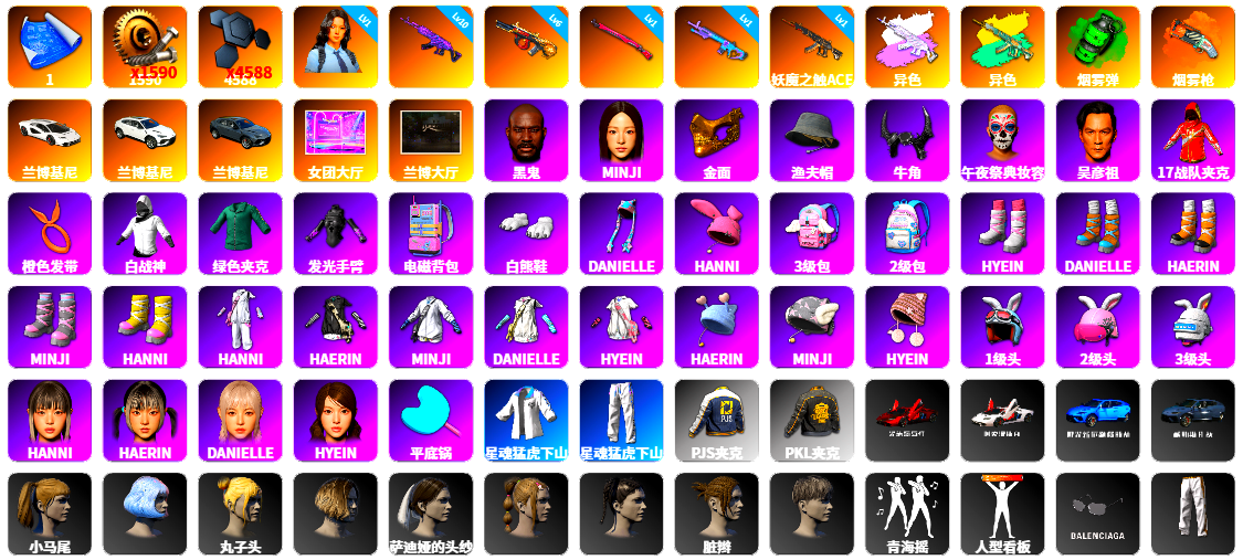 ❤找回包赔❤编号x7077皮肤:1张图纸 蜗牛币 4588聚合物 1级瀚娜 10级美杜莎762 6级弥诺陶洛斯AUG 1级午夜惊魂98K 1级魔咒之力Mk12 1级妖魔之触ACE 美杜莎(异色) 妖魔之触(异色) 翡翠色烟雾弹 橙色狂怒之雾-M79 兰博基尼跑车 兰博基尼SUV 兰博基尼奢华版 女团大厅 兰博大厅 黑鬼 MINJI 金面 渔夫帽 牛角 午夜祭典妆容 吴彦祖 17战队夹克 橙色发带 白战神 活动绿东 发光手臂 电磁背包 白熊鞋 DANIELLE HANNI 3级包 2级包 HYEIN DANIELLE HAERIN MINJI HANNI HANNI HAERIN MINJI DANIELLE HYEIN HAERIN MINJI HYEIN 1级头 2级头 3级头 HANNI 2024女团 DANIELLE HYEIN 平底锅 星魂猛虎下山运动夹克 星魂猛虎下山运动裤 PJS夹克 PKL夹克 车漆 小马尾 发型43 丸子头 发型21 萨迪娅的头纱 发型61 发型51 脏辫 发型24 青海摇 人型看板 巴黎世家透明方形墨镜 精致长裤 暴躁花生墨镜 暴躁花生针织帽 黑血短靴 暴躁花生运动鞋 坏兔子运动鞋 暴躁花生连帽卫衣 暴躁花生长裤 坏兔子衬衫 坏兔子短裤 星魂虎虎生威背包(3级) 星魂虎虎生威背包(2级) 星魂虎虎生威背包(1级) 星魂虎虎生威平底锅 星魂的M416 星魂猛虎下山滑雪镜 星魂虎耀星辉面具 星魂虎耀星辉瑜伽上衣 星魂虎耀星辉工装裤 漫步沙滩连衣裙(棕色) 漫步沙滩连衣裙(蓝色) 冬梦女孩 银色美人飞行员夹克 冰雪天使连衣裙 卡通学院夹克 零度机能风 加油!连帽卫衣 迷人鲜花泳衣 无重力披风 闪亮运动裤 鳄鱼大军泳裤 工作裤 战术科技裤 粉鲨宝宝连身睡衣 蓝鲨宝宝连身睡衣 三色猫连身衣 2号长袖运动衫 猎手猫夹克 猎手猫上衣 特工小兔长袖上衣 特工小兔手套 特工小兔高跟鞋 小队队长 小队队长 银河系女孩 银河系女孩 冬梦女孩 冬梦女孩 冬梦女孩 星际小兔 星际小兔 绒毛伙伴 绒毛伙伴 绒毛伙伴 绒毛伙伴 棉花糖马甲 棉花糖T恤 棉花糖鞋 极光之友 极光之友 蓄势待发 蓄势待发 恐龙乐园 恐龙乐园 柴犬帮 柴犬帮 维娜托短裙 兄弟同盟 兄弟同盟 兔兔长袖运动衫 兔兔运动裤 缤纷混沌连帽卫衣 棉花蕾丝绒 紫喵喵手套 亮片炫彩 奶牛印花绑结式上衣(棕色) 维寒迪雪上运动夹克 维寒迪长裤 老奶奶睡裙 老奶奶睡裤 先驱战队 先驱战队 先驱战队 先驱战队 先驱战队 先驱战队 先驱战队 先驱战队 先驱战队 先驱战队 鸡警 鸡警短裤 沉睡女王 绸缎长袖 绸缎睡裤 圣诞之子夹克 圣诞之子长裤 快乐冬眠蝴蝶结上衣 快乐冬眠蝴蝶结短裤 快乐冬眠花边上衣 快乐冬眠花边短裤 头号主播 太阳之子电波干扰背包 OGBG 纹身 晚餐幻象纹身 蜘蛛纹身 金墨点染 开拓者墨镜 强袭者短裤 强袭者短鞋 强袭者上衣 强袭者夹克 开拓者短鞋 魔力甜心萨莉的礼服(粉红色) 萨莉的礼服 萨莉的礼服 萨莉2级头 小兔航天局 小兔航天局 小兔航天局 小兔航天局 探月者 小兔学院 绒毛小恶魔上衣 绒毛小恶魔短裙 绒毛小恶魔圆头鞋 兔兔也朋克发箍 兔兔也朋克腿套 发型60 发型59 aespa - 平底锅 [战场痕迹] aespa - M416 爱之小鸡 舞蹈派对! 7周年快乐! 万圣节大奖 战场恶犬 手绘的“举起手来” 回归 让子弹飞 PUBG x NewJeans 猛虎 恶魔的微笑 双狼成行 月球漫步者 PNC 2025 024 - 头盔(3级) PNC 2025 全力出击 - 头盔(2级) 无痕之钢 - 头盔(3级) 无痕之钢 - 头盔(2级) 无痕之钢 - 头盔(1级) 糖果突击 - 头盔(1级) 蓝鲨宝宝 - 头盔(2级) 趣味狂欢 - 头盔(1级) 7周年快乐 - 头盔(1级) 兰博基尼 Vikendi Varsity - Helmet (Level 2) 粉梦长眠 - 头盔(2级) 小狗耳朵 - 头盔(2级) 柠檬汁 - 头盔(2级) 嘻哈风 - 头盔(2级) 夹心软糖 - 头盔(2级) 恐龙儿 - 头盔(2级) 战士阿冰 - 头盔(3级) 沙滩狂战士 - 头盔(3级) 百变小丑 - 头盔(3级) 数位传送 - 头盔(3级) 迪厅镜面球 - 头盔(3级) 赫尔墨斯之翼 - 头盔(3级) 疯狂科学 - 头盔(3级) 8th Anniversary - Helmet (Level 3) PNC 2025 全力出击背包(2级) PNC 2025 战术科技背包(3级) 蓝鲨宝宝背包(2级) 新生的奇趣背包(2级) 包装狗狗背包(2级) 紫色棱镜背包(3级) 肆意挥洒背包(3级) 如猫在背背包(3级) 沙滩风情背包(3级) 芳心女猎手背包(3级) 柴犬帮背包(3级) 欧姆的背包(3级) 寰宇侠的背包(3级) 小兔学院降落伞 Vikendi Varsity Parachute 小白鲨降落伞 踏浪而行降落伞 快乐小熊降落伞 太空小动物降落伞 冬雪欲来降落伞 为你疯狂降落伞 无重力降落伞 PCS7 降落伞 赛季28竞技降落伞 挣脱尘网降落伞 34赛季伞 赛季30竞技降落伞 赛季29竞技降落伞 PCS1 降落伞 银兔猎手降落伞 赛季33竞技降落伞 赛季32竞技降落伞 潜行速降降落伞 36赛季 赛季37竞技降落伞 太阳之子降落伞 赛季39竞技降落伞 危险勿近套装 小兔学院生化服套装 烤鸡节服饰套装 3 学院派套装 私立学校校服套装 暗夜猎手服饰套装 尽染樱色套装 寻腥猎犬套装 杂技熊服饰套装 绒汪汪服饰套装 萌虎下山套装 条纹生存者套装 野猫套装 胜利啦啦队套装 狂鸡队吉祥物玩偶服套装 暗夜兔女郎套装 月影套装 蓝仙女套装 狐狸侯爵套装 夜伴花开旗袍套装 带刺芬芳套装 高档服饰套装 运动风套装 咖啡王制服套装 街头风套装 牛年服饰套装 3 牛年服饰套装 1 牛年服饰套装 4 牛年服饰套装 2 传奇队篮球套装 马戏团之星套装 角鲨队吉祥物套装 夏日沙滩风情服饰套装 雪人套装 圣诞派对服饰套装 圣诞精灵套装 拉拉队套装 欢快麋鹿套装 深红女郎的服饰套装 拉拉队队服套装 夏日复古套装 波尔卡圆点夏日套装 斑点狗服饰套装 年末问候套装 废土休闲套装 欧姆的服饰套装 吊带裤配蝴