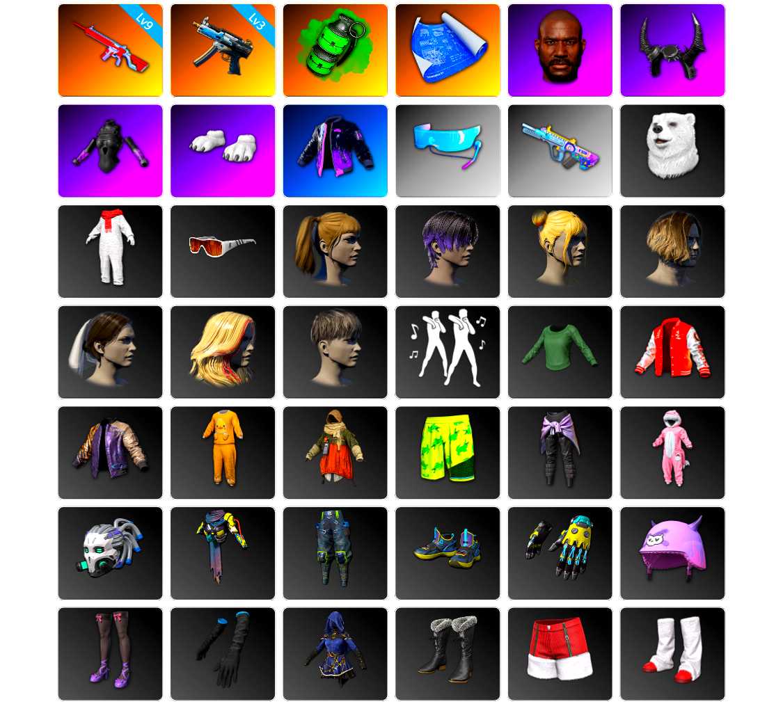 10级美杜莎762 6级朱雀M4 2级德拉贡 1级多利安 1级伊芙 1级赛博MK12 1级彩虹M24 1级玩偶炮 1级午夜惊魂98K 1级烈日灼烧-S1897 1级GD-AUG 1级冰域Groza 美杜莎(白异色) 翡翠色烟雾弹 橙色狂怒之雾-M79 紫色魔法迷雾-M79 柏林鞋 黑绷带 帕拉梅拉 保时捷卡宴 布加迪跑车 兰博基尼SUV 交易所接待室 1张图纸 13640聚合物 黑鬼 滑雪镜 金面 橙色发带 红面巾 黑大衣 白战神 活动绿东 发光手臂 白熊鞋 小叮当 aespa女团 滑雪帽 小绿头 西游记 小兔学院 绷带AK 胜利之舞39
