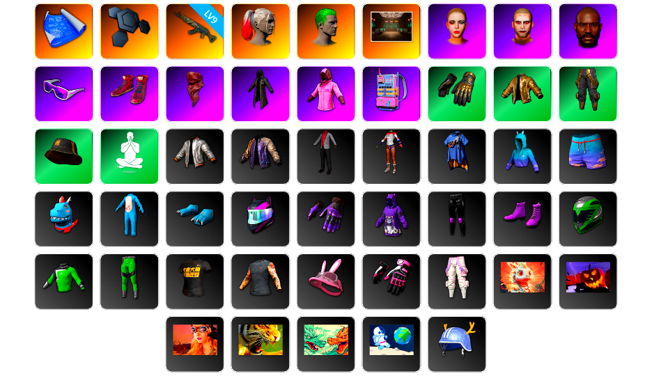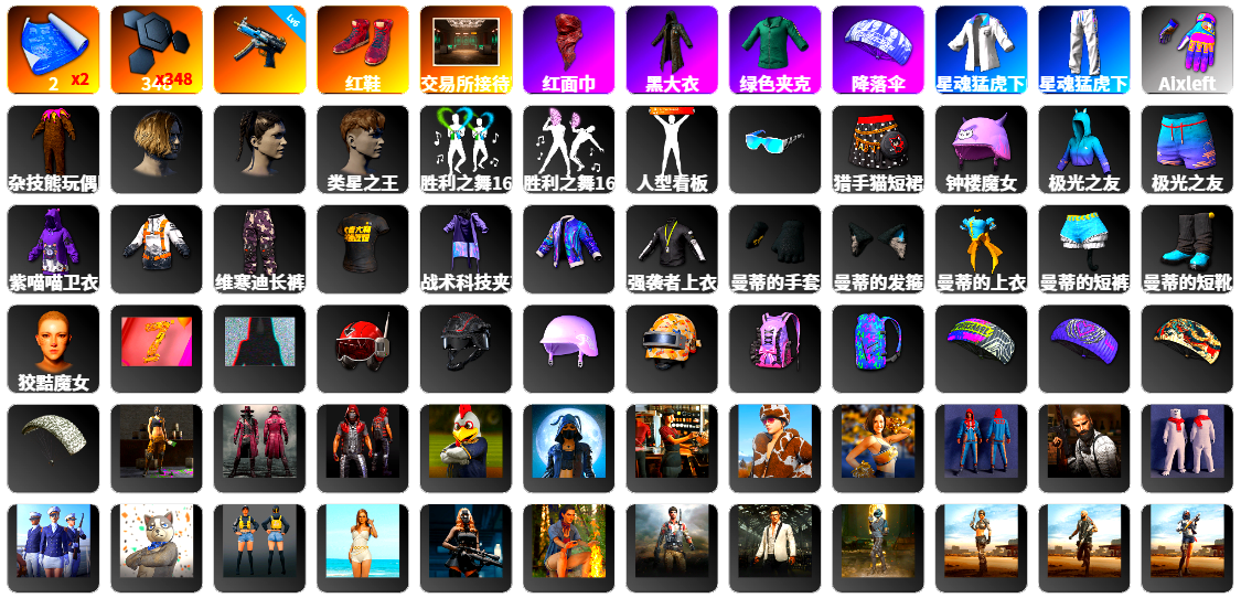 0张图纸 0聚合物 9级青龙762 小丑女 小丑男 交易所接待室 丑男妆容 黑鬼 滑雪镜 柏林鞋 红面巾 黑大衣 粉战神 电磁背包 拉风龙 小兔学院 悲喜