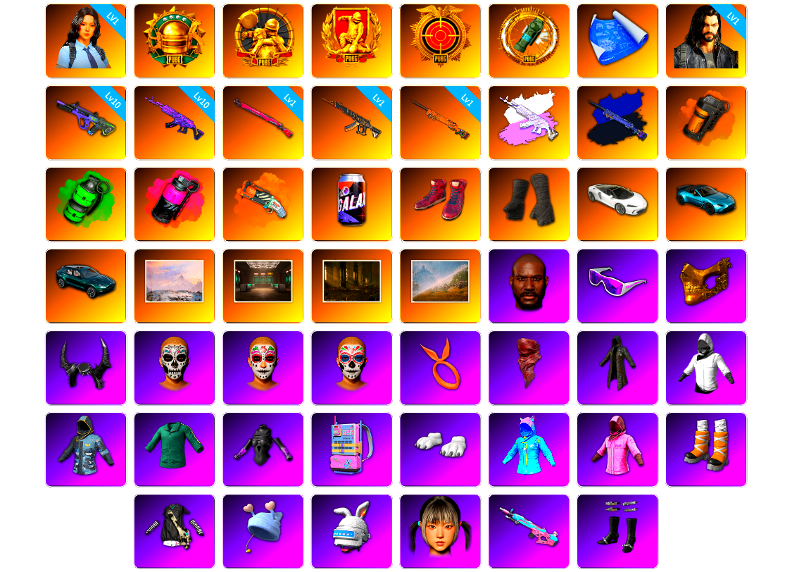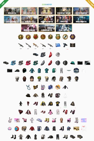 10级火麒麟 10级朱雀M4 1级妖魔之触ACE 紫色烟雾弹 天蓝色烟雾弹 乳白狂怒之雾-M79 湛蓝狂怒之雾-M79 深红狂怒之雾-M79 小黑盒 7张图纸 13798聚合物 收割者金标 捕食者金标 9s发型 渔夫帽 滑雪镜 牛角 金面 橙色发带 发光手臂 竞猜裤 白熊鞋 萨芬裤 尼尔 拉风龙 小马尾 小绿头 粉头 丸子头 脏辫 小兔学院 悲喜 绷带AK PGC 2021套装