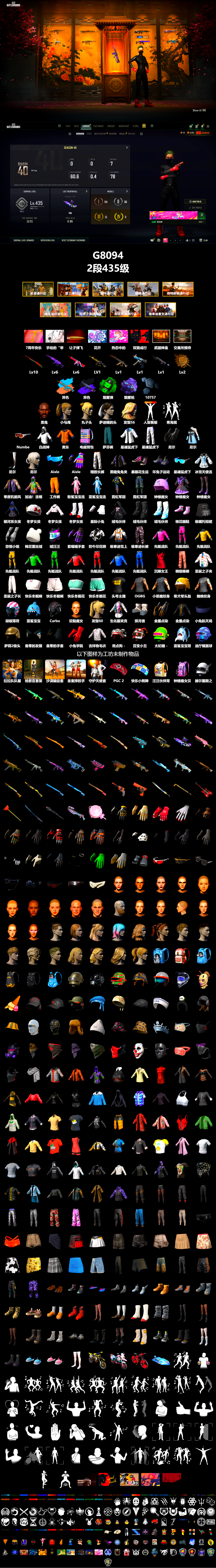 编号G8094皮肤:10级孙悟空M24 6级美杜莎762 6级无信号M4 1级猪八戒M4 1级妖魔之触ACE 1级寒蚀MP5K 1级暗影之主Mk12 2级唐三藏平底锅 猪八戒(异色) 无信号M4(异色) 翡翠色烟雾弹 紫色魔法迷雾-M79 聚合物 交易所接待室 武器神龛 黑鬼 白战神 黄东 电磁背包 萨芬裤 星魂猛虎下山运动夹克 星魂猛虎下山运动裤 尼尔 Aixleft Aixleft Number 小马尾 丸子头 萨迪娅的头纱 发型56 青海摇 人型看板 精致长裤 黑暗兔兔夹克 暴躁花生运动鞋 坏兔子运动鞋 星魂猛虎下山滑雪镜 冰雪天使连衣裙 零度机能风 加油!连帽卫衣 工作裤 粉鲨宝宝连身睡衣 蓝鲨宝宝连身睡衣 霓虹军团 霓虹军团 钟楼魔女 钟楼魔女 钟楼魔女 银河系女孩 冬梦女孩 冬梦女孩 冬梦女孩 星际小兔 绒毛伙伴 绒毛伙伴 绒毛伙伴 棉花糖鞋 维娜托短裙 怨恨小姐 棉花蕾丝绒 绒汪汪 紫喵喵手套 奶牛印花绑结式上衣(黑色) 维寒迪雪上运动夹克 维寒迪长裤 先驱战队 先驱战队 先驱战队 先驱战队 先驱战队 先驱战队 先驱战队 先驱战队 先驱战队 先驱战队 沉睡女王 绸缎睡裤 圣诞之子夹克 圣诞之子长裤 快乐冬眠蝴蝶结上衣 快乐冬眠蝴蝶结短裤 快乐冬眠花边上衣 快乐冬眠花边短裤 头号主播 OGBG 纹身 小恶魔纹身 蜘蛛纹身 金墨点染 金墨点染 萨莉2级头 小兔航天局 探月者 小兔学院 曼蒂的手套 曼蒂的发箍 发型60 狡黠魔女 7周年快乐! 手绘的“举起手来” 让子弹飞 花开 热恋中的 双狼成行 柴犬帮头盔(2级) 胡椒薄荷 - 头盔(1级) 蓝鲨宝宝 - 头盔(2级) Carbon Fiber Commando - Helmet (Level 2) 斑点狗 - 头盔(2级) 百变小丑 - 头盔(3级) 太妃糖 - 头盔(3级) 迪厅镜面球 - 头盔(3级) 赫尔墨斯之翼 - 头盔(3级) 蓝鲨宝宝背包(2级) 钟楼魔女贝拉背包(2级) 汪汪伙伴背包(3级) 快乐小熊降落伞 PGC 2019 降落伞 拉拉队队服套装 检察官套装 沙漠骗徒套装 皇室摔跤手套装 守护天使套装2 晚秋-M416 柠檬汁 - M416 绷带AK 金色续响 - AUG 钟楼魔女贝拉 - ACE32 分形碎片 - ACE32 霓虹之星 - SCAR-L 鸡斯卡 - SCAR-L 三重彩 - SCAR-L 甜蜜外衣 - M16A4 方形铬印 - Mk47 Mutant Blue Magic Blaster - G36C 山花烂漫 - Groza 雪花 - K2 彩虹之上 - SLR 礼品店 - SKS 猪八戒 - Mk12 孙悟空 - Mk14 璀璨星光 - QBU 魔力甜心萨莉的永恒挚友 - 德拉贡诺夫 镀金 - Win94 粗糙 (橙色) - Kar98k 鲜花之力 - AWM 镀金 - AWM 王牌 - 莫辛纳甘步枪 双色 - MP5K 唐三藏 - FAMAS 竞速之道 - P90 Poof! - PP-19 Bizon 镀金 - UMP 镀银 - 汤姆逊冲锋枪 精工美术 - 汤姆逊冲锋枪 鲜花之力 - Vector 水手 - Micro UZI 锁链帮 - Micro UZI 花呢控 - M249 雪花 - DP-28 灰色系 - DBS 游猎之旅 - S12K 水手 - S1897 灵长类 - S1897 海洋哑光(蓝色) - S686 波涛荡漾 - S686 华夫饼 - S686 水手 - R1895 行动时刻 - P18C 锦衣夜行佩刀 PUBG信条钢管 朋克战斧 马桶塞 暗黑断罪之剑 不朽游行 - 铁拳火箭筒 山花烂漫 - 十字弩 你的第一锅 - 平底锅 7周年快乐手套 鸡斯卡小鸡手套 圣诞手套(红色) 维纳斯俱乐部手部装饰 人类猎手探险手套 队长的迷彩手套 幸运怪盗手套 准备就绪手套 铁血警官的手套 维寒迪雪上运动手套 虚空女巫手套 熊猫手套 字节意志手套 PGC 2022 斑斓危机手套 狂欢小队手套 冰域之主手套 虚空使者手套 暗影之主手套 豹子精手饰 金底耐磨手套 PGC 2019 护手和智能手表 海洋独行侠墨镜 乔纳森的猎人墨镜 精致的眼镜 沙滩宝贝智能眼镜 PGC 2022 斑斓危机墨镜 暗影突袭者墨镜 PGC 2019 眼镜 虚空使者眼镜 维纳斯面部妆容 雀斑妆容 暗夜兔女郎妆容 PGC 2021 黑暗凝视妆容 女性面容17 女性面容21 女性面容20 女性面容16 男性面容11 青年谢尔盖 冬眠后的胡子 暗影之主纹身 林影潜行妆容 牛仔响尾蛇纹身 漫步沙滩妆容 冬梦女孩妆容 绒毛伙伴妆容 发型16 发型12 发型44 发型65 发型37 发型31 青年谢尔盖的发型 发型20 发型10 冰域之主发型 虚空使者发型 暗影之主发型 发型74 发型78 发型72 小小捣蛋鬼背包(3级) 战士阿冰背包(3级) 小小捣蛋鬼背包(2级) 勇往直前背包(1级) 暗影之主背包(1级) 小小捣蛋鬼背包(1级) 锈迹斑斑 - 头盔(3级) 幻影 - 头盔(3级) 复古花头盔(3级) PUBG信条 - 头盔(2级) 维寒迪雪上运动 - 头盔(1级) 失重 - 头盔(1级) 可怜的布娃娃面具 7周年快乐甜筒帽 PNC 2022 连战连捷鸭舌帽 准备就绪鸭舌帽 队长的迷彩鸭舌帽 海洋小姐贝雷帽 炫酷头巾 报童帽(黑色) 渔人的帽子 熊猫发箍 PGC 2019 头饰 寄情尼罗河渔夫帽 冰域之主面罩 暗影之主面罩 林影潜行帽子 怪笑针织帽 Brazen Bandit Bucket Hat 豹子精渔夫帽 冰雪天使王冠 数羊羊睡眠眼罩 准备就绪口罩 午夜均衡器面罩 PCS2 隐形生存者面巾 暗影之星的面巾 暗夜猎手面巾 队长的迷彩面巾 猩红猎手面具 幸运怪盗面具 劫掠者面具 美美的睡眠眼罩 PGC 2022 战术科技面罩 Carbon Fiber Commando Face Mask 坚持到底面巾 准备就绪夹克 青年谢尔盖的皮夹克 霓虹纹饰连帽卫衣 怪盗小兔上衣 使徒外套 锦鲤旗袍 巨蟒王后长款夹克 正统朋克上衣 黑金旗袍 猛虎齿痕露脐上衣 朱莉的潜行者夹克 夏日比基尼(黑色) 海洋小姐上衣 虚空女巫外套 赫尔墨斯之翼夹克 时尚朋克上衣 夏日烈阳背心 PCS5 清场能手T恤 生存练习生连帽卫衣 学院派上衣 专注马球衫 鸡宝宝 恶贯满盈上衣 PUBG信条马甲 沙漠骗徒风衣 兴致索然夹克 深红女郎的上衣 圣诞风针织毛衣 猩红猎手长款大衣 模范生上衣 浪尖起舞T恤 雪色美人连衣裙 7周年快乐夹克 驭龙勇士上衣 私校