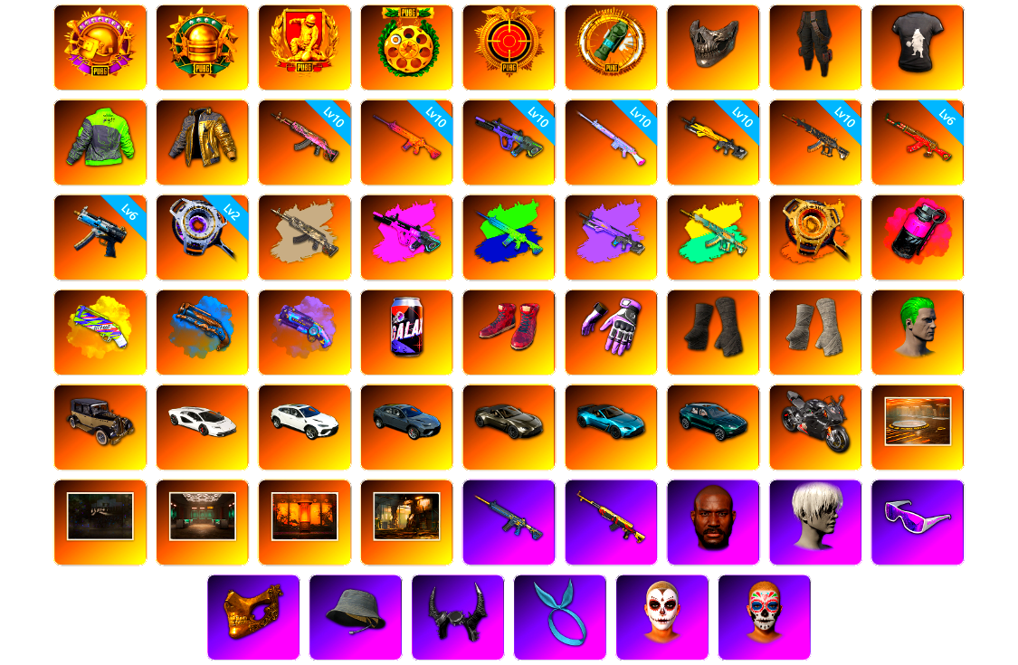 收割者金标 柏林面具 柏林裤 武士一代 朱芳芳夹克 斗鱼 10级火麒麟 10级南瓜M4 10级霓虹AUG 10级玩偶炮 10级小兔MK12 10级妖魔之触ACE 6级圣诞AK 6级寒蚀MP5K 2级虚空使者 火麒麟(异色) 霓虹AUG(异色) 南瓜M4(异色) 小兔MK12(异色) 妖魔之触(异色) 虚空使者(异色) 品红色烟雾弹 黄色狂怒之雾-M79 湛蓝狂怒之雾-M79 紫色魔法迷雾-M79 柏林鞋 小黑盒 黑绷带 白绷带 小丑男 兰博基尼跑车 兰博基尼SUV 兰博基尼奢华版 马丁跑车 马丁敞篷跑车 马丁SUV 杜卡迪纯净黑 陈列室 兰博大厅 交易所接待室 武器神龛 黑鬼 9s发型 滑雪镜 金面 渔夫帽 牛角 康萨斯 卡崔娜 丑男妆容 红面巾 黑大衣 小战神 活动绿东 发光手臂 电磁背包 白熊鞋 青蛙套 橙运动 监狱服 渐变装 粉战神 尼尔 车漆 小马尾 丸子头 脏辫 小兔学院 悲喜 滑雪帽 西游记