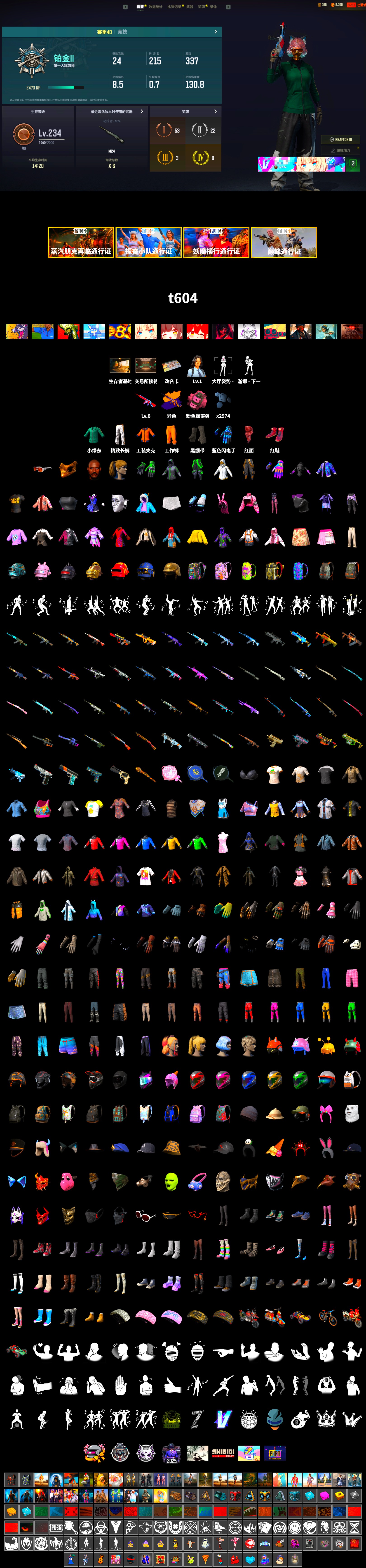 ❤找回包赔❤皮肤:6级无信号M4 1级瀚娜 无信号(异色) 柏林鞋 黑绷带 交易所接待室 信誉等级二 2974聚合物 黑鬼 金面 红面巾 黑大衣 黄东 活动绿东 发光手臂 拉风龙 Aixleft 北极熊头套 Number 小马尾 发型43 精致长裤 朱芳芳手套 朱芳芳夹克 朱芳芳长裤 银色美人飞行员夹克 工作裤 战术科技裤 圣诞老人 特工小兔长袖上衣 特工小兔长裤 小队队长 小队队长 小队队长 银河系女孩 银河系女孩 极光之友 极光之友 宝贝外面冷 宝贝外面冷 宝贝外面冷 宝贝外面冷 绒汪汪 维寒迪雪上运动夹克 维寒迪长裤 先驱战队 先驱战队 先驱战队 先驱战队 先驱战队 先驱战队 先驱战队 先驱战队 先驱战队 先驱战队 先驱战队 先驱战队 先驱战队 先驱战队 先驱战队 头号主播 战术科技夹克 Twitch Rivals 复古飞行员夹克 2025夹克 金墨点染 金墨点染 群雄逐鹿 群雄逐鹿 金墨点染 萨莉的礼服 萨莉的皮鞋 萨莉2级头 兔兔也朋克面罩 兔兔也朋克发箍 兔兔也朋克洋裙 兔兔也朋克腿套 曼蒂的发箍 发型60 晚秋-M416 PGC 2021 群雄逐鹿 - M416 大猫狂怒 精巧机械 - AKM 灵魂枷锁 - AKM 嗜血者 - AUG 宝贝外面冷 - ACE32 Starstruck - ACE32 大理石宝藏 - ACE32 霓虹之星 - SCAR-L 鸡斯卡 - SCAR-L 三重彩 - SCAR-L 蔚蓝挑战者 - SCAR-L 银河卫士 - M16A4 皇家舰队 - M16A4 分形几何 - QBZ 无尽迷宫 - Mk47 Mutant 这不是玩具 - Mk47 Mutant Blue Magic Blaster - G36C 魔幻六边形 - G36C 铜色猎手 - Groza 镀金 - Groza 皇家舰队 - K2 大理石宝藏 - SLR 赛季35竞技黄金 - Lynx AMR 金色落叶 - SKS 分形几何 - SKS 精巧机械 - Mini14 夏日冲浪 - Mini14 皇家舰队 - Mini14 孤独情人 - Mk12 幽灵之握 - Mk12 紫色雨滴 - VSS 爬行者之印 - VSS 璀璨星光 - QBU 魔力甜心萨莉的永恒挚友 - 德拉贡诺夫 致命快递 - 德拉贡诺夫 这个夜晚不太静 - 德拉贡诺夫 拼图 - Win94 悠扬情歌 - Kar98k 鲜花之力 - AWM 劫掠者 - M24 幽灵之握 - M24 恶战 - 莫辛纳甘步枪 Starstruck - MP5K Poof! - PP-19 Bizon 方形铬印 - PP-19 Bizon 标准猎手 - UMP 拼图 - 汤姆逊冲锋枪 嗜血者 - Vector 圣诞之力 - DP-28 翡翠之刃 - Vector 精工美术 - 汤姆逊冲锋枪 精致赫尔墨斯 - Micro UZI 无信号 - Micro UZI 冲锋枪 灰色系 - DBS 夺目寒光 - O12 海藻自己上 - O12 镀金 - 锯短型霰弹枪 铜色猎手 - S12K 一击撕裂者 - S1897 这不是玩具 - S1897 礼品店 - S686 三重彩 - P92 沙漠烈阳 - 沙漠之鹰 数码沙漠迷彩 - R45 愉悦的绿松色 - P1911 圣诞之力 - P18C 锦衣夜行佩刀 朋克战斧 双色 - 十字弩 你的第一锅 - 平底锅 8th Anniversary - Pan 哥特戒指 兔兔也朋克手套 小兔学院水手服手套 工人手套(黄色) 人类猎手探险手套 队长的迷彩手套 铁血警官的手套 秉烛罪人手套 维寒迪雪上运动手套 熊猫手套 露指操作员手套 霓虹纹饰手套 PGC 2022 战术科技手套 般若手套 便捷式棒球部手套 时光探员手套 蓝色闪电手套 豹子精手饰 革面悍匪手套 金底耐磨手套 网格手套 女明星眼镜(白色) 乔纳森的猎人墨镜 荣都学者眼镜 发型64 Hairstyle 81 恐龙地带背包(3级) 米拉玛地图背包(2级) 马戏棚背包(2级) 灰色星期一背包(2级) PCS2 弹药库背包(2级) 褪色帆布背包(2级) Vikendi Varsity Backpack (Level 2) 柯基帮背包(1级) 维寒迪雪上运动背包(1级) 一夜好眠背包(1级) 暗黑朋克 - 头盔(3级) 金色头冠 - 头盔(3级) PUBG信条 - 头盔(2级) 邓肯的潜行者头盔 - 头盔(1级) 维寒迪雪上运动 - 头盔(1级) 曼提柯尔黑色越野摩托 - 头盔(1级) 扫雷 - 头盔(1级) 恐龙乐园 “卡蜜” 面具 高科技时尚小兔面罩 没错我有罪头套 无边帽 (黑色) 锦衣夜行斗笠 7周年快乐甜筒帽 准备就绪鸭舌帽 队长的迷彩鸭舌帽 秉烛罪人面具 玩具兵帽 熊猫发箍 人类猎手探险帽 豹子精渔夫帽 革面悍匪帽 时光探员帽 Winter Cheerleader Fur Hat 特工小兔发带 便捷式棒球部帽子 8th Anniversary Headband 准备就绪口罩 PCS2 隐形生存者面巾 PGC 2023 帝皇的荆棘面具 队长的迷彩面巾 朋克预备生口罩 铁血警官的面罩 破碎的恶鬼面具 守护天使面具 PGC 2022 战术科技面罩 般若面具 九尾狐面具 Carbon Fiber Commando Face Mask 革面悍匪面具 黄铜鸟嘴医生面具 豹子精面具 时光探员面具 游击皮夹克 准备就绪夹克 霓虹纹饰连帽卫衣 我的闪耀时刻连帽夹克 秉烛罪人夹克 水色突击夹克 高科技时尚小兔夹克 邓肯的潜行者夹克 咆哮之力街头风背心 锦鲤唐装 人类猎手探险服 没错我有罪上衣 玩具兵夹克 军用夹克 大麻烦胸衣 PCS5 清场能手T恤 小小鸡仔外套 生存练习生连帽卫衣 可爱喵喵旗袍 牧场T恤(蓝色) 烤鸡节连身衣 PCS1 T恤 铁血警官的制服 PUBG信条马甲 朋克预备生毛衣 兴致索然夹克 字节意志上衣 秉烛罪人无袖高领套头衫 水手披巾 衬衫 (灰色) 小小鸡仔T恤 高科技时尚小兔连身衣 T 恤 (白色) T 恤 (灰色) 奶牛印花夹克(棕色) 锦衣夜行装束 恐龙乐园 LOGO T恤 便捷式棒球部制服 般若服饰 革面悍匪上衣 九尾狐服饰 豹子精上衣 豹子精夹克 Winter Cheerleader Top 革面悍匪夹克 黄铜鸟嘴医生夹克 水纹长裤(黑色) 准备就绪长裤 邓肯的潜行者长裤 军用裤子 游击战术裤 水色突击长裤 没错我有罪丝袜配短靴 咆哮之力街头风运动裤 秉烛罪人长裤 PGC 2019 战斗长裤 恐龙乐园紧身裤 清风徐来喇叭裤 战斗裤 (棕色) 战斗裤 (卡其色) 牛仔裤 (棕褐色) 朋克预备生短裤 小小鸡仔短裤 铁血警官的短裙 玩具兵长裤 花卉印花裙 我的闪耀时刻短裙 豹子精短裤 黄铜鸟嘴医生裤 革面悍匪裤 便捷式棒