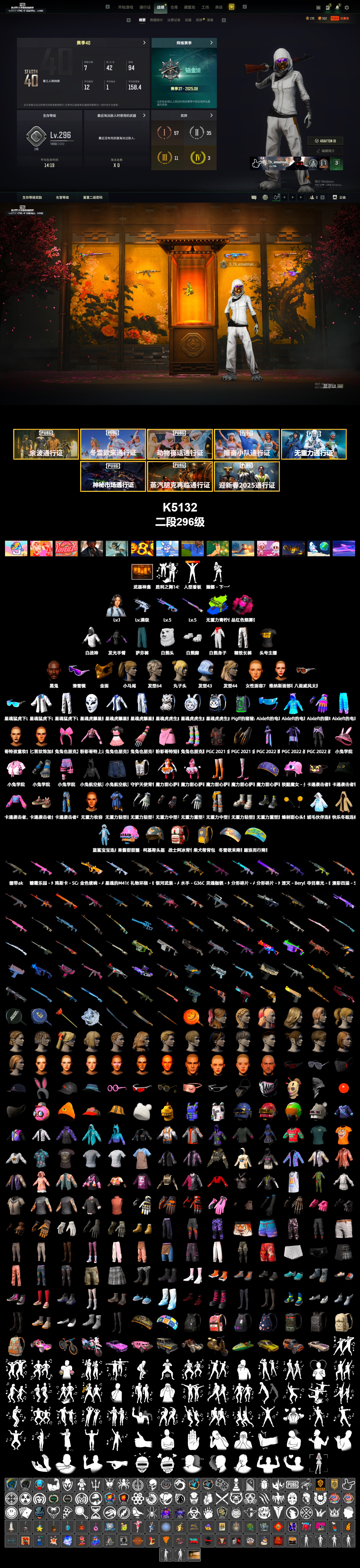 [K5132] 2段296级 信誉3 6级无重力+异色 5级魔咒 5级彩虹m24 烟雾弹 1级瀚娜 黑鬼 金面 滑雪镜