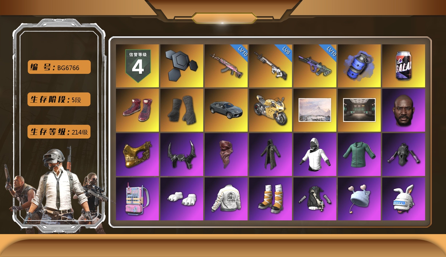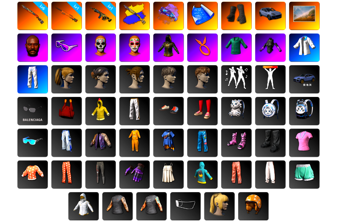 10级火麒麟 10级霓虹AUG 6级赛博MK12 蓝色烟雾弹 柏林鞋 黑绷带 兰博基尼奢华版 杜卡迪极速金 冬季藏匿处 交易所接待室 2994聚合物 黑鬼 金面 牛角 红面巾 黑大衣 白战神 活动绿东 发光手臂 电磁背包 白熊鞋 2024女团 拉风龙 丸子头 青海摇 小兔学院 PGC 2021套装 胜利之舞39 西游记