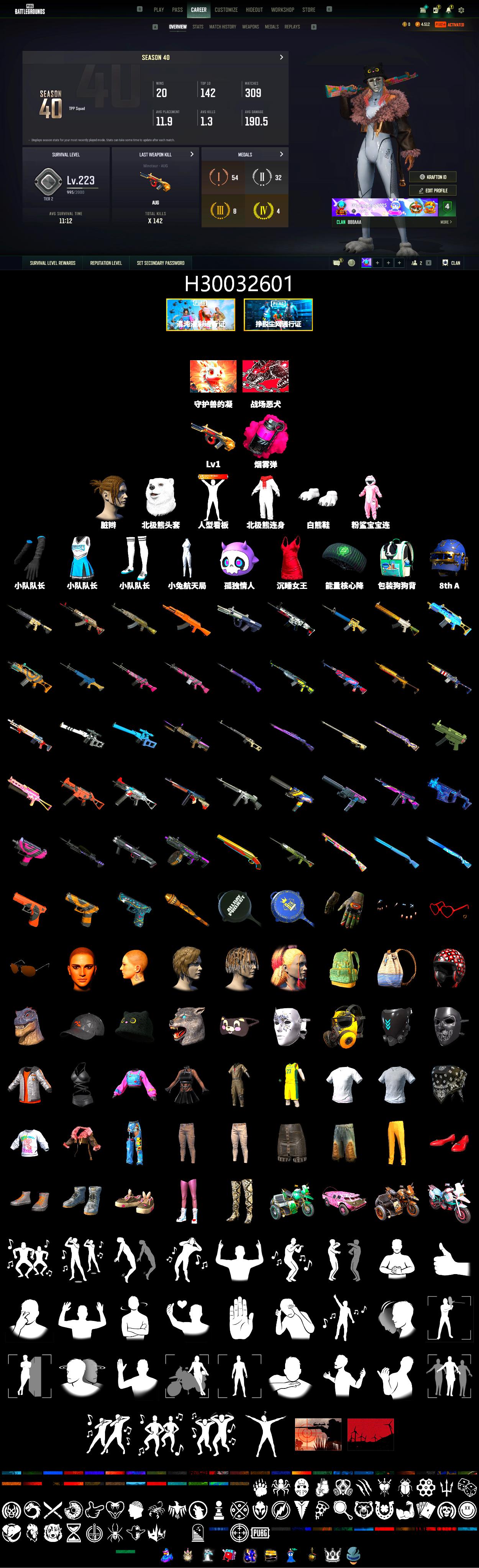 H30032601 1级弥诺陶洛斯AUG 品红色烟雾弹 白熊鞋 脏辫 绷带AK 2阶段
