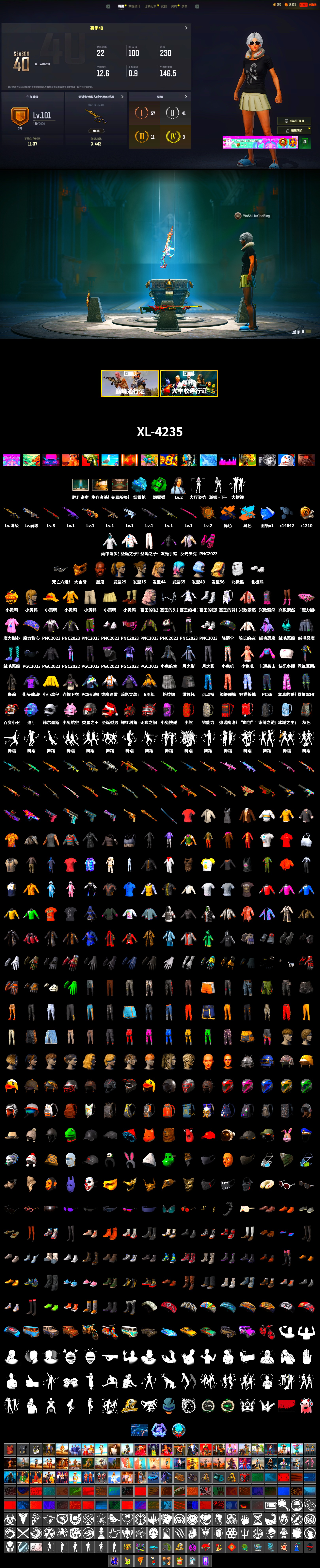 ❤找回包赔❤皮肤:10级猪八戒M4 8级孙悟空M24 6级刻耳柏洛斯M249 2级瀚娜 2级唐三藏平底锅 1级沙悟净MINI 1级午夜惊魂98K 1级无重力MP5K 1级美杜莎762 1级弥诺陶洛斯AUG 1级妖魔之触ACE 1级暗影之主Mk12 美杜莎(黑异色) 猪八戒(蓝异色) 翡翠色烟雾弹 蓝色魔法迷雾-M79 胜利密室 交易所接待室 信誉等级四 1张图纸 14642聚合物 黑鬼 金面 发光手臂 白熊鞋 小黄鸭 杂技熊头套 杂技熊玩偶服 北极熊头套 北极熊连身衣 杂技熊脚套 “魔力甜心萨莉” 两栖装甲车 小马尾 发型43 发型21 发型56 发型41 牛头怪发型 脏辫 类星之王 大摆锤 银色美人飞行员夹克 斑斓危机 闪亮运动裤 战术科技裤 圣诞老人 特工小兔长袖上衣 特工小兔长裤 银河系女孩 银河系女孩 美杜莎上衣 美杜莎裤子 塞壬的裙子 塞壬的鞋子 蓄势待发 恐龙乐园 恐龙乐园 维娜托手套 维娜托口罩 维娜托水手 维娜托短裙 维娜托短靴 怨恨小姐 维寒迪雪上运动夹克 维寒迪长裤 先驱战队 先驱战队 先驱战队 先驱战队 先驱战队 先驱战队 先驱战队 先驱战队 先驱战队 先驱战队 先驱战队 先驱战队 先驱战队 先驱战队 先驱战队 绸缎长袖 绸缎睡裤 战术科技夹克 OGBG 纹身 金墨点染 金墨点染 金墨点染 群雄逐鹿 金墨点染 开拓者墨镜 开拓者手套 开拓者上衣 开拓者长裤 开拓者夹克 强袭者短裤 强袭者短鞋 强袭者上衣 强袭者夹克 开拓者短鞋 萨莉的T恤 小兔航天局 小兔航天局 小兔航天局 小兔航天局 小兔航天局 小兔航天局 探月者 探月者 探月者 小兔学院 绒毛小恶魔上衣 绒毛小恶魔夹克 绒毛小恶魔短裙 绒毛小恶魔圆头鞋 曼蒂的手套 万圣节大奖 手绘的“举起手来” 复古兜风 战场老兵 猛虎 均衡器 双龙出海 灵魂枷锁 - AKM 金色落叶 - AKM 金色落叶 - Mk47 Mutant 分形几何 - G36C 镀金 - Groza 水手 - K2 圆点猎手 - K2 无拘来世 - K2 水手 - SLR 镀金 - SKS 孙悟空 - Mk14 银河小队 - VSS 鎏金王朝 - QBU 致命快递 - 德拉贡诺夫 镀金 - Win94 镀金 - AWM 悸动玫瑰 - 莫辛纳甘步枪 唐三藏 - FAMAS 沙悟净 - P90 Poof! - PP-19 Bizon 镀金 - UMP 行动时刻 - UMP 熔岩灯 - JS9 水手 - 汤姆逊冲锋枪 银河武装 - MP9 抽象派 - MP9 镀金 - Vector 圣诞之力 - DP-28 精工美术 - 汤姆逊冲锋枪 指绘 - Micro UZI 海藻自己上 - O12 镀金 - 锯短型霰弹枪 水手 - S1897 这不是玩具 - S1897 毒性 - S1897 华夫饼 - S686 标准猎手 - P92 沙漠烈阳 - 沙漠之鹰 华夫饼 - R1895 复古浪潮 - R45 愉悦的绿松色 - P1911 圣诞之力 - P18C 朋克战斧 海洋哑光(蓝色) - 镰刀 暗黑断罪之剑 紫色雨滴 - 十字弩 哥特戒指 类星之王的手套 队长的迷彩手套 战场老兵手套 幸运怪盗手套 准备就绪手套 维寒迪雪上运动手套 朱莉的手套 熊猫手套 雪片手套 6周年纪念露指手套 露指手套 (迷彩) PGC 2022 战术科技手套 PGC 2022 斑斓危机手套 豹子精手饰 PGC 2019 护手和智能手表 超级士兵墨镜 女明星眼镜(黑色) 女明星眼镜(白色) 黄昏墨镜 书虫眼镜(粉红色) 精致的眼镜 马尔霍特拉的墨镜 死亡六进制太阳镜 朱莉的墨镜 PGC 2022 斑斓危机墨镜 PGC 2019 眼镜 匕首纹饰加红晕妆容 发型44 发型65 发型47 发型19 发型26 发型50 发型17 发型63 法兰绒小熊背包(3级) 钞能力背包(3级) 小兔快递背包(2级) 灰色星期一背包(2级) 皮革背包(2级) 陈旧皮革背包(2级) 圣龙之心背包(2级) 小兔快递背包(1级) 柯基帮背包(1级) 维寒迪雪上运动背包(1级) 类星之王 - 头盔(3级) 星之碎片 - 头盔(2级) 死亡六进制 - 头盔(2级) 圣柱军团保安 - 头盔(1级) 维寒迪雪上运动 - 头盔(1级) 狂乱深渊 - 头盔(1级) 曼提柯尔黑色越野摩托 - 头盔(1级) 烤鸡节外星人护目镜 狐狸侯爵面具 麻辣小龙虾头套 黑猩猩头套 小木偶帽子 突围而出头套 费多拉帽 海湾救生员鸭舌帽 朱莉的帽子 准备就绪鸭舌帽 队长的迷彩鸭舌帽 冰霜公主针织帽 骑师帽 PGC 2023 女皇的帽子 报童帽(黑色) 熊猫发箍 PGC 2019 头饰 豹子精渔夫帽 特工小兔发带 准备就绪口罩 PCS6 浓墨重彩面罩 PCS2 隐形生存者面巾 月之影面罩 PGC 2023 女皇的金色面具 小木偶面具 队长的迷彩面巾 铁血警官的面罩 幸运怪盗面具 PGC 2022 战术科技面罩 烤鸡节围巾 Carbon Fiber Commando Face Mask 豹子精面具 黄铜鸟嘴医生面具 内马尔JR的T恤 炫酷反光夹克 轰炸机夹克(灰色) 船长的夹克 街头律动夹克 黄金机会夹克 准备就绪夹克 破裂棱镜夹克 小青蛙夹克 PCS2 竞争者连帽卫衣 6周年纪念夹克 小兔叽上衣 朋克摇滚上衣 密使夹克 类星之王的背心 烤鸡节夹克 战场老兵夹克 PCS6 浓墨重彩夹克 类星之王的夹克 聚星女士的夹克 朱莉的夹克 赫尔墨斯之翼夹克 朱莉的上衣 朱莉的防尘外套 夏日烈阳背心 月之影背心 月之影风衣 野猫连帽卫衣 小小鸡仔外套 西装上衣(棕色) 狐狸侯爵服饰 拉拉队毛衣 卡通袭击者上衣 军装式衬衫 (灰色) T恤 (红色) 突围而出上衣 战场老兵紧身马甲 兴致索然夹克 兴致索然上衣配短裤 小木偶羊毛衣 T恤配项链(红色) PGC 2019 战术连帽卫衣 复古款助教马球衫 传说联盟篮球T恤 沙漠之鹰挑战者T恤 死亡六进制尖刺肩甲上衣 狂徒风衣 私校毛衣制服(黄色) 光谱条纹毛衣 私校毛衣制服(灰色) 阳光普照T恤 小小鸡仔T恤 紧身连衣裙(灰色) 麻辣小龙虾玩偶服 骷髅脸特技服 马尔霍特拉的夜行服 幸运怪盗服饰 彩色标记连身衣 LongSkr的连身衣 马先生的装束 T 恤 (白色) 先驱者衬衫 T 恤 (灰色) PGC 2023 女皇的外套 PGC 2023 女皇的马甲 PGC 20