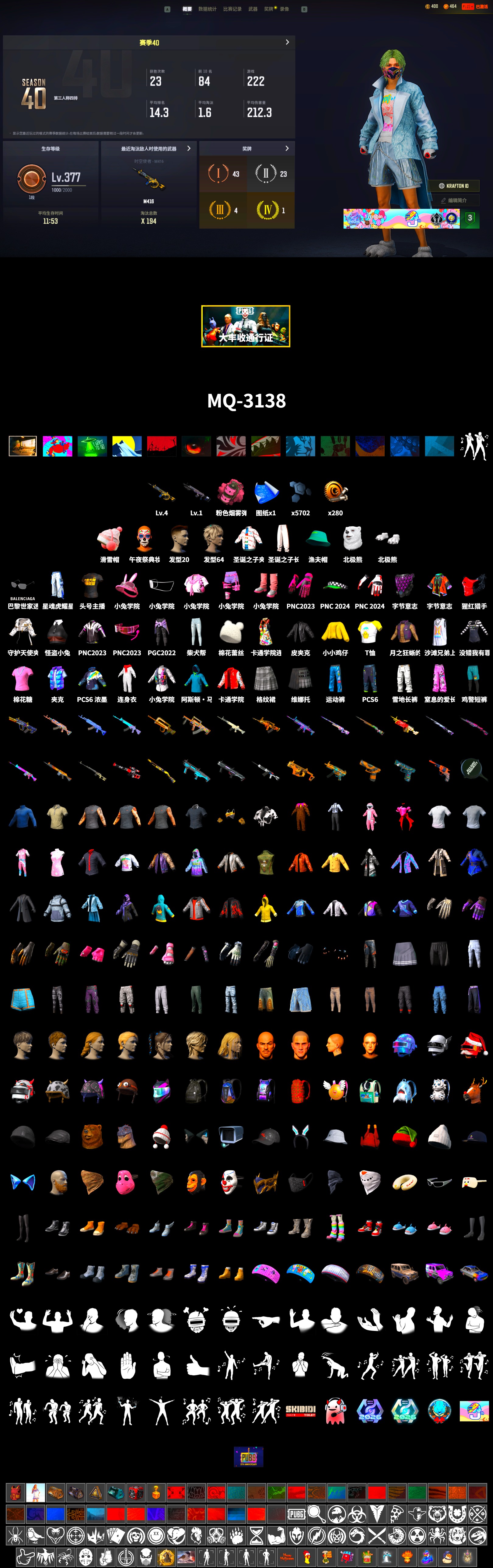 ❤找回包赔❤皮肤:4级时空使者M4 1级暗影之主Mk12 信誉等级三 1张图纸 5702聚合物 午夜祭典妆容 白熊鞋 滑雪帽 杂技熊头套 杂技熊玩偶服 北极熊头套 北极熊连身衣 赛博小兔发带 杂技熊脚套 发型24 青海摇 火鸡帽子 非鸡连帽卫衣 星魂虎虎生威背包(3级) 星魂虎耀星辉工装裤 银色美人飞行员夹克 卡通学院夹克 零度机能风 闪亮运动裤 战术科技裤 鸡斯卡 棉花糖T恤 柴犬帮 维娜托短裙 缤纷混沌连帽卫衣 棉花蕾丝绒 绒汪汪 紫喵喵手套 奶牛印花绑结式上衣(黑色) 鸡警 鸡警短裤 头号主播 OGBG 纹身 晚餐幻象纹身 小恶魔纹身 群雄逐鹿 金墨点染 开拓者墨镜 开拓者手套 强袭者夹克 萨莉2级包 小兔学院 降落伞 兔兔也朋克腿套 敏蒂的上衣 曼蒂的发箍 山花烂漫 - Beryl M762 西游记 分形碎片 - ACE32 疯狂收割者 - SCAR-L 双色 - Mk47 Mutant 分形碎片 - Mk47 Mutant 山花烂漫 - Groza 雪花 - K2 魔力宝贝 - SLR 斑点狗 - VSS PNC 2023 完美角度 - Kar98k 鲜花之力 - AWM 疯狂收割者 - M24 疯狂收割者 - MP5K 精工美术 - 汤姆逊冲锋枪 圣诞猎手 - M249 双色 - DBS 镀金 - 锯短型霰弹枪 灵长类 - S1897 水手 - R1895 水手 - P18C 圣诞之力 - P18C 甜蜜外衣 - 十字弩 小兔学院水手服手套 队长的迷彩手套 月之狂蜥的手套 骷髅脸特技手套 窒息的爱袖套 甜蜜梦境手套 PNC 2024 手套(红色) 无重力轻型手套 技工墨镜(白色) 午餐肉 青年谢尔盖 冬眠后的胡子 发型39 发型53 青年谢尔盖的发型 发型20 发型64 法兰绒小熊背包(3级) 破碎硬壳背包(1级) 恐龙乐园 “卡蜜” 面具 月之狂蜥的头套 圣诞马脸面具 黑猩猩头套 阿斯顿·马丁渔夫帽 准备就绪鸭舌帽 艾法因耐磨针织帽 报童帽(黑色) 垂钓大师渔夫帽 PNC 2024 高尔夫球帽 准备就绪口罩 PGC 2023 帝皇的荆棘面具 队长的迷彩面巾 猩红猎手面具 幸运怪盗面具 针织面罩 字节意志面具 飞行员皮夹克(黑色) 准备就绪夹克 破裂棱镜夹克 青年谢尔盖的皮夹克 PCS5 清场能手夹克 怪盗小兔上衣 月之狂蜥的上身 没错我有罪上衣 阿斯顿·马丁夹克 PCS6 浓墨重彩夹克 赫尔墨斯之翼夹克 小小鸡仔外套 可爱喵喵旗袍 长袖高领毛衣 (深蓝色) 字节意志夹克 拉万的衬衫 模范生上衣 守护天使夹克 拉拉队上衣 高尔夫马球衫 小小鸡仔T恤 沙滩兄弟上衣 幸运怪盗服饰 生存者车手马甲 T 恤 (白色) T 恤 (灰色) PGC 2023 女皇的外套 卡通学院连身衣 火力四射夹克 朋克摇滚长裤 月之狂蜥的长裤 午餐肉的短裤 赫尔墨斯之翼长裤 PNC 2022 连战连捷长裤 准备就绪长裤 PCS6 浓墨重彩长裤 阿斯顿·马丁运动长裤 窒息的爱长裤 雪地长裤(白色) 战斗裤 (棕色) 战斗裤 (卡其色) 小小鸡仔短裤 传奇队篮球裤 拉拉队条纹短裙 格纹裙(法兰绒灰) 卡通学院运动鞋 赫尔墨斯之翼运动鞋 暗影帆布鞋 准备就绪运动鞋 高帮运动鞋 暗影运动鞋(粉红色) 迷雾追踪者运动鞋 萌虎下山帆布鞋 烤鸡节耐用短靴 丝袜与校园风鞋子(黑色) 野猫运动鞋 孤狼生存者 “PCS3 烙印”乌阿斯吉普车 “间谍软件” 乌阿斯吉普车 “彩虹四溢” 达西亚轿车 锈红防弹衣(3级) 胜利之舞111 PNC 2023之舞 - 熄灯 胜利之舞132 终极撒娇 胜利之舞31 胜利之舞53 嫉妒 棒棒哒 挑衅 投降 不耐烦 谢谢 停止! 抖缩 巨熊爪击 庆祝 哭 踢 笑 愤怒 同意 大厅姿势3 反对 你好 大厅姿势2 大厅姿势1 走吧! 你完蛋了 耸肩 过来 鼓掌 大厅姿势4 维寒迪的小鸟 粉梦长眠 - 头盔(2级) 奶牛印花 - 头盔(2级) 沙滩狂战士 - 头盔(3级) 圣诞型男 - 头盔(3级) 迪厅镜面球 - 头盔(3级) 赫尔墨斯之翼 - 头盔(3级) 王牌登场 包装狗狗背包(3级) 潇洒搁浅套装 太空小动物降落伞 发型70 粉鲨宝宝连身睡衣 蓝鲨宝宝睡拖 胜利之舞137 圣诞之子夹克 粉鲨宝宝睡拖 圣诞之子针织帽 圣诞之子长裤 蓝鲨宝宝背包(2级)
