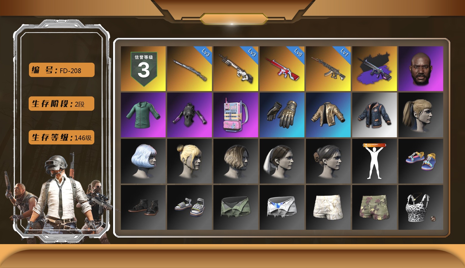 6级无信号M4 3级猛虎98k 3级赛博MK12 1级妖魔之触ACE 无信号M4(异色) 黑鬼 活动绿东 发光手臂 电磁背包 拉风龙 小马尾 丸子头 小兔学院 枪炮洗礼