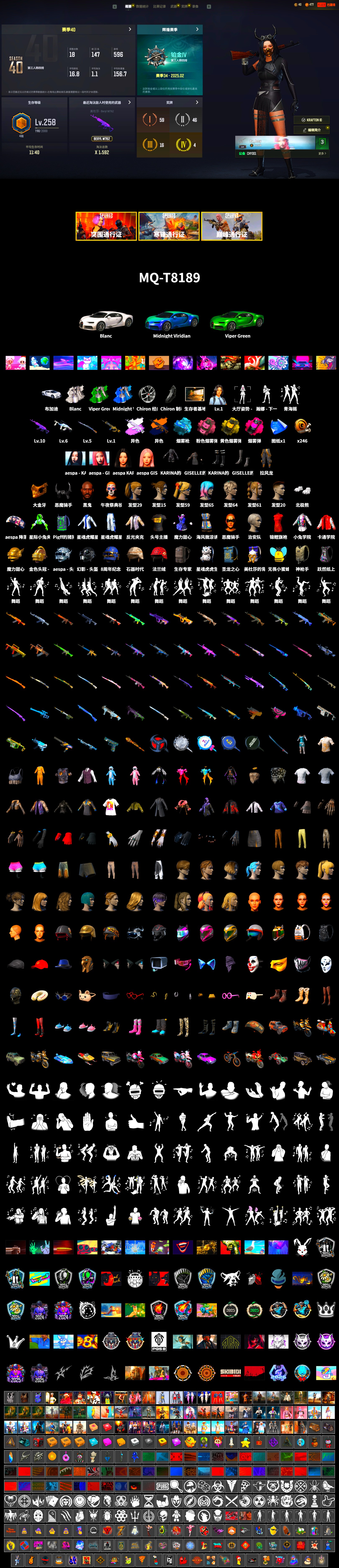 ❤找回包赔❤皮肤:10级美杜莎762 6级冰域Groza 5级猛虎98k 1级瀚娜 1级时空使者M4 美杜莎(白异色) 美杜莎(黑异色) 品红色烟雾弹 蓝色魔法迷雾-M79 布加迪跑车 信誉等级三 1张图纸 黑鬼 金面 牛角 午夜祭典妆容 白熊鞋 aespa女团 拉风龙 小马尾 塞伯鲁斯 发型21 发型61 脏辫 类星之王 青海摇 暴躁花生墨镜 星魂虎虎生威背包(3级) 星魂虎耀星辉面具 星魂虎耀星辉瑜伽上衣 星魂虎耀星辉工装裤 电波干扰背包 卡通学院夹克 零度机能风 小可爱睡衣 小队队长 美杜莎上衣 美杜莎裤子 绒汪汪 先驱战队 先驱战队 头号主播 开拓者墨镜 萨莉的礼服 萨莉的皮鞋 萨莉2级头 萨莉3级头 小兔航天局 小兔学院 敏蒂的手套 敏蒂的发箍 敏蒂的上衣 敏蒂的短裤 敏蒂的短靴 曼蒂的手套 曼蒂的发箍 发型60 发型59 曼蒂的上衣 曼蒂的短裤 曼蒂的短靴 神秘女巫 aespa - 平底锅 aespa - 头盔(3级) aespa - 头盔(2级) 晚秋-M416 柠檬汁 - M416 刘知珉 内永枝利 爱之小鸡 舞蹈派对! 维京先遣队 战场恶犬 节日装饰 大猫狂怒 回归 让子弹飞 复古兜风 把钱交出来 PUBG x NewJeans 女巫的黑暗仪式 迪斯科舞会 兔兔吹泡泡 花开 恶魔的微笑 起起伏伏,眉头紧蹙 双狼成行 月球漫步者 凯尔特结 - Beryl M762 魔女之力 - Beryl M762 礼物环绕 - Beryl M762 多彩科技猫 - AUG 霓虹之星 - SCAR-L 鸡斯卡 - SCAR-L 蔚蓝挑战者 - SCAR-L 疯狂收割者 - SCAR-L 皇家舰队 - M16A4 圆点猎手 - M16A4 灵魂枷锁 - Mk47 Mutant 分形碎片 - Mk47 Mutant 水手 - G36C 铜色猎手 - Groza 镀金 - Groza 无拘来世 - K2 PGC 2022 王牌登场 - SLR 水手 - SLR 赛季35竞技黄金 - Lynx AMR 镀金 - SKS 夏日冲浪 - Mini14 红桃同花 - Mk12 海洋哑光(蓝色) - VSS 璀璨星光 - QBU 魔力甜心萨莉的永恒挚友 - 德拉贡诺夫 睡衣派对保护者 - 德拉贡诺夫 粗糙 (橙色) - Kar98k 悠扬情歌 - Kar98k 猪八戒 - AWM 鲜花之力 - AWM 魔女之力 - AWM 无拘来世 - 莫辛纳甘步枪 Starstruck - MP5K 标准猎手 - UMP 镀银 - UMP 银河武装 - MP9 翡翠之刃 - Vector 灵魂枷锁 - Vector 水手 - Micro UZI 锁链帮 - Micro UZI 灰色系 - DBS 幽灵之握 - DBS 镀金 - 锯短型霰弹枪 波涛荡漾 - S12K 无尽迷宫 - S12K 圆点猎手 - S12K 淡雅之力 - S1897 圣诞之力 - P18C 暗黑断罪之剑 7周年快乐 - 平底锅 切割狂潮 - 平底锅 8th Anniversary - Pan 铁血警官的手套 朱莉的褐湾手套 都市耀光戒指 狂野姿态手镯套组 漫步沙滩手环 红桃皇后墨镜 冰雪女王护目镜 恶魔骑手妆容 小红帽的伤痕 美人鱼妆容 暗夜兔女郎妆容 发型67 发型65 发型18 发型14 美人鱼发型 发型58 发型30 治安队发型 聚星女士的发型 发型45 发型42 发型20 发型64 Hairstyle 81 生存专家背包(3级) 圣龙之心背包(2级) 跃然纸上背包(1级) 维寒迪雪上运动背包(1级) 神枪手背包(1级) 金色头冠 - 头盔(3级) 做牌大师 - 头盔(2级) 石器时代 - 头盔(2级) 节日法兰绒 - 头盔(2级) 维寒迪雪上运动 - 头盔(1级) 海湾救生员鸭舌帽 报童帽(黑色) 春之月夜费多拉帽 法老守护者面具 PGC 2023 女皇的金色面具 暗夜猎手面巾 朋克预备生口罩 幸运怪盗面具 小可爱睡眠眼罩 狂野姿态上衣 炫酷反光夹克 锦鲤旗袍 锦鲤唐装 朱莉的潜行者夹克 月之影背心 冰雪女王夹克 不毛之地上衣 海风微凉诱人内衣 守墓者西服 冰雪女王服饰 T 恤 (白色) T 恤 (灰色) 雪片马甲 月光游牧者夹克 火力四射夹克 绒汪汪长裤 锦鲤丝袜配高跟鞋 使徒长裤 战斗裤 (棕色) 战斗裤 (卡其色) 皇室双腰带铅笔裙 高帮运动鞋 军用靴子 冰雪女王长靴 孤狼生存者 “专业守卫” 乌阿斯吉普车 “公路战士” 恣马 “界限粉碎者” 恣马 "Sisters of Sorcery" Dacia “金色烈焰” 达西亚轿车 PCS4 “黄金气魄” 摩托车 顶级机密 “凤皇来仪” 摩托车 “怪盗小兔” 摩托车 “缝缝补补” 小型摩托车 "Cheers on Wheels" Mountain Bike “雪橇骑手” 雪地摩托 小心搬运 “海洋幻想” 摩托艇 “绝尘时刻” 库佩RB “锈色反叛者” 摩托车 “炼狱之角” 双人越野车 PCS5 清场能手防弹衣(1级) 高压防弹衣(2级) 海岸突击队防弹衣(3级) 想尝一口吗? 尴尬的提问 胜利之舞153 冷静下来 大厅姿势 - 瀚娜 瀚娜 - 下一个是谁? 胜利之舞72 胜利之舞48 胜利之舞41 胜利之舞69 PNC 2022之舞 - 冠军之争 胜利之舞118 胜利之舞62 胜利之舞 - 7周年纪念 胜利之舞56 胜利之舞38 胜利之舞132 胜利之舞134 胜利之舞144 胜利之舞145 Victory Dance - 8th Anniversary 胜利之舞147 胜利之舞149 胜利之舞150 胜利渴望 胜利之舞22 胜利之舞136 蹲蹲扭扭 先别动手! 优雅鞠躬 十分满分的十分 胜利属于维京人! 来杯茶? 胜利之舞80 胜利之舞44 胜利之舞19 胜利之舞74 午安杀法·返 胜利之舞36 特殊问候 宇宙守护者姿势2 零分 哥特舞步 胜利的欢呼 嫉妒 棒棒哒 挑衅 投降 不耐烦 我做了什么 谢谢 停止! 抖缩 庆祝 哭 踢 笑 愤怒 同意 大厅姿势5 大厅姿势6 大厅姿势3 反对 你好 大厅姿势2 大厅姿势1 走吧! 你完蛋了 Why I Oughta… 耸肩 过来 鼓掌 大厅姿势4 看看我找到了什么 功夫大师 气体泄漏 总体计划制定中... 蒸汽朋克:开火 雪景球 海鸥的小酌 喂我你的灵魂吧 海妖之怒 枪管齐鸣 双枪 硝烟 祝你好运 7周年快乐 - 头盔(1级) Carbon Fiber Commando - Helmet (Level 2) 颤音战士 8th Anniversary - Helmet (Level 3) 无畏小蜜蜂 美杜莎背包 太阳之子降落伞 小兔学院生化服套装 炫酷服饰套装 条纹生存者套装 带刺芬芳套装 牛年服饰套装 2 角鲨队吉祥物套装 夏日趣味套装 雪人套装 圣诞派对