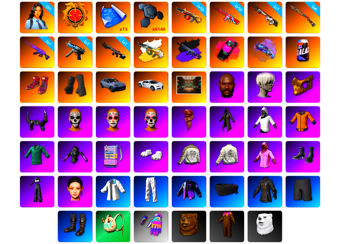 蜗牛币 图纸 聚合物 生存2阶段 10级霓虹AUG 3级美杜莎762 1级赛博MK12 1级无信号M4 1级弥诺陶洛斯AUG 1级刻耳柏洛斯M249 无信号M4(异色) 弥诺陶洛斯AUG(异色) 2级塞壬平底锅 塞壬 - 平底锅(异色) 胜利密室 黑鬼 金面 拉风龙 小兔学院