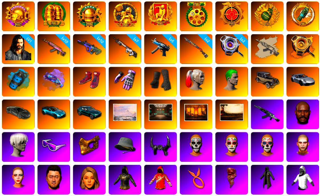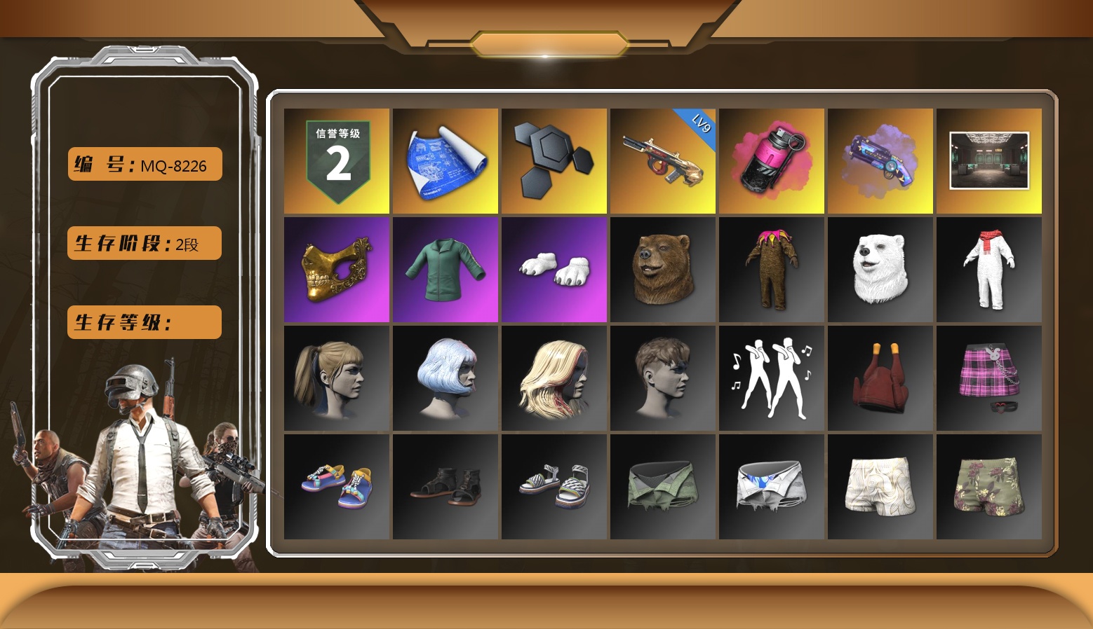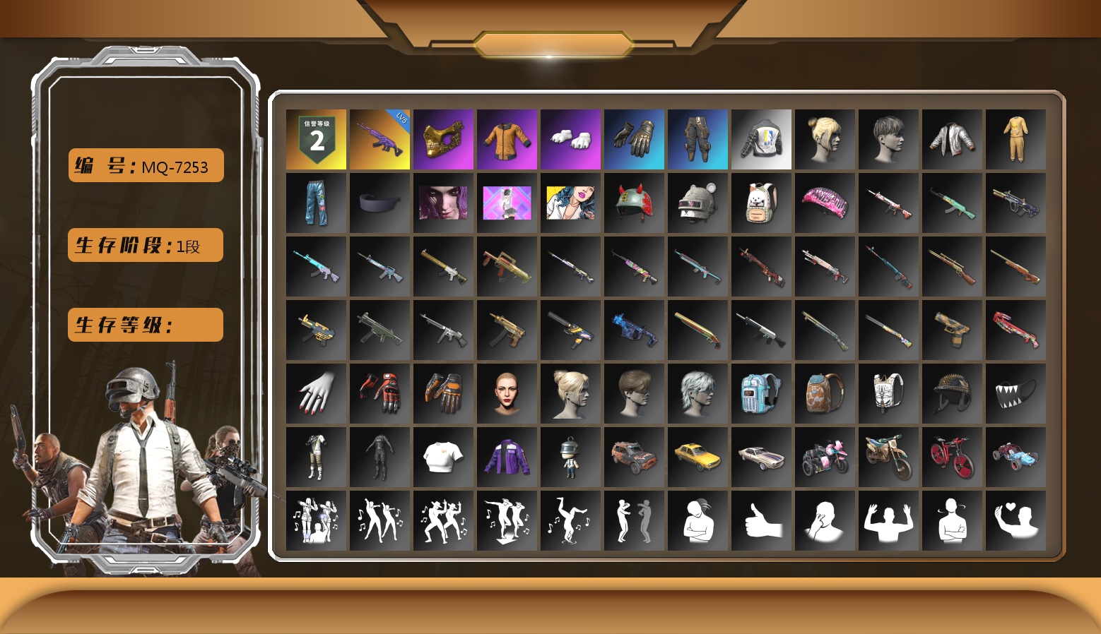 10级火麒麟 10级霓虹AUG 8级朱雀M4 7级齿轮炮 7级赛博MK12 2级彩虹M24 2级白虎锅 1级圣诞mini 1级恶魔ACE 1级午夜惊魂98K 1级无重力MP5K 1级刻耳柏洛斯M249 1级时光加农SKS 1级妖魔之触ACE 1级烈日灼烧-S1897 珊瑚色烟雾弹 品红色烟雾弹 深红狂怒之雾-M79 柏林鞋 小丑男 迈凯伦硅质白版 马丁SUV 1张图纸 2070聚合物 丑男妆容 马东锡 内马尔 牛角 金面 滑雪镜 橙色发带 红面巾 黑大衣 白战神 小战神 黄东 活动绿东 发光手臂 白熊鞋 粉战神 滑雪帽 拉风龙 车漆 小马尾 小绿头 丸子头 西游记 脏辫 青海摇 小兔学院 悲喜