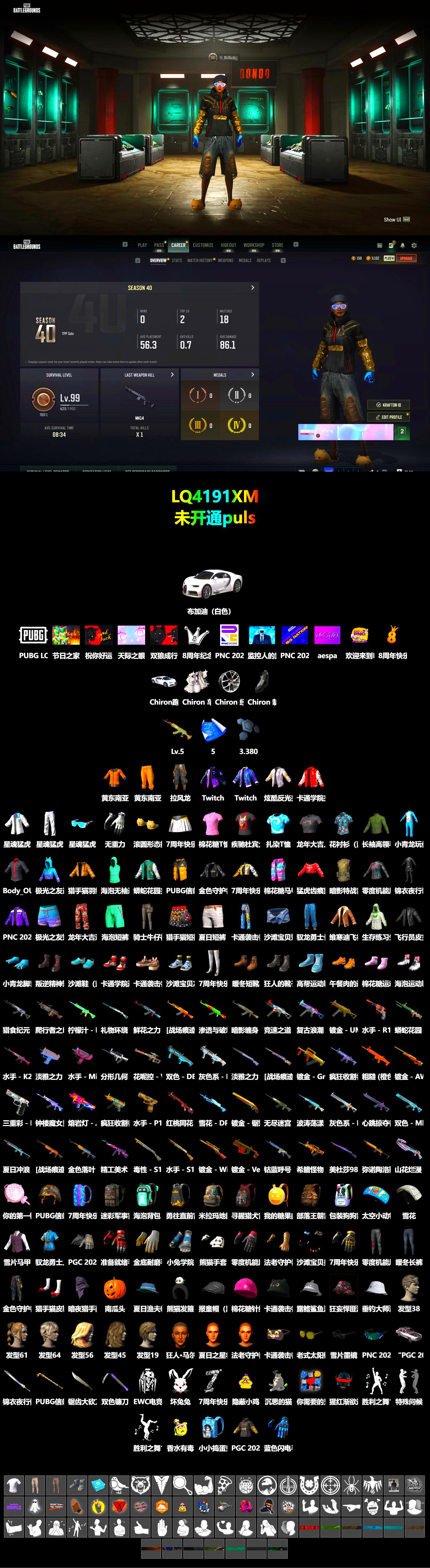 ❤找回包赔❤皮肤:免费版 5级水麒麟 布加迪跑车 信誉等级二 5张图纸 3380聚合物 黄东 星魂猛虎下山运动夹克 星魂猛虎下山运动裤 飞行员夹克 拉风龙 发型56 发型61 车漆 Body_OU_04 星魂猛虎下山滑雪镜 卡通学院夹克 工作裤 猎手猫夹克 猎手猫短裙 猎手猫皮鞋 棉花糖帽子 棉花糖马甲 棉花糖T恤 棉花糖鞋 极光之友 极光之友 小青龙玩偶服 小青龙脚套 Twitch Rivals 复古飞行员夹克 柠檬汁 - M416 天际之眼 双狼成行 猎食纪元 - Beryl M762 绷带AK [战场痕迹] 孙悟空 - AKM 鲜花之力 - AKM 渗透与破坏 - AKM 钟楼魔女贝拉 - ACE32 疯狂收割者 - SCAR-L 粗糙 (橙色) - SCAR-L 分形几何 - QBZ 双色 - Mk47 Mutant 心跳掠夺者 - Mk47 Mutant 灰色系 - Mk47 Mutant 镀金 - Groza 水手 - K2 钴蓝呼号 - SLR 金色落叶 - SKS [战场痕迹] 剧变熔岩 - SKS 夏日冲浪 - Mini14 红桃同花 - Mk12 花呢控 - VSS 蟒蛇花园 - QBU 镀金 - Win94 礼物环绕 - Kar98k 镀金 - AWM [战场痕迹] 湮灭 - M24 疯狂收割者 - MP5K 镀金 - UMP 复古浪潮 - UMP 竞速之道 - UMP 熔岩灯 - JS9 精工美术 - 汤姆逊冲锋枪 镀金 - Vector 水手 - Micro UZI 淡雅之力 - Micro UZI 爬行者之印 - M249 雪花 - DP-28 双色 - DBS 灰色系 - DBS 镀金 - 锯短型霰弹枪 无尽迷宫 - S12K 波涛荡漾 - S12K 水手 - S1897 毒性 - S1897 淡雅之力 - S686 三重彩 - P92 水手 - R1895 水手 - P18C 锦衣夜行佩刀 锯齿大砍刀 PUBG信条钢管 双色镰刀 山花烂漫 - 十字弩 你的第一锅 - 平底锅 7周年快乐手套 沙滩宝贝美甲配手环 小兔学院水手服手套 准备就绪手套 零度机能风摩托车手手套 熊猫手套 法老守护者手套 蓝色闪电手套 金底耐磨手套 无重力轻型手套 PGC 2024 手套 雪片墨镜 老式太阳镜 PNC 2024 生存者护目镜 夏日之星妆容 狂人·马尔霍特拉 法老守护者妆容 发型19 发型38 发型45 发型64 海泡背包(3级) 迷彩军事背包(3级) 小小捣蛋鬼背包(3级) 寻腥猎犬背包(2级) 米拉玛地图背包(2级) 部落王朝背包(2级) 勇往直前背包(1级) PUBG信条 - 头盔(2级) 南瓜头 夏日渔夫帽(蓝绿色) 卡通袭击者针织帽 报童帽(黑色) 熊猫发箍 垂钓大师渔夫帽 露鳍鲨鱼渔夫帽 Brazen Bandit Bucket Hat 暗夜猎手面巾 卡通袭击者眼罩 炫酷反光夹克 维寒迪飞行夹克 飞行员皮夹克(黑色) 蟒蛇花园夹克 猛虎齿痕露脐上衣 花衬衫(蓝绿色) 夏日短裤(灰色) 零度机能风摩托车手夹克 海泡无袖连帽卫衣 生存练习生连帽卫衣 疾驰杜宾犬T恤 暗影特战背心 PUBG信条马甲 7周年快乐夹克 驭龙勇士上衣 长袖高领毛衣(海草绿) T 恤 (白色) 龙年大吉上衣 雪片马甲 锦衣夜行装束 金色守护者皮夹克 PNC 2025 夹克 PGC 2025 Windbreaker 暖冬长裤 龙年大吉迷彩长裤 卡通袭击者牛仔裤 零度机能风摩托车手长裤 骑士牛仔裤 驭龙勇士长裤 战斗裤 (棕色) 战斗裤 (卡其色) 海泡短裤 7周年快乐短裙 沙滩宝贝短裤 金色守护者战斗长裤 午餐肉的运动鞋 卡通学院运动鞋 沙滩鞋(蓝绿色) 叛逆精神短靴 高帮运动鞋 狂人的靴子 沙滩宝贝凉鞋 暖冬短靴 卡通袭击者步鞋 高帮运动鞋 (蓝色) 海泡运动鞋 7周年快乐长靴 滚圆形态拖鞋 孤狼生存者 “PGC 2019” 达西亚轿车 胜利之舞136 胜利之舞100 特殊问候 嫉妒 棒棒哒 挑衅 投降 不耐烦 谢谢 停止! 抖缩 庆祝 哭 踢 愤怒 同意 反对 你好 走吧! 你完蛋了 耸肩 过来 鼓掌 节日之家 祝你好运 我的糖果曲奇背包(2级) 包装狗狗背包(2级) 7周年快乐背包(3级) 雪花 四条A 扎染T恤 化学战 红色预警 太空小动物降落伞