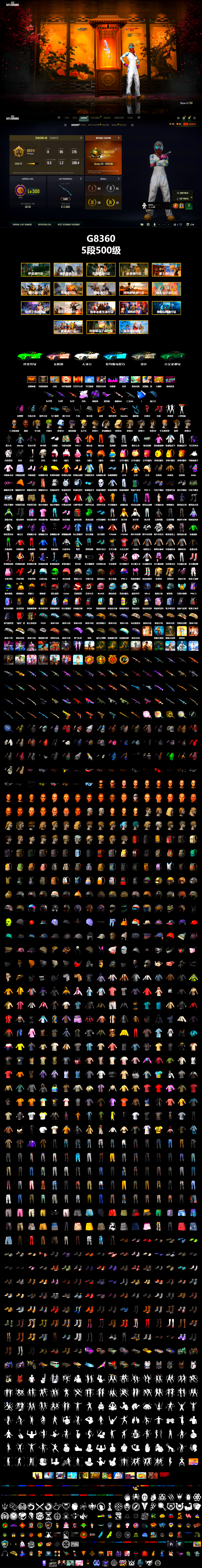 编号G8360皮肤:收割者金标 猎手金 神枪手金 震惊金 10级霓虹AUG 9级美杜莎762 3级南瓜M4 美杜莎(白异色) 紫色烟雾弹 张图纸 柏林鞋 迈阿密 小兔手套 蛋黄手套 逃亡SUV 马丁敞篷跑车 交易所接待室 武器神龛 粉猪M4 亡灵AK 黑鬼 滑雪镜 金面 渔夫帽 牛角 康萨斯 亡灵律动妆容 橙色发带 红面巾 黑大衣 小战神 发光手臂 萨芬裤 白熊鞋 马赛克短裤 PGI 2018 "Savage Esports" 连帽卫衣 橙运动 监狱服 渐变装 粉战神 星魂猛虎下山运动夹克 星魂猛虎下山运动裤 飞行员夹克 白虎背包 尼尔 布朗熊 可妮兔毛衣 拉风龙 Aixleft (奢华版)科米特绿 车漆 Number 小马尾 小绿头 发型43 塞伯鲁斯 丸子头 发型21 萨迪娅的头纱 发型56 发型61 发型41 发型40 牛头怪发型 脏辫 发型24 魔王伞 青海摇 人型看板 暴躁花生墨镜 暴躁花生针织帽 暴躁花生运动鞋 暴躁花生长裤 星魂虎虎生威背包(3级) 星魂虎虎生威背包(2级) 星魂虎虎生威背包(1级) 星魂猛虎下山滑雪镜 星魂虎耀星辉面具 星魂虎耀星辉瑜伽上衣 星魂虎耀星辉工装裤 电波干扰背包 PNC 2025 全力出击运动鞋 日光下澈凉鞋 丝滑夏日凉鞋 漫步沙滩凉鞋 日光下澈丛林短裤 日光下澈热带短裤 丝滑夏日短裤(白色) 丝滑夏日短裤(橄榄绿) 漫步沙滩连衣裙(棕色) 漫步沙滩连衣裙(蓝色) 小黑盒连帽卫衣 卡通学院夹克 4周年纪念小队标签连帽卫衣 3周年纪念连帽卫衣 小可爱睡衣 斑斓危机 闪亮运动裤 紫色运动裤 三色猫连身衣 钟楼魔女 银河系女孩 银河系女孩 星际小兔 绒毛伙伴 棉花糖马甲 棉花糖T恤 棉花糖短裤 棉花糖鞋 蓄势待发 恐龙乐园 小青龙脚套 帝王蝶裤子 柴犬帮 柴犬帮 柴犬帮 兄弟同盟 兄弟同盟 磨损牛仔裤 缤纷混沌连帽卫衣 棉花蕾丝连衣裙 绒汪汪 紫喵喵手套 紫喵喵卫衣 紫喵喵长裤 紫喵喵短靴 复古重燃开襟衬衫 复古重燃 亮片炫彩 17GAMING 夹克 17GAMING 长裤 奶牛印花绑结式上衣(棕色) 奶牛印花绑结式上衣(黑色) 奶牛印花毛皮大衣(黑色) 维寒迪雪上运动夹克 维寒迪长裤 先驱战队 先驱战队 先驱战队 先驱战队 先驱战队 先驱战队 白虎夹克 鸡警 鸡警短裤 薄荷巧克力 头号主播 大吉大利T恤(红色) OGBG 纹身 泡吧达人 晚餐幻象纹身 小恶魔纹身 蜘蛛纹身 金墨点染 萨莉的皮鞋 萨莉的礼服 萨莉的长靴 萨莉的礼服 萨莉的皮鞋 萨莉2级头 探月者 小兔学院 兔兔也朋克发箍 兔兔也朋克腿套 发型60 发型59 悲喜 白虎 守护兽的凝视 万圣节大奖 节日装饰 把钱交出来 均衡器 花开 双龙出海 亲爱的,看锅! 大爆炸 游戏结束 白虎头盔 PNC 2025 003 - 头盔(3级) PNC 2025 全力出击 - 头盔(2级) 潜水教练 - 头盔(3级) 蜂刺甜心 鸡斯卡 - 头盔(1级) 猫咪挠 - 头盔(1级) 深红战警 - 头盔(1级) Carbon Fiber Commando - Helmet (Level 2) 颤音战士 群星之力 - 头盔(2级) 夹心软糖 - 头盔(2级) 角上有血 守望之龙 - 头盔(3级) 圣诞型男 - 头盔(3级) 百变小丑 - 头盔(3级) BLACKPINK - 头盔(3级) 数位传送 - 头盔(3级) 青龙3级头 疯狂科学 - 头盔(3级) 8th Anniversary - Helmet (Level 3) 炼狱之角 波普风 - 头盔(3级) 无畏小蜜蜂 PNC 2025 全力出击背包(2级) 来自乐园的问候背包(3级) 玄武背包 我的糖果曲奇背包(2级) 柴犬帮背包(2级) 甜蜜梦境背包(2级) 复古重燃背包(2级) 小兔航空航天局背包(2级) PCS5 大巧不工背包(2级) 重返校园背包(2级) 传奇高手旅行背包(3级) 甜蜜梦境背包(3级) 青龙背包 美杜莎背包 柯基帮背包(3级) 柴犬帮背包(3级) 线索与证据背包(2级) 炼狱之角背包(2级) 夏日露营背包(1级) “血包”背包(3级) 废土拾荒者背包(3级) PCS5 降落伞 赛季16竞技降落伞 赛季12竞技降落伞 赛季24竞技降落伞 赛季19竞技降落伞 金色鸡斯卡降落伞 赛季25竞技降落伞 赛季14竞技降落伞 瓦尔基里女王降落伞 赛季22竞技降落伞 赛季27竞技降落伞 赛季23竞技降落伞 烈焰吐息降落伞 赛季18竞技降落伞 赛季17竞技降落伞 赛季26竞技降落伞 赛季13竞技降落伞 银兔猎手降落伞 3周年纪念降落伞 赛季15竞技降落伞 紫气东来 雪花 蒸汽之翼降落伞 妖魔横行降落伞 乐园的问候 赛季38竞技降落伞 危险勿近套装 学院派套装 运动风套装 咆哮之力街头风套装 蓄势待发套装 龙之女皇套装 优雅夏日连衫裤套装 怨恨小姐套装 神射手套装 MINX MANDY SET 聚星女士套装 寰宇侠套装 疯狂科学套装 EL POZO 客场队服套装 EL POZO 主场队服套装 缤纷混沌套装 小兔航空航天局套装(粉) 皇室套装 朱莉的夹克套装 VTR 活跃者套装 午餐肉的帕拉莫连帽卫衣套装 马尔霍特拉的夜行套装 萨迪娅的战斗服套装 午餐肉的褐湾套装 圣诞型男套装 无重力重型套装 圣诞之子套装 晚秋-M416 数码丛林迷彩 - M416 灵魂枷锁 - AKM 银河武装 - AKM PGC 2019 - AKM 粗糙 (橙色) - AKM 镀银 - AUG 金色续响 - AUG 钟楼魔女贝拉 - ACE32 分形碎片 - ACE32 [战场痕迹] 青龙之灵 - ACE32 霓虹之星 - SCAR-L 第一年纪念 - SCAR-L [战场痕迹] PNC 2025 全力出击 - SCAR-L PGC 2019 - SCAR-L 孟加拉刀 - SCAR-L 圆点猎手 - M16A4 [战场痕迹] 猩红时刻 - M16A4 灵魂枷锁 - Mk47 Mutant 分形碎片 - Mk47 Mutant 金色落叶 - Mk47 Mutant 水手 - G36C PGC 2022 王牌登场 - Groza 圆点猎手 - K2 无慈悲 - K2 [战场痕迹] 漫彩四溢 - SLR Swagger 的SLR 灾厄使徒 - SLR 魔力宝贝 - SLR 银河武装 - SKS 镀金 - SKS PGC 2023 皇冠宝石 - Mk12 热浪 - Mk12 雪国风光 - Mk14 海洋哑光(蓝色) - VSS 霜寒 - VSS 璀璨星光 - QBU 魔力甜心萨莉的永恒挚友 - 德拉贡诺夫 粗糙 (橙色) - K