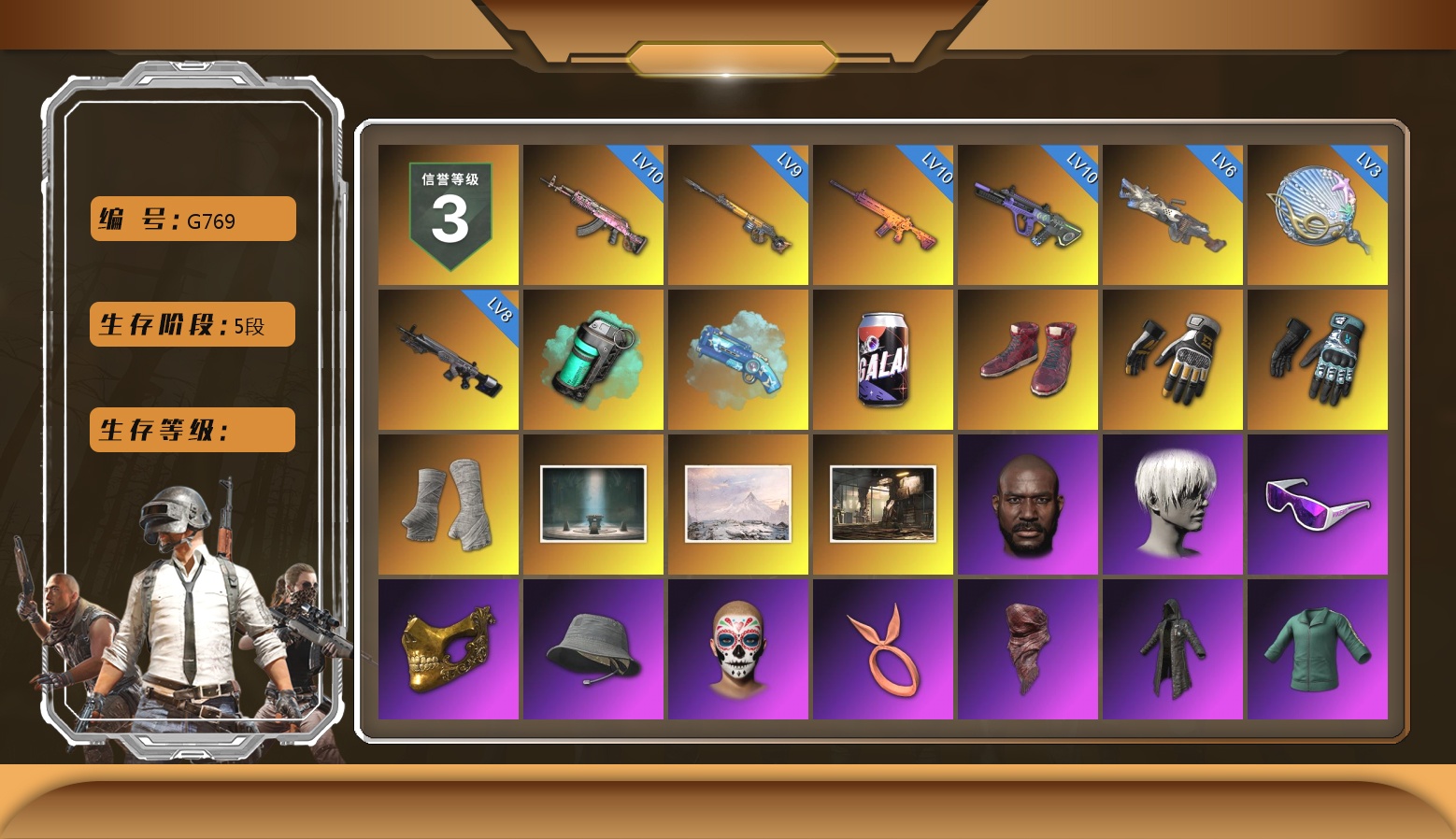 ❤找回包赔❤皮肤:10级火麒麟 10级南瓜M4 10级霓虹AUG 9级齿轮炮 8级暗影之主Mk12 6级刻耳柏洛斯M249 3级塞壬平底锅 青色烟雾弹 蓝色魔法迷雾-M79 劲爆蓝莓 柏林鞋 金手指 小兔手套 白绷带 胜利密室 冬季藏匿处 荒凉仓库 信誉等级三 黑鬼 9s发型 滑雪镜 金面 渔夫帽 午夜祭典妆容 橙色发带 红面巾 黑大衣 活动绿东 发光手臂 竞猜裤 萨芬裤 白熊鞋 DANIELLE 粉战神 DANIELLE DANIELLE 女团MK 降落伞 PUBG 5周年纪念发箍 滑雪帽 星魂猛虎下山运动夹克 星魂猛虎下山运动裤 飞行员夹克 白虎背包 尼尔 布朗熊 可妮兔毛衣 拉风龙 NPL夹克 PKL夹克 运动裤 杂技熊脚套 G-DRAGON 小马尾 小绿头 发型43 粉头 丸子头 发型21 西游记 发型56 发型61 发型41 发型35 发型51 脏辫 发型48 爱的主打歌 青海摇 人型看板 火鸡帽子 非鸡连帽卫衣 精致长裤 暴躁花生墨镜 G-DRAGON 的舞台墨镜 暴躁花生针织帽 G-DRAGON 的舞台王冠 暴躁花生运动鞋 G-DRAGON 的 PEACEMINUSONE 服饰 暴躁花生连帽卫衣 暴躁花生长裤 G-DRAGON 的舞台服 朱芳芳手套 1级包 3级包 电波干扰背包 复古痕迹夹克 卡通学院夹克 零度机能风 4周年纪念小队标签连帽卫衣 3周年纪念连帽卫衣 小可爱睡衣 迷人鲜花泳衣 无重力披风 斑斓危机 紫色运动裤 猎手猫上衣 猎手猫短裙 猎手猫皮鞋 特工小兔手套 特工小兔服饰 特工小兔高跟鞋 棉花糖帽子 棉花糖手套 棉花糖马甲 棉花糖T恤 棉花糖短裤 棉花糖鞋 极光之友 蓄势待发 蓄势待发 恐龙乐园 恐龙乐园 恐龙乐园 恐龙乐园 恐龙乐园 小青龙头套 小青龙玩偶服 小青龙脚套 帝王蝶卫衣 帝王蝶裤子 柴犬帮 宝贝外面冷 速度与愤怒 维娜托短靴 佣兵队制服 欢快麋鹿 欢快麋鹿 轰炸机夹克 棉花蕾丝绒 棉花蕾丝连衣裙 紫喵喵手套 紫喵喵卫衣 紫喵喵长裤 紫喵喵短靴 复古重燃开襟衬衫 复古重燃 亮片炫彩 亮片炫彩长裤 Petrichor Road 夹克 Petrichor Road 长裤 上校的渔夫帽 上校的夹克 维寒迪雪上运动夹克 维寒迪长裤 老奶奶睡裙 先驱战队 先驱战队 先驱战队 先驱战队 先驱战队 先驱战队 先驱战队 先驱战队 先驱战队 先驱战队 先驱战队 先驱战队 先驱战队 先驱战队 先驱战队 白虎夹克 白虎上衣 白虎短裙 鸡警 鸡警短裤 运动外套 (黄色) 沉睡女王 绸缎长袖 绸缎睡裤 光滑丝质睡衣(蓝色) 薄荷巧克力 头号主播 大吉大利T恤(红色) PGI.S OGBG 纹身 泡吧达人 晚餐幻象纹身 小恶魔纹身 蜘蛛纹身 金墨点染 金墨点染 金墨点染 金墨点染 金墨点染 群雄逐鹿 群雄逐鹿 群雄逐鹿 金墨点染 3级包 开拓者墨镜 开拓者手套 开拓者上衣 开拓者长裤 开拓者夹克 强袭者短鞋 强袭者上衣 开拓者短鞋 魔力甜心萨莉的礼服(粉红色) 萨莉的皮鞋 萨莉的礼服 萨莉的长靴 萨莉的礼服 萨莉的皮鞋 萨莉2级头 萨莉2级包 萨莉3级包 小兔航天局 小兔航天局 小兔航天局 小兔航天局 小兔航天局 小兔航天局 小兔航天局 小兔航天局 小兔航天局 小兔航天局 小兔航天局 小兔学院 兔兔也朋克面罩 绒毛小恶魔夹克 兔兔也朋克发箍 哥特上衣 发型60 发型59 曼蒂的短裤 发型28 拉风龙SLR 平底锅 悲喜 晚秋-M416 柠檬汁 - M416 GodV的M416 4周年纪念光谱渐变 - M416 PGC 2021 群雄逐鹿 - M416 PGI.S 洪波涌起 - M416 地狱火 - M416 镀银 - M416 蟒蛇花园 - M416 阵雪 - M416 PNC 2022 连战连捷 - M416 PGC 2019 - M416 橙子的M416 守护兽的凝视 爱之小鸡 舞蹈派对! 齿轮头 - Beryl M762 维京先遣队 万圣节大奖 月下狼嚎 战场恶犬 节日装饰 回归 让子弹飞 战场老兵 隐藏奖励 PGI.S 流光溢彩 - Beryl M762 今夜,将一切带走 流水线 均衡器 花开 双龙出海 PGC 2021 群雄逐鹿 - Beryl M762 大爆炸 起起伏伏,眉头紧蹙 GPT 2024 - Soniqs GPT 2024 - Daytrade Gaming 月球漫步者 宝藏猎人 - Beryl M762 毒性 - Beryl M762 PCS2 金色成就 - Beryl M762 镀金 - Beryl M762 镀银 - Beryl M762 魔力甜心萨莉的挚友 - AKM 绷带AK Petrichor Road - AKM 蟒蛇花园 - AKM 鲜花之力 - AKM 金色落叶 - AKM 银河武装 - AKM 竞速之道 - AKM 渗透与破坏 - AKM 粗糙 (橙色) - AKM 极速 - AKM 奥丁的先锋 - AKM 百变小丑 - AKM 蟒蛇之吻 - AKM 多彩科技猫 - AUG 守望之龙 - AUG 热力收割者 - AUG 分形碎片 - ACE32 窒息的爱 - ACE32 数码雪地迷彩 - SCAR-L 三重彩 - SCAR-L 镀银 - SCAR-L 孟加拉刀 - SCAR-L 蔚蓝挑战者 - SCAR-L 数码雪地迷彩 - M16A4 华夫饼 - M16A4 鳄鱼咬痕 - M16A4 鲨鱼咬痕 - M16A4 银河卫士 - M16A4 冷血 - M16A4 圆点猎手 - M16A4 分秒必争 - QBZ 奥丁的先锋 - Mk47 Mutant 无尽迷宫 - Mk47 Mutant 灵魂枷锁 - Mk47 Mutant 分形碎片 - Mk47 Mutant 金色落叶 - Mk47 Mutant 水手 - G36C GPT 2024 Daytrade Gaming - G36C 分形几何 - G36C 玄武之灵 - Groza 山花烂漫 - Groza 镀金 - Groza PGC 2022 王牌登场 - Groza 方形铬印 - Groza 标准猎手 - Groza 袜中好礼 - K2 淬火真金 - K2 水手 - K2 雪花 - K2 无慈悲 - K2 PCS5 大巧不工 - SLR 青龙之灵 - SLR 加纳多印花 - SLR 毒弹召唤者 - SLR 大理石宝藏 - SLR 唐三藏 - SLR PGC 2022 王牌登场 - SLR 百变小丑 - SLR 水手 - SLR 彩虹之上 - SLR 陈死狗cnh的SLR 曼提柯尔 - SLR 赛季35竞技黄金 - Lynx AMR 圣诞猎手 - SKS 幸运骑士 - SKS 镀金 - SKS 数码丛林迷彩 - SKS 礼品店 - SKS 银河小队 - SKS 极速 - SKS 宝藏猎人 - SKS 奥丁的先锋 - SKS PGI.S 流光溢彩 - Mini14 数码陷阱 - Mini14 复古摇滚 - Mini14 精致阿蒂米斯 - Mini14 威尼斯人 - Mini14 礼物环绕 - Mini14 数码沙漠迷彩 - Mini14 彩虹之上 - Mini14 幽灵之握 - Mk12 彩虹四溢 - Mk12 守望之龙 - Mk12 雪国风光 - Mk1