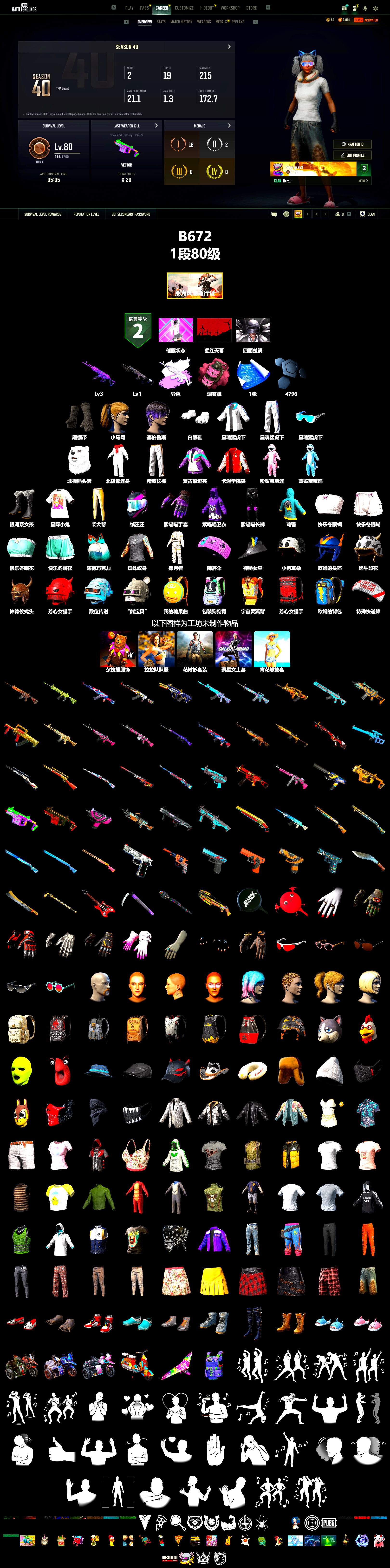 ❤找回包赔❤编号B672皮肤:信誉等级二 3级美杜莎762 1级暗影之主Mk12 美杜莎(异色) 粉色烟雾弹 1张图纸 4796聚合物 黑绷带 白熊鞋 星魂猛虎下山运动夹克 星魂猛虎下山运动裤 北极熊头套 北极熊连身衣 小马尾 塞伯鲁斯 精致长裤 星魂猛虎下山滑雪镜 复古痕迹夹克 卡通学院夹克 粉鲨宝宝连身睡衣 蓝鲨宝宝连身睡衣 银河系女孩 星际小兔 柴犬帮 绒汪汪 紫喵喵手套 紫喵喵卫衣 紫喵喵长裤 鸡警 快乐冬眠蝴蝶结上衣 快乐冬眠蝴蝶结短裤 快乐冬眠花边上衣 快乐冬眠花边短裤 薄荷巧克力 蜘蛛纹身 探月者 降落伞 神秘女巫 催眠状态 奶牛印花 - 头盔(2级) 小狗耳朵 - 头盔(2级) 欧姆的头盔 - 头盔(1级) 林德仪式头盔(1级) 芳心女猎手 - 头盔(3级) 数位传送 - 头盔(3级) “熊宝贝” - 头盔(3级) 我的糖果曲奇背包(2级) 包装狗狗背包(2级) 宇宙灵狐背包(3级) 芳心女猎手背包(3级) 欧姆的背包(3级) 特殊快递降落伞 杂技熊服饰套装 拉拉队队服套装 花衬衫套装 聚星女士套装 青花怒放套装 [战场痕迹] 剧变熔岩 - M416 夏日濒危物种 - M416 银河武装 - AKM 竞速之道 - AKM 西游记 分形碎片 - ACE32 甜蜜外衣 - M16A4 双色 - Mk47 Mutant 水手 - G36C 镀金 - Groza 淬火真金 - K2 水手 - K2 水手 - SLR 灾厄使徒 - SLR 银河武装 - SKS [战场痕迹] 剧变熔岩 - SKS 红桃同花 - Mk12 海洋哑光(蓝色) - VSS 逆袭斗犬 - Win94 镀金 - Win94 无慈悲 - Kar98k 魔女之力 - AWM G-DRAGON - M24 双色 - MP5K 水手 - 汤姆逊冲锋枪 银河武装 - MP9 渗透与破坏 - Vector 镀金 - Vector 水手 - Micro UZI 花呢控 - M249 灾厄使徒 - DBS 双色 - DBS 波涛荡漾 - S12K 水手 - S1897 毒性 - S1897 波涛荡漾 - S686 海洋哑光(蓝色) - S686 华夫饼 - S686 三重彩 - P92 水手 - R1895 钴蓝呼号 - P18C 行动时刻 - P18C 水手 - P18C 圣诞之力 - P18C 廓尔喀弯刀 陶土质感大砍刀 PUBG信条钢管 朋克战斧 双色镰刀 不朽游行 - 铁拳火箭筒 甜蜜外衣 - 十字弩 ALLDAY PROJECT - 平底锅 斯帕奇 - 平底锅 维纳斯俱乐部手部装饰 队长的迷彩手套 准备就绪手套 骷髅脸特技手套 小兔快递配送员手套 疯狂科学手套 林影潜行戒指 牛仔响尾蛇美甲 猎手便装手套 海洋独行侠墨镜 书虫眼镜(粉红色) 飞行员太阳镜(琥珀色) 死亡六进制太阳镜 快乐冬眠墨镜 马蹄铁型小胡子 林影潜行妆容 牛仔响尾蛇纹身 绒毛伙伴妆容 发型65 发型46 发型72 发型73 寒锋背包(3级) 猩红猎手背包(2级) 疯狂科学电波干扰背包 通缉者背包(2级) 小兔航空航天局背包(1级) 勇往直前背包(1级) 暗影之星的背包(1级) PUBG信条 - 头盔(2级) 二哈头套 El Pozo 狂鸡队吉祥物头套 没错我有罪头套 麻辣小龙虾头套 夏日渔夫帽(蓝绿色) 报童帽(黑色) 猩红猎手鸭舌帽 牛仔卷边帽(黑色) 休息鸡脖枕 林影潜行帽子 怪笑针织帽 准备就绪口罩 卡通学院面具 猩红猎手面具 沙暴伪装丝巾 高档夹克 奶牛印花夹克(黑色) 飞行员皮夹克(黑色) 花卉印花轰炸机夹克 优雅夏日连衫裤 花衬衫(蓝绿色) 夏日短裤(灰色) “她的银河”T恤 寻腥猎犬夹克 花卉印花紧身衣 生存练习生连帽卫衣 天生狂野T恤 暗影特战背心 PUBG信条马甲 白色朴素T恤 巴哥生活好T恤 秉烛罪人无袖高领套头衫 小小鸡仔T恤 长袖高领毛衣(海草绿) 麻辣小龙虾玩偶服 二哈玩偶服 生存者车手马甲 El Pozo 狂鸡队吉祥物玩偶服 T 恤 (白色) T 恤 (灰色) 雨中漫步夹克 PGC 2023 女皇的马甲 林影潜行上衣 牛仔响尾蛇上衣 PNC 2025 夹克 肌肉牛仔裤 咆哮之力街头风运动裤 西装裤子(黑色) 突围而出长裤 爪印口袋牛仔裤 慵懒假日长裤 战斗裤 (棕色) 战斗裤 (卡其色) 花卉印花裙 拉拉队裙子 朋克公主短裙 斯科尔短裙 林影潜行短裤 牛仔响尾蛇短裤 斑点狗休闲鞋 二哈脚套 卡通学院运动鞋 沙滩鞋(蓝绿色) 准备就绪运动鞋 高帮运动鞋 胜利收割者长靴 林影潜行短靴 蓝鲨宝宝睡拖 粉鲨宝宝睡拖 “猫咪挠” 摩托车 “加塔尔越野赛”摩托车 “怪盗小兔” 摩托车 “缝缝补补” 小型摩托车 “飞得更高” 动力滑翔机 海岸突击队防弹衣(3级) PGC 2022之舞 - 奋起反击 胜利之舞56 胜利之舞70 胜利之舞142 Victory Dance - 8th Anniversary 胜利之舞149 终极撒娇 爱心连射 我 心 你 来杯茶? 胜利之舞18 三振出局! #1 特殊问候 嫉妒 棒棒哒 投降 不耐烦 谢谢 停止! 抖缩 庆祝 同意 反对 你好 大厅姿势1 你完蛋了 耸肩 过来 胜利之舞170 胜利之舞165 四面楚锅 猩红天幕