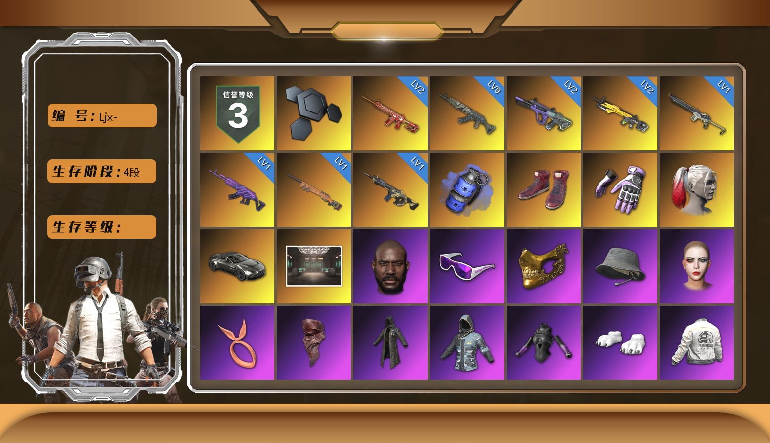 ❤找回包赔❤皮肤:9级青龙762 2级朱雀M4 2级霓虹AUG 2级小兔MK12 1级沙悟净MINI 1级美杜莎762 1级夜曲M24 1级时空使者M4 蓝色烟雾弹 柏林鞋 小黑盒 小丑女 马丁跑车 交易所接待室 信誉等级三 4122聚合物 黑鬼 滑雪镜 金面 渔夫帽 丑女妆容 橙色发带 红面巾 黑大衣 小战神 发光手臂 白熊鞋 PEL夹克 粉战神 飞行员夹克 拉风龙 NPL夹克 PCL夹克 红丝绒兔耳 杂技熊脚套 小马尾 小绿头 发型43 丸子头 发型61 脏辫 精致长裤 小黑盒连帽卫衣 哈莉·奎茵「老爸的小怪物」服饰 卡通学院夹克 零度机能风 迷人鲜花泳衣 闪亮运动裤 战术科技裤 猎手猫夹克 猎手猫上衣 猎手猫短裙 猎手猫皮鞋 小队队长 小队队长 小队队长 银河系女孩 银河系女孩 棉花糖手套 棉花糖马甲 棉花糖T恤 棉花糖短裤 棉花糖鞋 打工小兔面具 柴犬帮 维娜托口罩 缤纷混沌 复古重燃开襟衬衫 复古重燃 亮片炫彩 亮片炫彩长裤 Petrichor Road 夹克 Petrichor Road 长裤 NH-ESPORTS 夹克 NH-ESPORTS 运动长裤 维寒迪雪上运动夹克 维寒迪长裤 先驱战队 先驱战队 先驱战队 先驱战队 先驱战队 先驱战队 先驱战队 先驱战队 先驱战队 先驱战队 先驱战队 先驱战队 先驱战队 先驱战队 先驱战队 鸡警 鸡警短裤 运动外套 (黄色) 沉睡女王 沉睡女王 头号主播 大吉大利T恤(红色) 战术科技夹克 小恶魔纹身 蜘蛛纹身 金墨点染 金墨点染 金墨点染 群雄逐鹿 金墨点染 金墨点染 群雄逐鹿 金墨点染 2级包 强袭者短裤 强袭者短鞋 强袭者上衣 强袭者夹克 开拓者短鞋 萨莉的礼服 萨莉的皮鞋 萨莉2级头 小兔航天局 小兔航天局 小兔航天局 小兔航天局 小兔航天局 探月者 小兔学院 兔兔也朋克面罩 绒毛小恶魔短裙 兔兔也朋克发箍 兔兔也朋克洋裙 兔兔也朋克腿套 哥特长靴 发型60 悲喜 粗糙 (橙色) - M416 PGC 2021 群雄逐鹿 - M416 雪国风光 - M416 数码沙漠迷彩 - M416 爱之小鸡 不朽金箍 舞蹈派对! 霓虹之梦 - AUG 月下狼嚎 节日装饰 手绘的“举起手来” 回归 把钱交出来 隐藏奖励 猛虎 朱莉 均衡器 兔兔吹泡泡 PGC 2022 王牌登场 - Beryl M762 PGC 2021 群雄逐鹿 - Beryl M762 恶魔的微笑 凯尔特结 - Beryl M762 NH-ESPORTS - Beryl M762 毒性 - Beryl M762 鎏金王朝 - Beryl M762 魔女之力 - Beryl M762 Petrichor Road - AKM 标准猎手 - AKM 粗糙 (橙色) - AKM 蟒蛇花园 - AKM 鲜花之力 - AKM 灵魂枷锁 - AKM 大理石宝藏 - AKM 金色落叶 - AKM 彩糖蛋糕 - AUG 多彩科技猫 - AUG 镀银 - AUG Starstruck - ACE32 分形碎片 - ACE32 PNC 2023 完美角度 - ACE32 嘉年华猎手 - ACE32 补丁 - SCAR-L 假日精神 - SCAR-L 三重彩 - SCAR-L 镀银 - SCAR-L 粗糙 (橙色) - SCAR-L 锁链帮 - M16A4 华夫饼 - M16A4 恶战 - M16A4 双色 - M16A4 分形几何 - QBZ 袜中好礼 - QBZ 鎏金王朝 - QBZ 方形铬印 - Mk47 Mutant 无尽迷宫 - Mk47 Mutant 灵魂枷锁 - Mk47 Mutant 奥丁的先锋 - Mk47 Mutant 分形碎片 - Mk47 Mutant 这不是玩具 - Mk47 Mutant 金色落叶 - Mk47 Mutant 钴蓝呼号 - G36C 标准猎手 - G36C 水手 - G36C 铜色猎手 - Groza 快车道 - Groza 玄武之灵 - Groza 救赎之路 - Groza 无尽迷宫 - Groza 镀金 - Groza 方形铬印 - Groza 钴蓝呼号 - K2 水手 - K2 圆点猎手 - K2 雪花 - K2 无慈悲 - K2 皇家舰队 - K2 淬火真金 - K2 无拘来世 - K2 钴蓝呼号 - SLR 青龙之灵 - SLR 水手 - SLR 彩虹之上 - SLR 赛季35竞技黄金 - Lynx AMR 假日精神 - SKS 幸运骑士 - SKS 金色落叶 - SKS 镀金 - SKS 数码丛林迷彩 - SKS 分形几何 - SKS 银河武装 - SKS 皇家舰队 - Mini14 红桃同花 - Mk12 雪国风光 - Mk14 孙悟空 - Mk14 分形碎片 - VSS 镀银 - VSS 海洋哑光(蓝色) - VSS 花呢控 - VSS 爬行者之印 - VSS 斑点狗 - VSS 璀璨星光 - QBU 蟒蛇花园 - QBU 疯狂收割者 - QBU 魔力甜心萨莉的永恒挚友 - 德拉贡诺夫 致命快递 - 德拉贡诺夫 这个夜晚不太静 - 德拉贡诺夫 赛季37竞技黄金 - Mk14 拼图 - Win94 镀金 - Win94 悠扬情歌 - Kar98k 不许胡闹 - Kar98k 朱雀之灵 - Kar98k 数码沙漠迷彩 - Kar98k 礼物环绕 - Kar98k 猪八戒 - AWM 镀金 - AWM 魔女之力 - AWM 珍珠王朝 - AWM 海藻在路上 - M24 幸运骑士 - M24 玄武之灵 - M24 海洋哑光(蓝色) - 莫辛纳甘步枪 恶战 - 莫辛纳甘步枪 双色 - 莫辛纳甘步枪 Starstruck - MP5K 疯狂收割者 - MP5K 海洋哑光(绿色) - MP5K 标准猎手 - MP5K 灰色系 - MP5K 双色 - MP5K 赛季33竞技铂金 - FAMAS 唐三藏 - FAMAS 沙悟净 - P90 竞速之道 - P90 赛季32竞技铂金 - P90 方形铬印 - PP-19 Bizon 彩虹之上 - UMP 镀金 - UMP 粗糙 (橙色) - UMP 竞速之道 - UMP 海藻来帮忙 - UMP 行动时刻 - UMP 标准猎手 - UMP 镀银 - UMP 拼图 - 汤姆逊冲锋枪 愉悦的绿松色 - 汤姆逊冲锋枪 镀银 - 汤姆逊冲锋枪 银河武装 - MP9 海狼鱼 - Vector 镀金 - Vector 魔女之力 - Vector 灵魂枷锁 - Vector 圣诞之力 - DP-28 海洋哑光(绿色) - Vector 精工美术 - 汤姆逊冲锋枪 镀银 - Vector 指绘 - Micro UZI 钴蓝呼号 - Micro UZI 锁链帮 - Micro UZI 数码沙漠迷彩 - Micro UZI 爬行者之印 - M249 花呢控 - M249 风化野马 - M249 陶土质感 - DP-28 无拘来世 - DP-28 雪花 - DP-28 镀银 - DP-28 灰色系 - DBS 幽灵之握 - DBS 科技金属 - DBS 朱雀之灵 - O12 海藻自己上 - O12 镀金 - 锯短型霰弹枪 都市猎手 - 锯短型霰弹枪 圆点猎手 - S12K 镀金 - S12K 锁链帮 - S12K 镀银 - S12K 波涛荡漾 - S12K 标准猎手 - S12K 钴蓝呼号 - S1897 一击撕裂者 - S1897 灵长类 - S1897 水手 - S1897 这不是玩具 - S1897 毒性 - S1897 抽象派 - S1897 镀银 - S1897 海洋哑光(蓝色) - S686 灰色系 - S686 华夫饼 - S686 维寒迪雪上运动 - S686 波涛荡漾 - S686 三重彩 - P92 