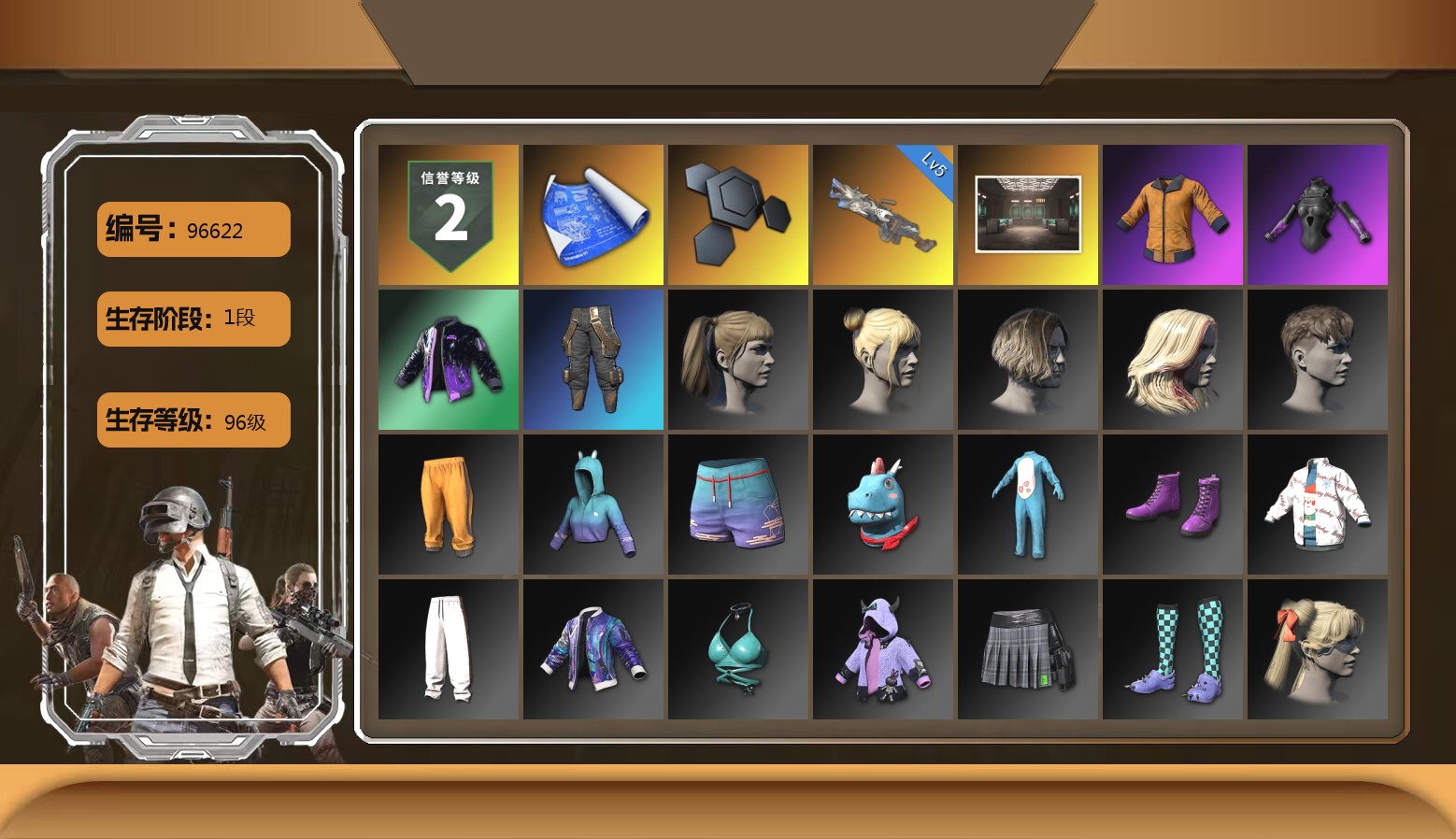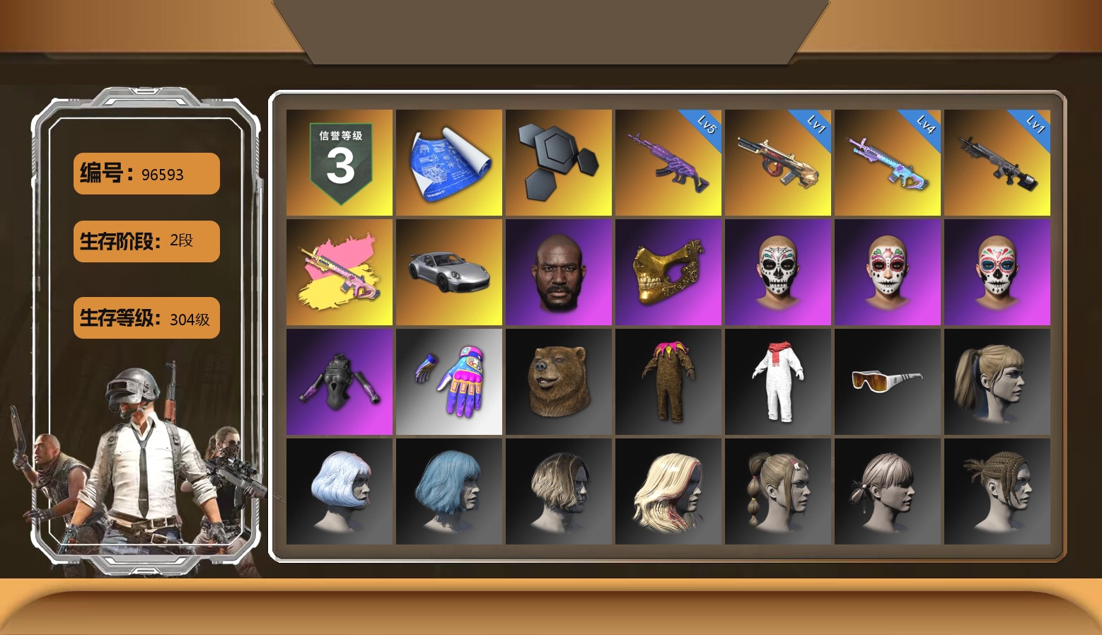 6级圣诞AK 5级夜曲M24 1级时空使者M4 圣诞AK(异色) 夜曲M24(异色) 柏林鞋 马丁敞篷跑车 交易所接待室 3张图纸 黑鬼 滑雪镜 金面 红面巾 黑大衣 活动绿东 发光手臂 白熊鞋 滑雪帽 丸子头 青海摇