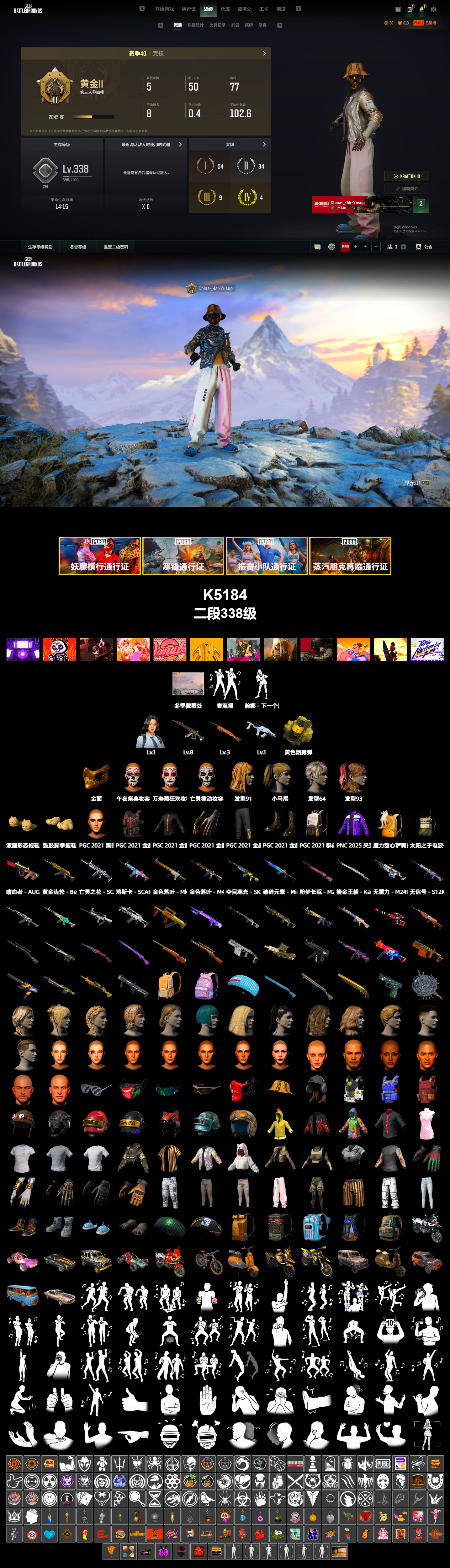 [K5184]2段338级 信誉2 8级妖魔 3级夜曲 1级Groza 烟雾弹 瀚娜 金面 小马尾