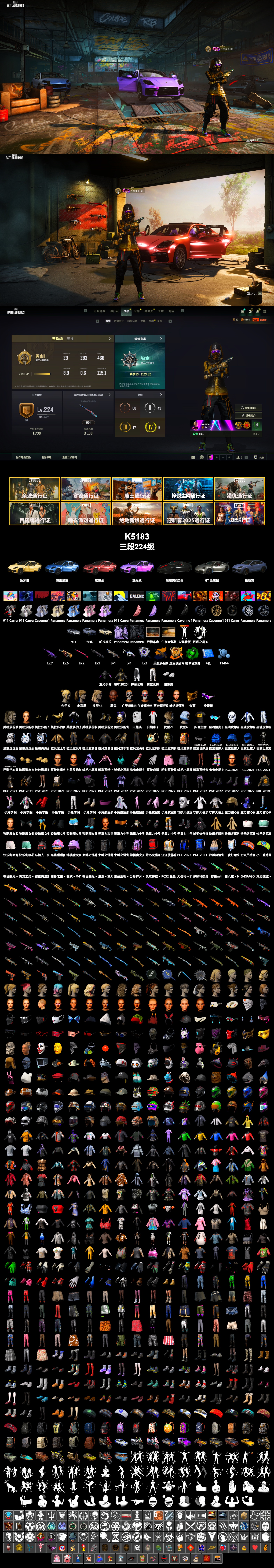 [K5183]3段224级 信誉4 7级美杜莎+异色 6级牛头 2级午夜 1级暗影MK 1级大菠萝 1级狗杂 1级虚空锅+异色 烟弹 三保时捷 发光手 白熊脚 小马尾 丸子头 黑鬼 金面 滑雪镜
