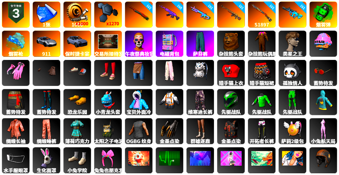 ❤找回包赔❤编号J25647皮肤:信誉等级三 1张图纸 蜗牛币 1270聚合物 2级孙悟空M24 5级美杜莎762 1级魔咒之力Mk12 1级时光加农SKS 1级烈日灼烧-S1897 1级GD-AUG 翡翠色烟雾弹 蓝色魔法迷雾-M79 保时捷911 保时捷卡宴 交易所接待室 午夜祭典妆容 电磁背包 萨芬裤 杂技熊头套 杂技熊玩偶服 类星之王 果酱甜甜圈 - 头盔(3级) 釉彩甜甜圈手套 甜甜圈手套 釉彩甜甜圈运动鞋 甜甜圈运动鞋 甜甜圈短裤 釉彩甜甜圈运动裤 星魂虎虎生威背包(3级) 猎手猫上衣 猎手猫短裙 孤独情人 蓄势待发 蓄势待发 蓄势待发 恐龙乐园 小青龙头套 宝贝外面冷 维寒迪雪上运动夹克 维寒迪长裤 先驱战队 先驱战队 先驱战队 鸡警 绸缎长袖 绸缎睡裤 薄荷巧克力 太阳之子电波干扰背包 OGBG 纹身 金墨点染 群雄逐鹿 金墨点染 开拓者长裤 萨莉2级包 小兔航天局 小兔学院 兔兔也朋克发箍 守护兽的凝视 肾上腺素 迪斯科舞会 催眠状态 双龙出海 亲爱的,看锅! 斗牛犬之怒 - 头盔(1级) 迪厅镜面球 - 头盔(1级) 猫咪挠 - 头盔(1级) 寰宇侠 - 头盔(1级) 狂人的摩托车 - 头盔(1级) 斑点狗 - 头盔(2级) PGC 锦鲤随行 - 头盔(2级) 金色象征 - 头盔(3级) 守望之龙 - 头盔(3级) “熊宝贝” - 头盔(3级) 鸡冠头 - 头盔(3级) 冠军特辑 末日之息背包(3级) 包装狗狗背包(3级) 高科技时尚小兔背包(3级) 柴犬帮背包(3级) 挣脱尘网降落伞 荣都华彩降落伞 特殊快递降落伞 烈焰吐息降落伞 雪花 尽染樱色套装 炫酷服饰套装 狐狸侯爵套装 牛年服饰套装 2 棕榈叶复古套装 红白方格夏日套装 角鲨队吉祥物套装 拉拉队队服套装 吊带裤配蝴蝶结套装 街头律动套装 猎手猫套装 龙之女皇套装 生存者车手服饰套装 掠夺者队篮球套装 死亡六进制套装 PGC 2023 帝皇套装 春之步伐服饰套装 春之漫游服饰套装 赫尔墨斯之翼套装 曼提柯尔黄色越野摩托服套装 小兔航空航天局套装(白) PCS6 浓墨重彩服饰套装 朱莉的防尘外套套装 超级士兵套装 佣兵队套装 旅游陷阱套装 朱莉的褐湾套装 老奶奶的睡裙套装 绸缎睡衣套装 深红战警套装 棕熊猎人套装 暖冬套装 沙滩宝贝操作员套装 秀出你的六块肌套装 惊涛骇浪套装 PNC 2023 强袭者套装 宝贝,外面冷套装 锦鲤相伴套装 鲨宝宝套装 钟楼魔女贝拉套装 孤独情人套装 猎手便装套装 管家布利格斯套装 圣诞之子套装 恶意侦测者套装 唯一的爱服饰套装 粗糙 (橙色) - M416 PGC 2021 群雄逐鹿 - M416 雪国风光 - M416 花开富贵 - M416 夏日濒危物种 - M416 数码沙漠迷彩 - M416 糖霜乐园 - M416 山花烂漫 - Beryl M762 花呢控 - Beryl M762 梅花同花 - Beryl M762 粗糙 (橙色) - AKM 钞能力 - AKM 标准猎手 - AKM 蟒蛇花园 - AKM 镀金 - AKM 大理石宝藏 - AKM 金色落叶 - AKM 守望之龙 - AUG 大理石宝藏 - ACE32 三重彩 - SCAR-L 粗糙 (橙色) - SCAR-L 补丁 - SCAR-L 魔力宝贝 - M16A4 锁链帮 - M16A4 甜蜜外衣 - M16A4 游猎之旅 - M16A4 华夫饼 - M16A4 冷血 - M16A4 恶战 - M16A4 分形几何 - QBZ 分秒必争 - QBZ 袜中好礼 - QBZ 淡雅之力 - Mk47 Mutant 金色落叶 - Mk47 Mutant 方形铬印 - Mk47 Mutant 灰色系 - Mk47 Mutant 这不是玩具 - Mk47 Mutant 无尽迷宫 - Mk47 Mutant 丛林潜行者 - G36C 标准猎手 - G36C 水手 - G36C 标准猎手 - Groza 山花烂漫 - Groza 无尽迷宫 - Groza 龙纹 - Groza 水手 - K2 圆点猎手 - K2 无慈悲 - K2 淬火真金 - K2 无拘来世 - K2 钴蓝呼号 - SLR 大理石宝藏 - SLR 水手 - SLR 魔力宝贝 - SLR 数码丛林迷彩 - SKS 分形几何 - SKS 金色落叶 - SKS 镀金 - SKS 数码沙漠迷彩 - Mini14 彩虹之上 - Mini14 幽灵之握 - Mk12 守望之龙 - Mk12 雪国风光 - Mk14 孙悟空 - Mk14 爬行者之印 - VSS 标准猎手 - VSS 海洋哑光(绿色) - QBU 无信号 - QBU 蟒蛇花园 - QBU 致命快递 - 德拉贡诺夫 余音环绕 - 十字弩 余音环绕 - UMP 拼图 - Win94 镀金 - Win94 粗糙 (橙色) - Kar98k 悠扬情歌 - Kar98k 朱雀之灵 - Kar98k 数码沙漠迷彩 - Kar98k 礼物环绕 - Kar98k 数码丛林迷彩 - AWM 镀金 - AWM 劫掠者 - M24 蝶舞云端 - M24 无拘来世 - 莫辛纳甘步枪 恶战 - 莫辛纳甘步枪 双色 - 莫辛纳甘步枪 海洋哑光(绿色) - MP5K 灰色系 - MP5K 疯狂收割者 - MP5K 唐三藏 - FAMAS 赛季33竞技黄金 - FAMAS 沙悟净 - P90 竞速之道 - P90 镀金 - UMP 彩虹之上 - UMP 游猎之旅 - UMP 竞速之道 - UMP 标准猎手 - UMP 钴蓝呼号 - UMP 镀银 - UMP 拼图 - 汤姆逊冲锋枪 愉悦的绿松色 - 汤姆逊冲锋枪 淡雅之力 - 汤姆逊冲锋枪 雪国风光 - 汤姆逊冲锋枪 水手 - 汤姆逊冲锋枪 心跳掠夺者 - MP9 圣诞之力 - DP-28 镀金 - Vector 海狼鱼 - Vector 灵魂枷锁 - Vector 地狱火 - Vector 朱雀之灵 - Vector 鲜花之力 - Vector 水手 - Micro UZI 淡雅之力 - Micro UZI 三重彩 - Micro UZI 数码沙漠迷彩 - Micro UZI 爬行者之印 - M249 花呢控 - M249 回收再利用 - DP-28 无拘来世 - DP-28 锁链帮 - DP-28 灰色系 - DBS 幽灵之握 - DBS 朱雀之灵 - O12 镀金 - 锯短型霰弹枪 丛林潜行者 - 锯短型霰弹枪 都市猎手 - 锯短型霰弹枪 数码沙漠迷彩 - 锯短型霰弹枪 标准猎手 - 锯短型霰弹枪 无尽迷宫 - S12K 锁链帮 - S12K 镀银 - S12K 波涛荡漾 - S12K 游猎之旅 - S12K 标准猎手 - S12K 一击撕裂者 - S1897 水手 - S1897 这不是玩具 - S1897 淡雅之力 - S1897 毒性 - S1897 海洋哑光(蓝色) - S686 双色 - S686 华夫饼 - S686 波涛荡漾 - S686 数码沙漠迷彩 - P92 恶战 - P92 都市猎手 - P92 丛林潜行者 - P92 双色 - P92 标准猎手 - P92 沙漠烈阳 - 沙漠之鹰 三重条纹 - 沙漠之鹰 水手 - R1895 华夫饼 - R1895 数码沙漠迷彩 - R45 沙漠烈阳