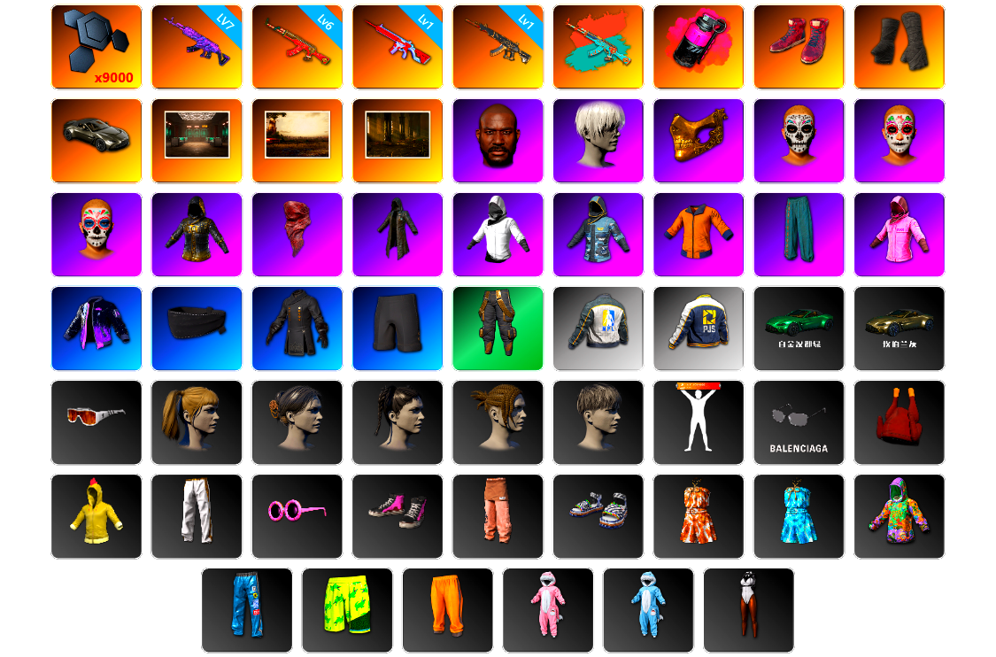 免费版 6级魔咒之力Mk12 2级午夜惊魂98K 橙色狂怒之雾-M79 紫色魔法迷雾-M79 布加迪奢华版跑车 兰博基尼跑车 兰博基尼SUV 兰博基尼奢华版 陈列室 冬季藏匿处 2张图纸 4444聚合物 金面 发光手臂 萨芬裤 白熊鞋 滑雪帽 拉风龙 小马尾 丸子头 青海摇
