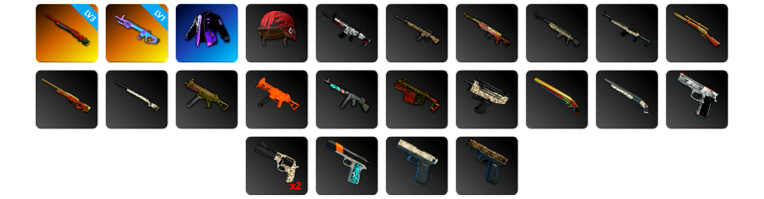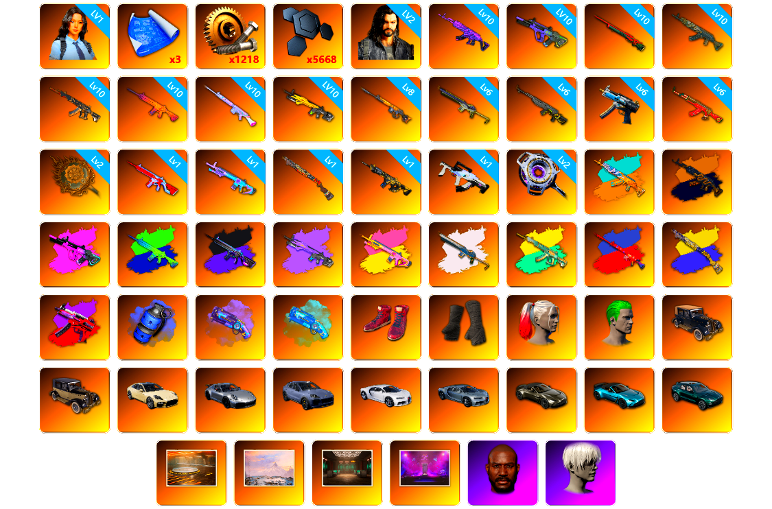 1级瀚娜 3张图纸 蜗牛币 5668聚合物 2级多利安 10级美杜莎762 10级霓虹AUG 10级孙悟空M24 10级青龙762 10级妖魔之触ACE 10级南瓜M4 10级玩偶炮 10级小兔MK12 8级齿轮炮 6级沙悟净MINI 6级玄武SKS 6级寒蚀MP5K 6级圣诞AK 2级唐三藏平底锅 1级无信号M4 1级魔咒之力Mk12 1级烈日灼烧-S1897 1级时空使者M4 1级冰域Groza 2级虚空使者 青龙762(异色) 美杜莎(黑异色) 霓虹AUG(异色) 南瓜M4(异色) 无信号(紫异色) 小兔MK12(异色) 魔咒Mk12(异色) 沙悟净Mini(异色) 妖魔之触(异色) 玩偶炮(异色) S1897(异色) 寒蚀MP5K(异色) 蓝色烟雾弹 紫色魔法迷雾-M79 蓝色魔法迷雾-M79 柏林鞋 黑绷带 小丑女 小丑男 帕拉梅拉 保时捷911 保时捷卡宴 布加迪跑车 布加迪奢华版跑车 马丁跑车 马丁敞篷跑车 马丁SUV 陈列室 冬季藏匿处 交易所接待室 aespa 黑鬼 9s发型 金面 渔夫帽 牛角 丑男妆容 红面巾 黑大衣 白战神 活动绿东 发光手臂 萨芬裤 白熊鞋 粉战神 aespa女团 尼尔 后街车库 车漆 小马尾 丸子头 西游记 脏辫 青海摇 小兔学院 悲喜 绷带AK 胜利之舞39