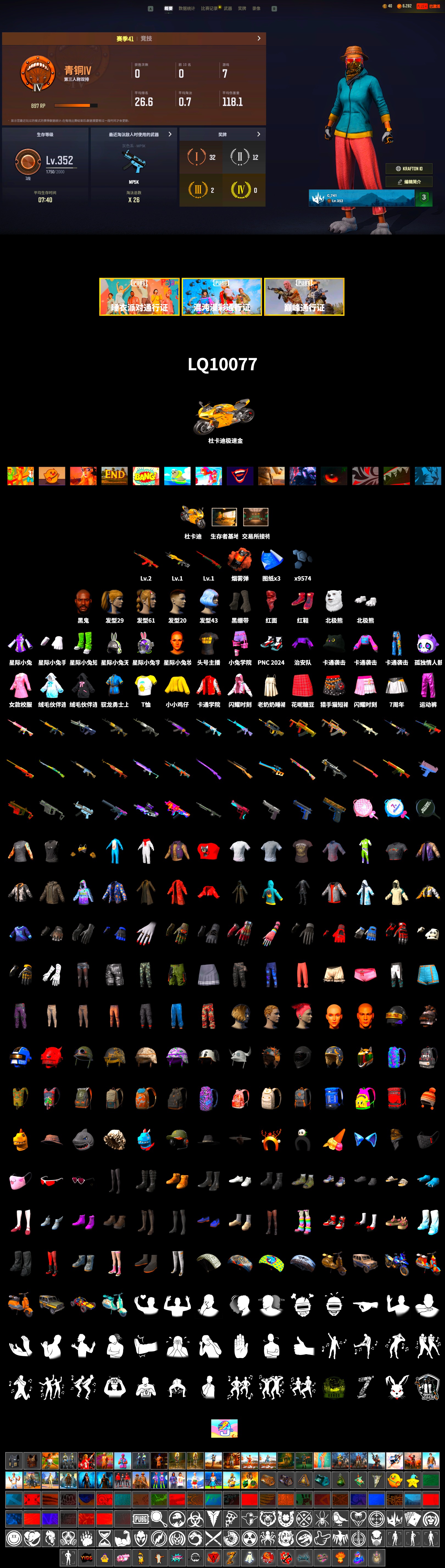 ❤找回包赔❤皮肤:2级圣诞AK 1级小兔MK12 1级孙悟空M24 珊瑚色烟雾弹 柏林鞋 黑绷带 杜卡迪极速金 交易所接待室 信誉等级三 3张图纸 9574聚合物 黑鬼 红面巾 黑大衣 白熊鞋 北极熊头套 北极熊连身衣 香寒发箍 小马尾 发型43 发型21 发型61 卡通学院夹克 零度机能风 紫色运动裤 鸡斯卡 猎手猫上衣 猎手猫短裙 猎手猫皮鞋 恐龙乐园 小青龙头套 小青龙玩偶服 小青龙脚套 缤纷混沌连帽卫衣 紫喵喵短靴 老奶奶睡裙 老奶奶睡裤 鸡警 头号主播 蜘蛛纹身 小兔学院 兔兔也朋克腿套 彩糖蛋糕 - M416 爱之小鸡 舞蹈派对! 战场老兵 你挡着我晒太阳了! 恶魔的微笑 魔女之力 - Beryl M762 PCS2 金色成就 - Beryl M762 镀银 - Beryl M762 镀银 - AUG 大理石宝藏 - ACE32 分形碎片 - ACE32 皇家舰队 - M16A4 袜中好礼 - QBZ 金色落叶 - Mk47 Mutant 镀金 - Groza 山花烂漫 - Groza 雪花 - K2 六边形战士 - SLR 镀金 - SKS 彩虹之上 - Mini14 雪国风光 - Mk14 标准猎手 - VSS 疯狂收割者 - QBU 拼图 - Win94 不许胡闹 - Kar98k 镀金 - AWM 无拘来世 - 莫辛纳甘步枪 灰色系 - MP5K 唐三藏 - FAMAS 竞速之道 - P90 沙漠烈阳 - PP-19 Bizon 辉煌 - UMP 熔岩灯 - JS9 回收再利用 - 汤姆逊冲锋枪 镀银 - 汤姆逊冲锋枪 心跳掠夺者 - MP9 镀金 - Vector 淡雅之力 - Micro UZI 雪花 - DP-28 科技金属 - DBS 镀金 - 锯短型霰弹枪 镀金 - S12K 抽象派 - S1897 华夫饼 - S686 恶战 - P92 钴蓝枪匠 - P1911 数码丛林迷彩 - P18C 锦衣夜行佩刀 朋克战斧 双色镰刀 甜蜜外衣 - 十字弩 你的第一锅 - 平底锅 7周年快乐 - 平底锅 海洋独行侠手套 暗黑心手套 7周年快乐手套 维纳斯俱乐部手部装饰 兔兔也朋克手套 类星之王的手套 队长的迷彩手套 战场老兵手套 准备就绪手套 朱莉的手套 熊猫手套 大麻烦手套 街头律动手套 网格手套 卡通学院眼镜 海洋独行侠墨镜 男性面容18 发型46 发型20 躲兔兔背包(2级) PGC 2019 背包 (2级) PCS2 弹药库背包(2级) 卡拉金本土背包(2级) 褪色帆布背包(2级) 末日烙印背包(2级) 优雅夏日背包(1级) 奶牛印花背包(1级) 贾米拉背包(1级) 强健的龙骨背包(1级) 治安队 - 头盔(3级) 军用防弹头盔(2级) 石器时代 - 头盔(2级) 泼墨暗影 - 头盔(2级) 邓肯的潜行者头盔 - 头盔(1级) 好梦星空 - 头盔(1级) 扫雷 - 头盔(1级) 角鲨队吉祥物头套 锦衣夜行斗笠 7周年快乐甜筒帽 旅游陷阱圆顶帽 快枪手牛仔帽 队长的迷彩鸭舌帽 老奶奶的睡帽 卡通袭击者针织帽 甜蜜宣言针织帽 熊猫发箍 可爱小猫咪口罩 准备就绪口罩 PCS2 隐形生存者面巾 奶牛印花夹克(黑色) 准备就绪夹克 我的闪耀时刻连帽夹克 水色突击夹克 邓肯的潜行者夹克 月之狂蜥的上身 治安队外套 夜伴花开夹克 尽染樱色女款校服 龙年大吉连帽卫衣 小小鸡仔外套 猎人的外套 卡通袭击者上衣 沙漠骗徒风衣 7周年快乐夹克 衬衫 (灰色) 拉拉队上衣 驭龙勇士上衣 小小鸡仔T恤 T 恤 (白色) 超级士兵无袖上衣 先驱者衬衫 T 恤 (灰色) 龙年大吉上衣 锦衣夜行装束 月之狂蜥的长裤 大麻烦热裤 PCS5 清场能手长裤 准备就绪长裤 邓肯的潜行者长裤 没错我有罪丝袜配短靴 街头律动长裤 龙年大吉迷彩长裤 卡通袭击者牛仔裤 邓肯的运动裤 美美的睡裤 驭龙勇士长裤 战斗裤 (棕色) 战斗裤 (卡其色) 牛仔裤 (棕褐色) 小小鸡仔短裤 7周年快乐短裙 数羊羊短款睡裤 PCS2 弹药库短裤 超级士兵迷彩短裤 拉拉队条纹短裙 我的闪耀时刻短裙 花呢糖豆短裙 老奶奶的拖鞋 角鲨队吉祥物脚套 拉拉队球鞋 邓肯的潜行者短靴 卡通学院运动鞋 赫尔墨斯之翼运动鞋 战场老兵短靴 缤纷混沌布鞋 街头律动运动鞋 春之月夜便鞋 邓肯的运动鞋 高帮运动鞋 卡通袭击者步鞋 朱莉的靴子 驭龙勇士布鞋 大麻烦长靴 7周年快乐长靴 我的闪耀时刻网袜配短靴 丝袜与校园风鞋子(黑色) 尽染樱色皮鞋配长袜 铁血警官的长靴 小兔快递仓管长袜 PNC 2024 短靴 孤狼生存者 “PCS3 烙印”乌阿斯吉普车 “专业守卫” 乌阿斯吉普车 “加塔尔越野赛”摩托车 “小兔快递配送员” 小型摩托车 “缝缝补补” 小型摩托车 “捕食者” 小型摩托车 微型手榴弹 “小狗巡逻队” 小型摩托车 “弹球机” 双人越野车 纸锦鲤 专业守卫防弹衣(2级) 高压防弹衣(2级) 胜利之舞124 胜利之舞 - 7周年纪念 胜利之舞60 蹲蹲扭扭 胜利之舞31 十分满分的十分 胜利之舞44 师傅!请受徒儿一拜! 零分 嫉妒 棒棒哒 挑衅 投降 不耐烦 谢谢 停止! 抖缩 庆祝 哭 踢 笑 愤怒 同意 大厅姿势3 反对 你好 大厅姿势2 大厅姿势1 走吧! 你完蛋了 耸肩 过来 鼓掌 大厅姿势4 落幕 决斗 夏日小海豹 惊喜问候 7周年快乐 - 头盔(1级) 小狗耳朵 - 头盔(2级) 嘻哈风 - 头盔(2级) 西游记 芳心女猎手 - 头盔(3级) PGC 2023 皇冠宝石 - 头盔(3级) 鸡冠头 - 头盔(3级) 新生的奇趣背包(2级) 肆意挥洒背包(3级) 7周年快乐背包(3级) PGC 2023 皇冠宝石背包(3级) 小白鲨降落伞 雪花 烤鸡节服饰套装 3 胜利啦啦队套装 诅咒恶犬套装 虚空女巫套装 私校制服套装 骑士套装 迷雾追踪者套装 棉花糖套装 烤鸡节服饰套装 4 春之月夜服饰套装 坏蛋小蜜蜂套装 SQUAD CAPTAIN SET 圣柱军团保安套装 使徒套装 LOS LEONES 客场队服套装 曼提柯尔黄色越野摩托服套装 PCS6 浓墨重彩服饰套装 暗影套装 恐龙乐园员工套装 冰雪女王套装 狂人的连衣裤套装 朱莉的褐湾套装 美美的睡衣套装 绗缝套装 青年谢尔盖套装 维娜托套装 PGC 2019套装 朋克公主套装 棕熊猎人套
