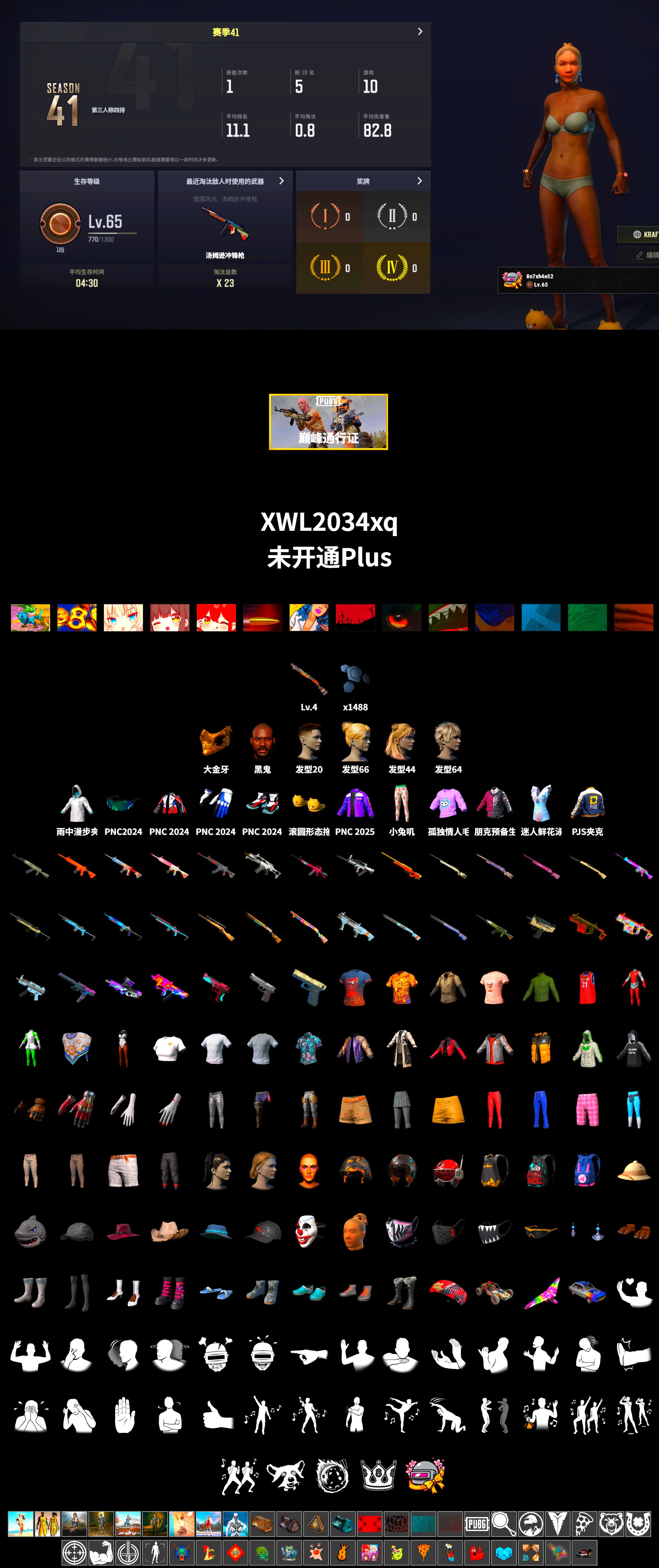 ❤找回包赔❤皮肤:免费版 4级烈日灼烧-S1897 信誉等级零 1488聚合物 黑鬼 金面 PJS夹克 杂技熊脚套 发型51 零度机能风 迷人鲜花泳衣 特工小兔手套 特工小兔服饰 特工小兔高跟鞋 银河系女孩 群雄逐鹿 粗糙 (橙色) - M416 雪国风光 - M416 彩糖蛋糕 - M416 让子弹飞 亲爱的,看锅! 钞能力 - AKM 恶战 - M16A4 分形几何 - QBZ 无尽迷宫 - Mk47 Mutant 心跳掠夺者 - Mk47 Mutant 分形几何 - G36C 魔力宝贝 - SLR 夏日冲浪 - Mini14 拼图 - Mini14 数码沙漠迷彩 - Mini14 雪国风光 - Mk14 余音环绕 - 十字弩 余音环绕 - UMP 拼图 - Win94 数码沙漠迷彩 - Kar98k 镀金 - AWM 幸运骑士 - M24 灰色系 - MP5K 竞速之道 - P90 回收再利用 - UMP 熔岩灯 - JS9 粗糙 (橙色) - UMP 拼图 - 汤姆逊冲锋枪 雪国风光 - 汤姆逊冲锋枪 心跳掠夺者 - MP9 抽象派 - Vector 镀金 - Vector 数码沙漠迷彩 - Micro UZI 回收再利用 - DP-28 灰色系 - DBS 镀金 - 锯短型霰弹枪 无尽迷宫 - S12K 水手 - S1897 抽象派 - S1897 灰色系 - S686 淡雅之力 - S686 恶战 - P92 沙漠烈阳 - 沙漠之鹰 数码沙漠迷彩 - P18C 陶土质感大砍刀 PUBG信条钢管 陶土质感撬棍 淡雅之力 - 镰刀 回收再利用 - 十字弩 恶战 - 十字弩 人类猎手探险手套 类星之王的手套 迷人鲜花手链 PNC 2024 手套(蓝色) 乔纳森的猎人墨镜 迷人鲜花耳环 PNC 2024 生存者护目镜 匕首纹饰加红晕妆容 发型44 发型66 发型20 发型64 发型71 勇往直前背包(1级) PUBG信条 - 头盔(2级) 锁骨喷气式战斗机头盔(1级) 丝袜头套 角鲨队吉祥物头套 暗夜猎手皮革帽 夏日渔夫帽(蓝绿色) 准备就绪鸭舌帽 都市女牛仔帽 咖啡王鸭舌帽 人类猎手探险帽 准备就绪口罩 朋克预备生口罩 幸运怪盗面具 准备就绪夹克 人类猎手探险服 花衬衫(蓝绿色) 夏日短裤(灰色) 狂热爱恋长裤 生存练习生连帽卫衣 PUBG信条马甲 朋克预备生毛衣 巴哥生活好T恤 沙漠之鹰挑战者T恤 水手披巾 Land Loot Survive T恤 长袖高领毛衣(海草绿) 传奇高手球衣 寰宇侠的制服 T 恤 (白色) 深红战警战斗服 朋克公主夹克 T 恤 (灰色) 柴犬慢跑T恤 PNC 2024 夹克 PNC 2025 夹克 准备就绪长裤 胡萝北下装 金属银朋克牛仔裤 咖啡王裙裤 清风徐来喇叭裤 迷雾追踪者短裤 战斗裤 (棕色) 战斗裤 (卡其色) 朋克预备生短裤 远足者短裤 沙滩短裤 柴犬慢跑长裤 沙滩鞋(蓝绿色) 准备就绪运动鞋 高帮运动鞋 朋克预备生短靴 深红战警长靴 小兔快递仓管长袜 人类猎手探险长裤 滚圆形态拖鞋 PNC 2024 短靴 迷人鲜花凉鞋 孤狼生存者 “彩虹四溢” 达西亚轿车 “PCS2 战术扭矩” 双人越野车 “飞得更高” 动力滑翔机 胜利之舞154 Victory Dance - 8th Anniversary 节日氛围四溢 胜利之舞35 胜利之舞19 特殊问候 相信我! 嫉妒 棒棒哒 挑衅 投降 不耐烦 谢谢 停止! 抖缩 巨熊爪击 庆祝 哭 踢 笑 愤怒 同意 反对 你好 大厅姿势1 走吧! 你完蛋了 耸肩 过来 鼓掌 深红战警 - 头盔(1级) 春之野鹤背包(2级) PCS5 大巧不工背包(2级) 潜行速降降落伞 夏日复古套装 角鲨队篮球套装 花卉印花套装 余波套装 冰雪女王套装 拉万的套装 慵懒假日套装 雪色美人套装 小鸡吐息 胜利之舞142 新年礼物 雨中漫步夹克 被催眠的小浣熊 小心炸弹! 无重力重型套装 孤独情人毛衣