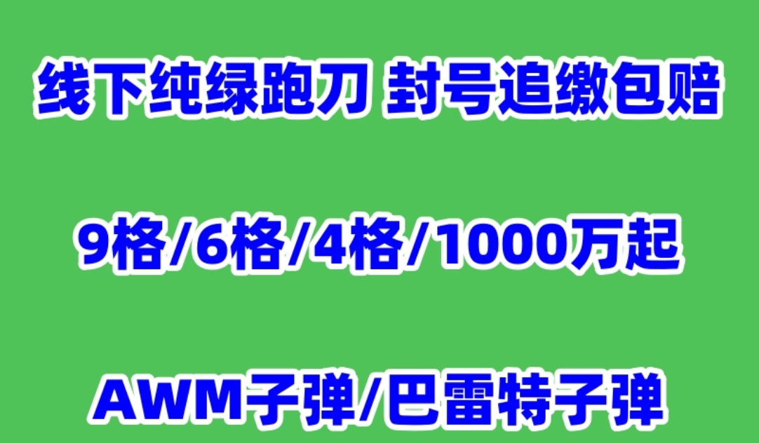 ❤线下纯绿跑刀❤封号追缴包赔❤AW子弹❤巴雷特子弹❤撞车❤联系客服随时可以上号❤